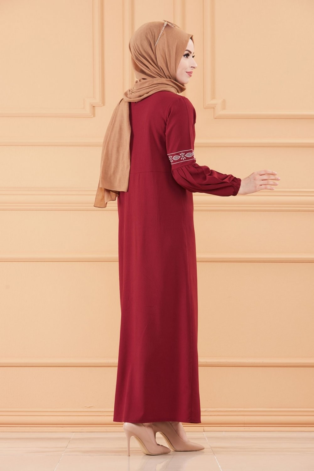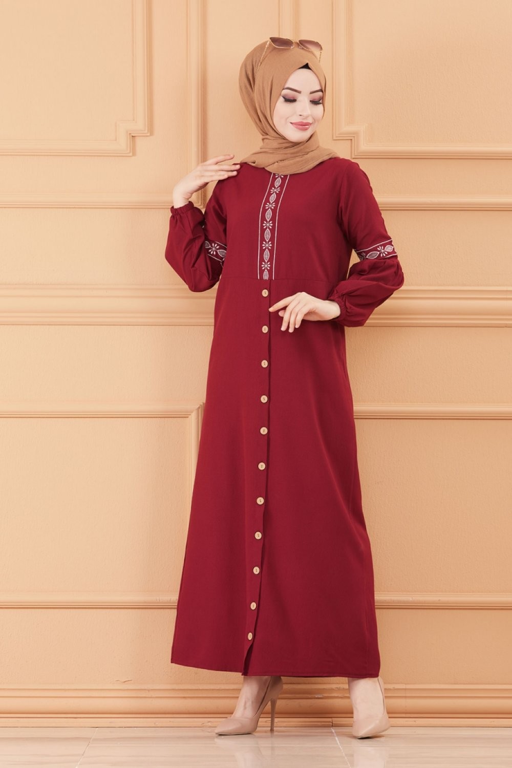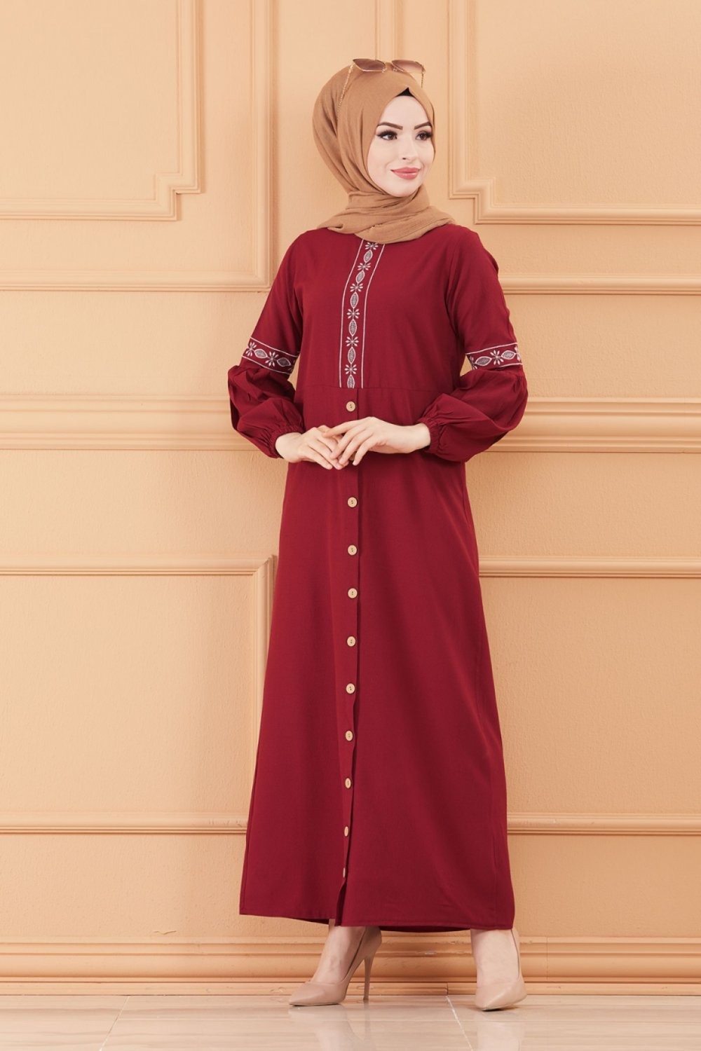Robe longue brodée pour femme musulmane (Tenue Hijab classique) - Couleur bordeaux Vetement & Accessoire