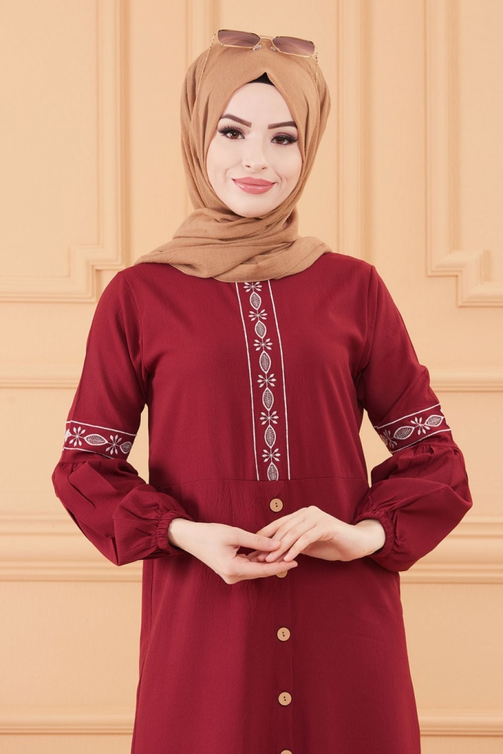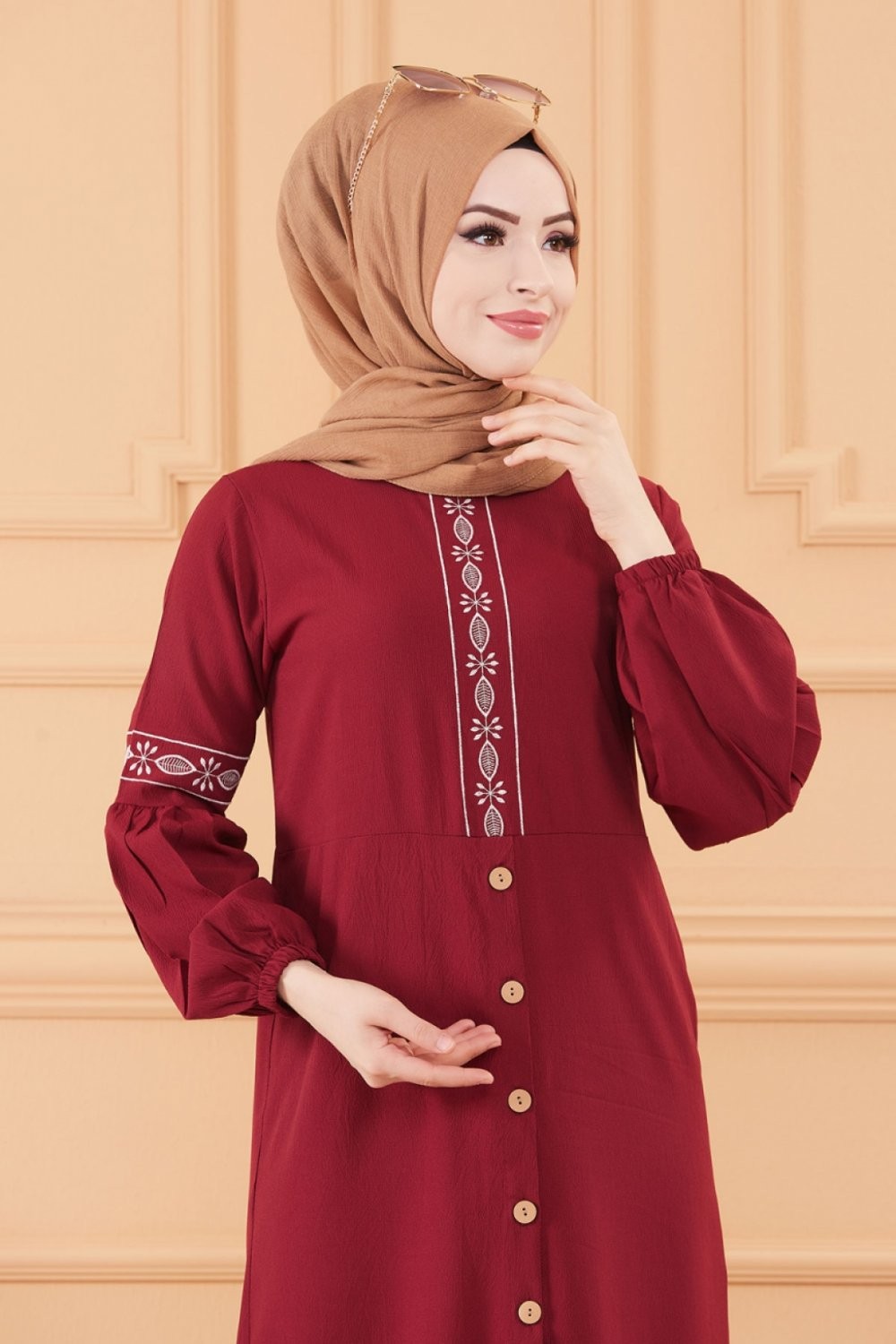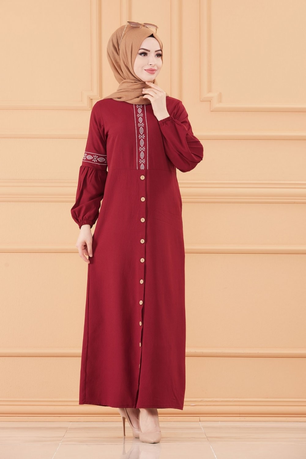 Robe longue brodée pour femme musulmane (Tenue Hijab classique) - Couleur bordeaux Vetement & Accessoire