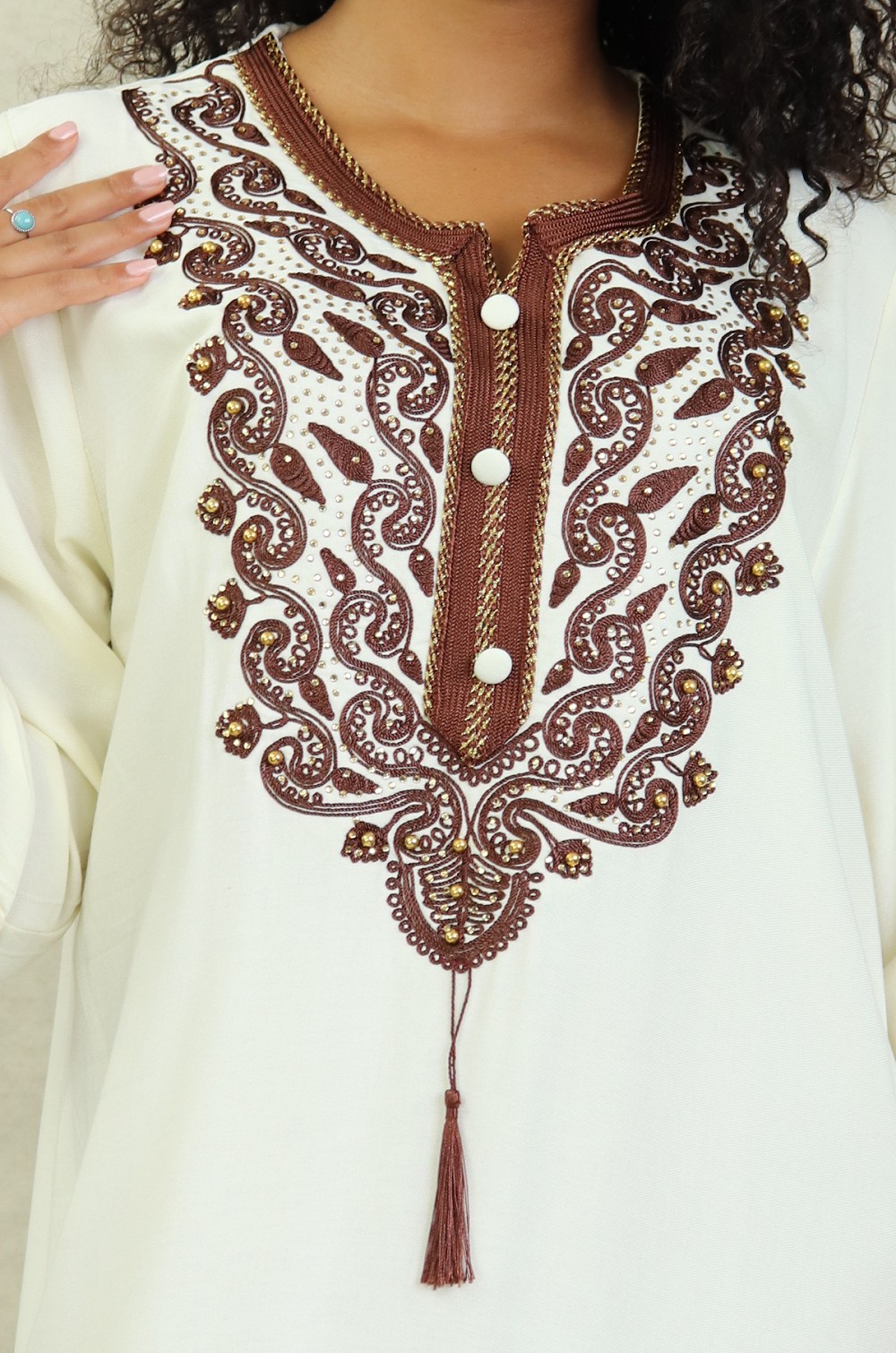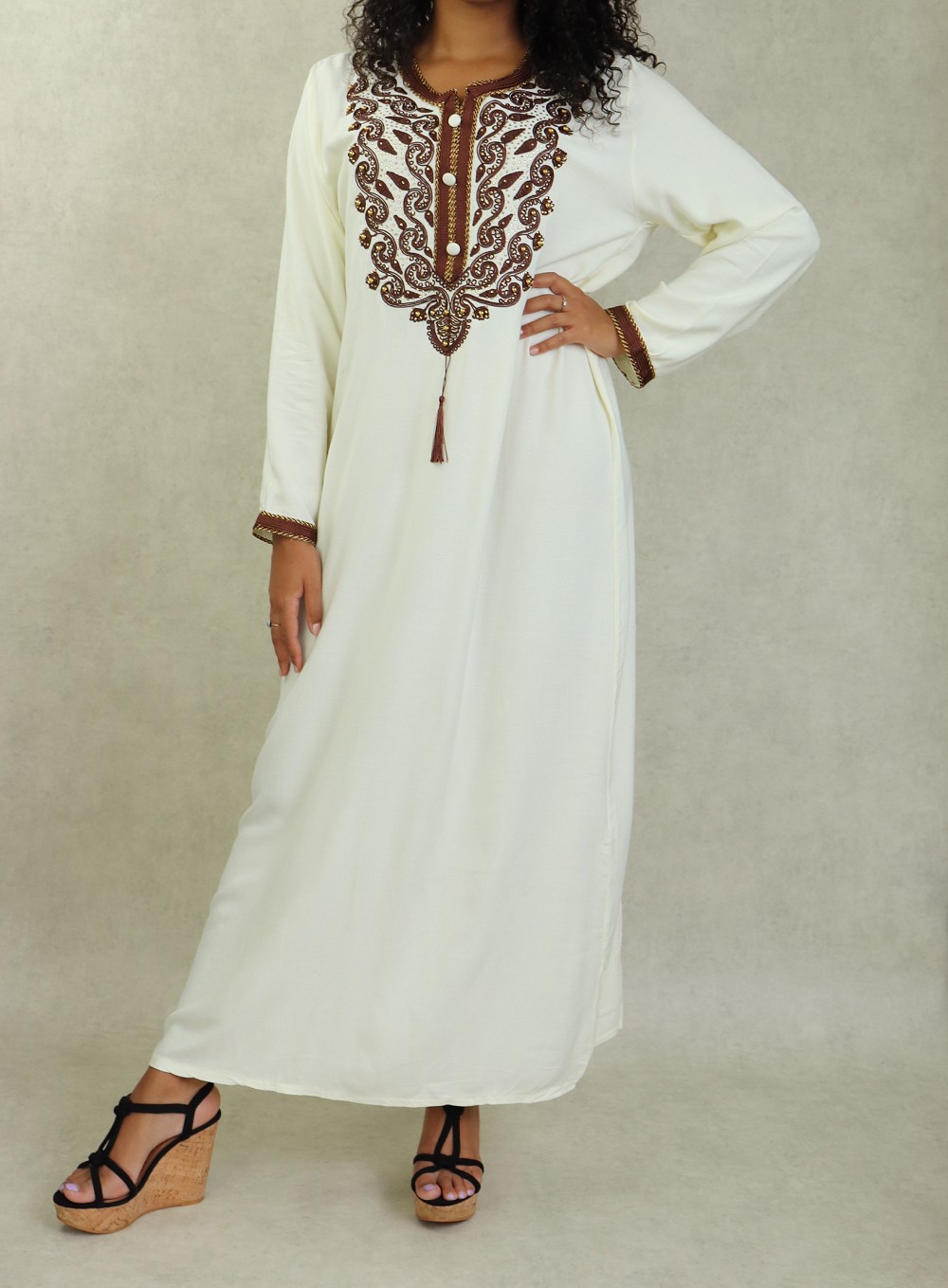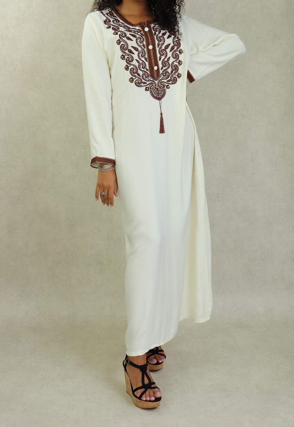 Robe longue brodée style oriental pour femme - Couleur Blanc cassé Vetement & Accessoire