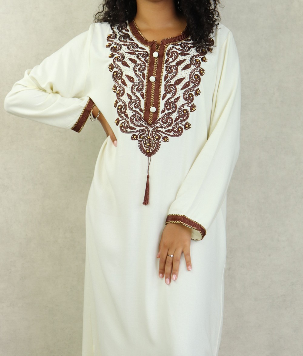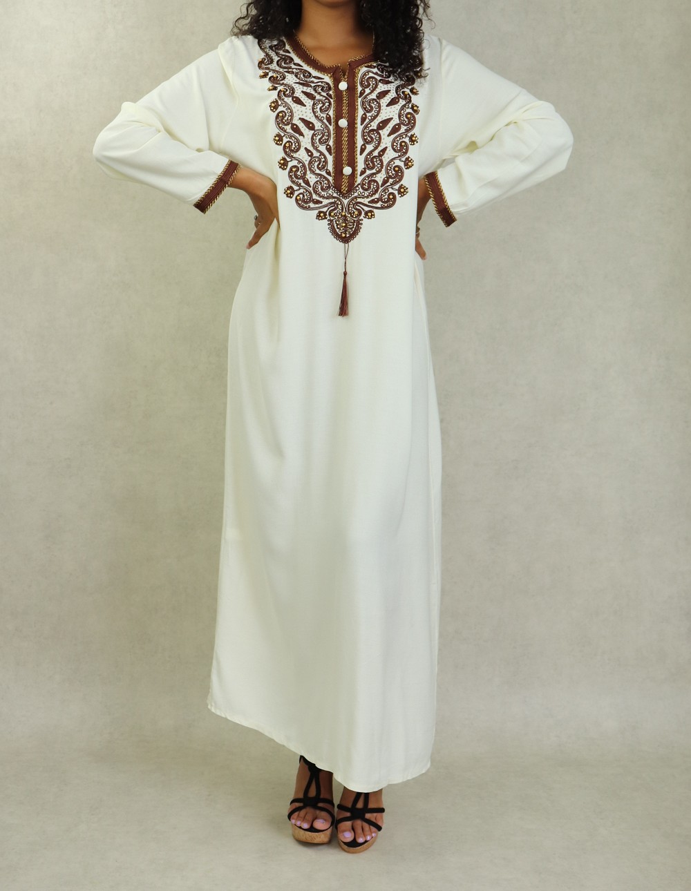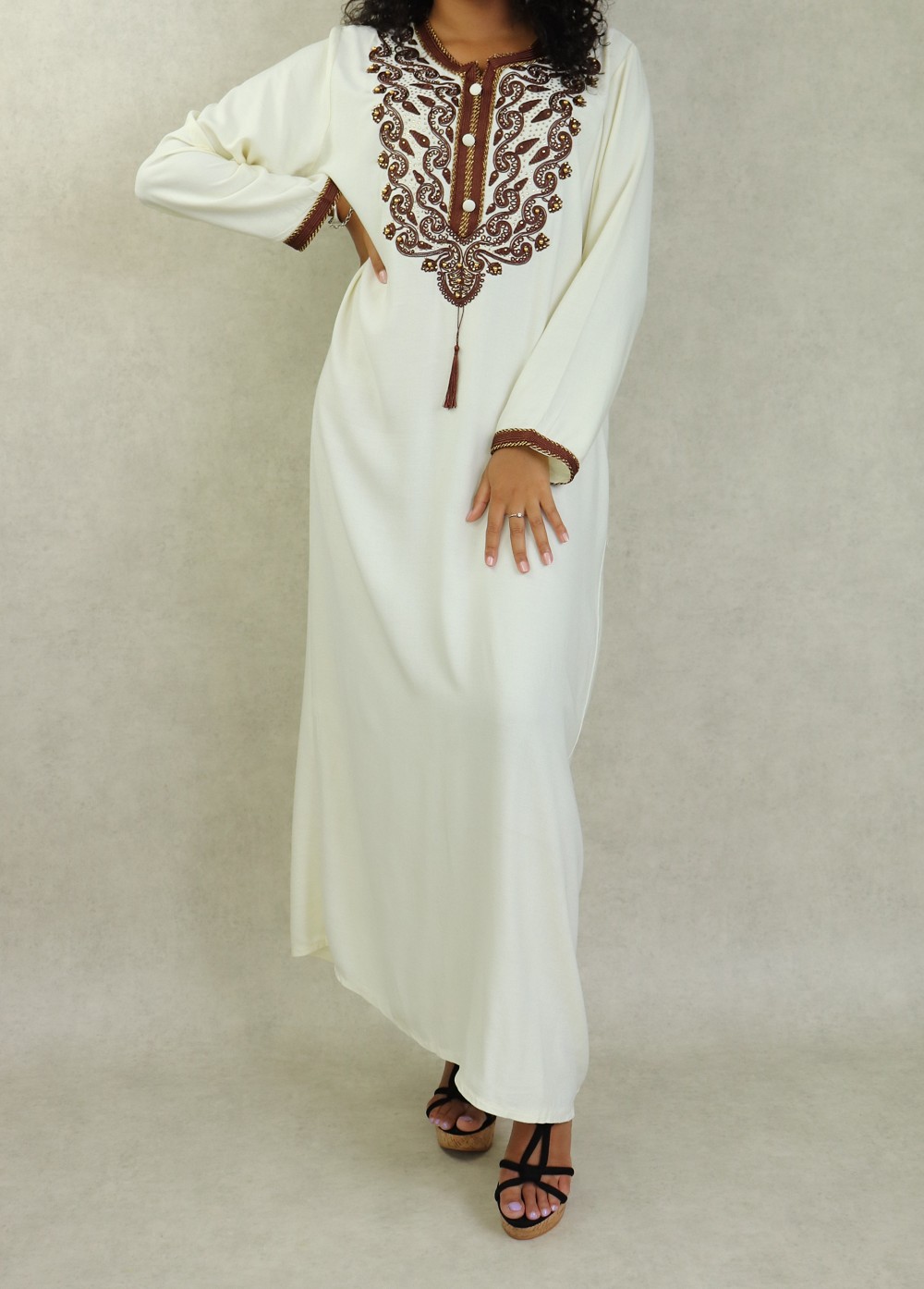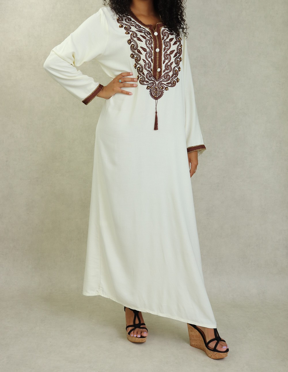 Robe longue brodée style oriental pour femme - Couleur Blanc cassé Vetement & Accessoire
