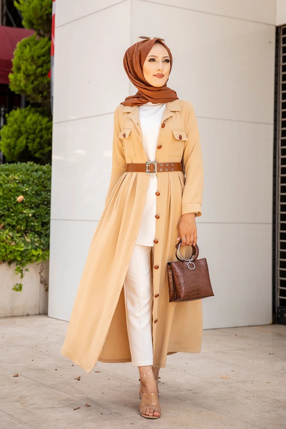 Trench Coat Long pour femme (Vêtements pudiques pour femmes voilées) - Couleur Beige - REF. 30878 (29.90 €)