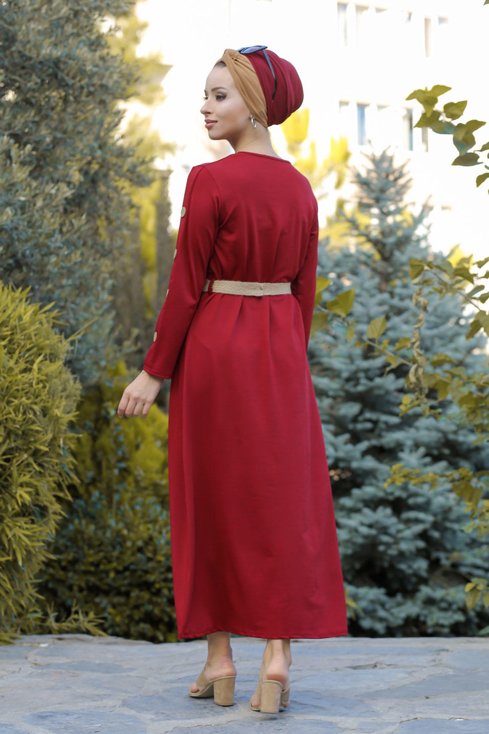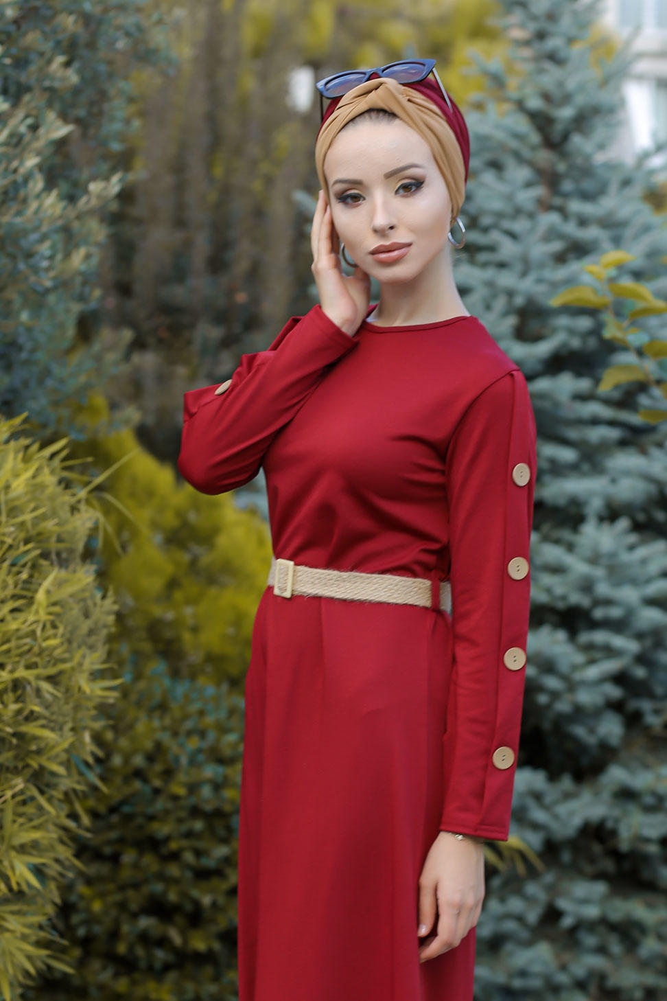 Robe longue de ville sobre décoration boutons pour femme - Couleur framboise Vetement & Accessoire