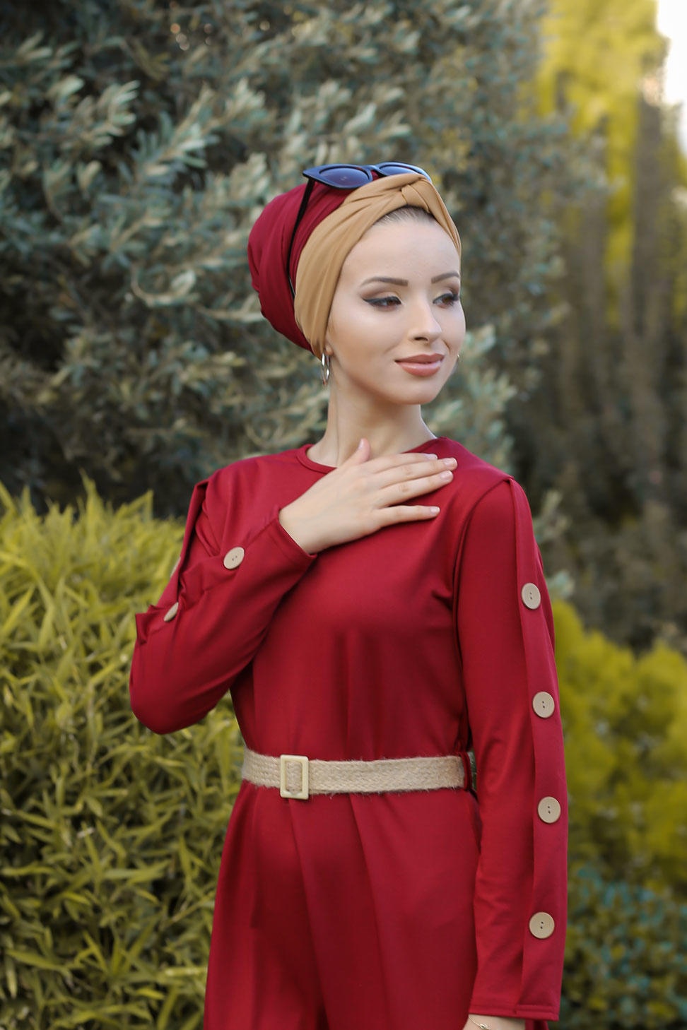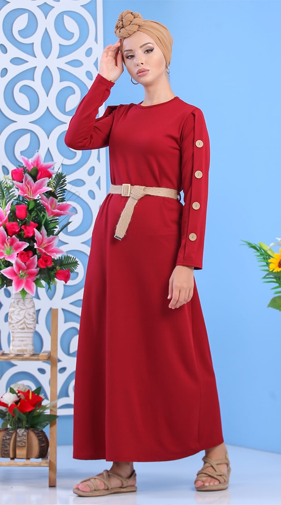 Robe avec capuche style moderne et sport (Vêtement adapté pour Hijab - Nouveauté) - Couleur bordeaux - REF. 38218 (19.50 €)