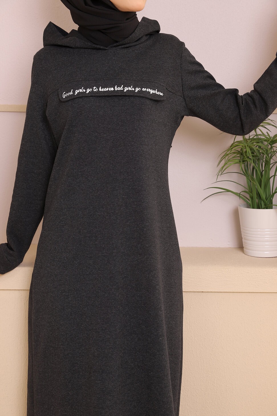Robe longue décontractée avec capuche (Vetement hijab - Modest Fashion) - Couleur anthracite Vetement & Accessoire