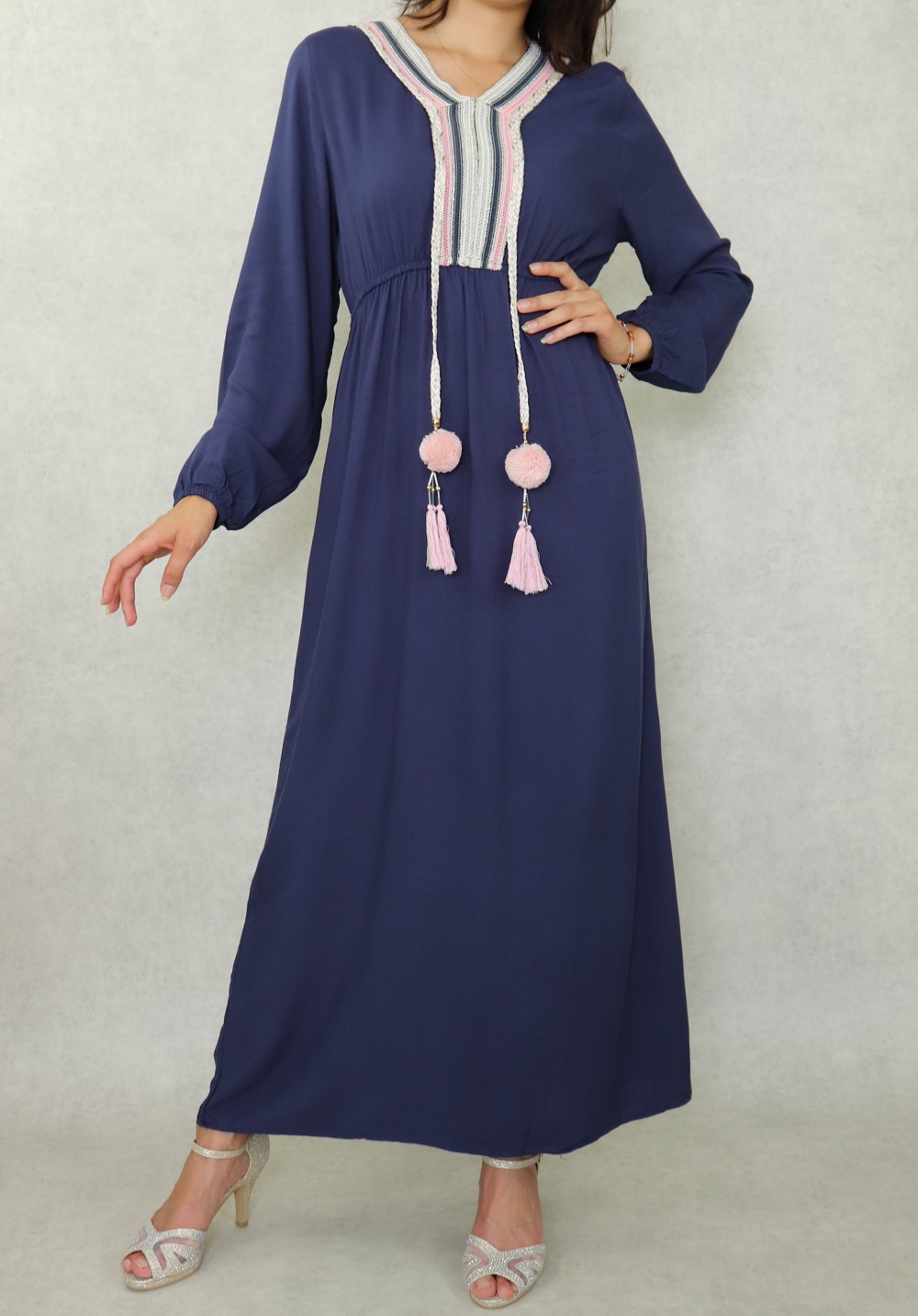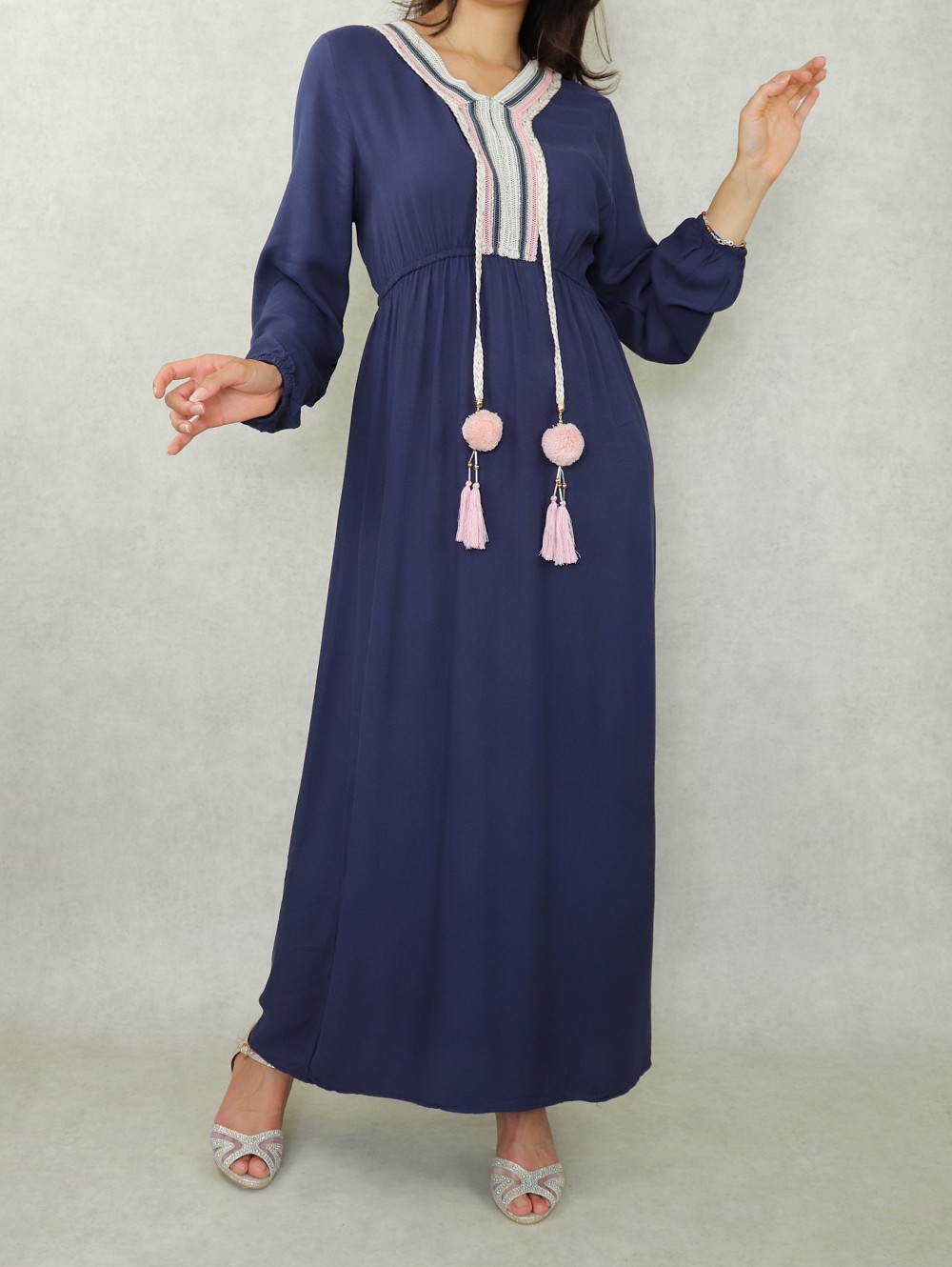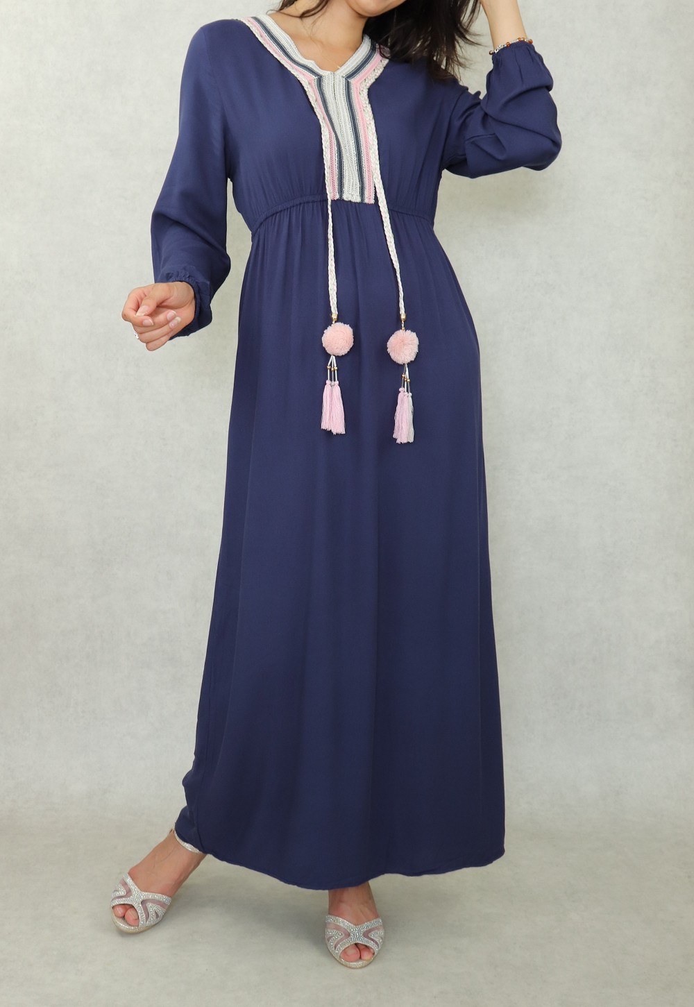 Robe longue décorée de pompons pour femme - Couleur Bleu marine Vetement & Accessoire