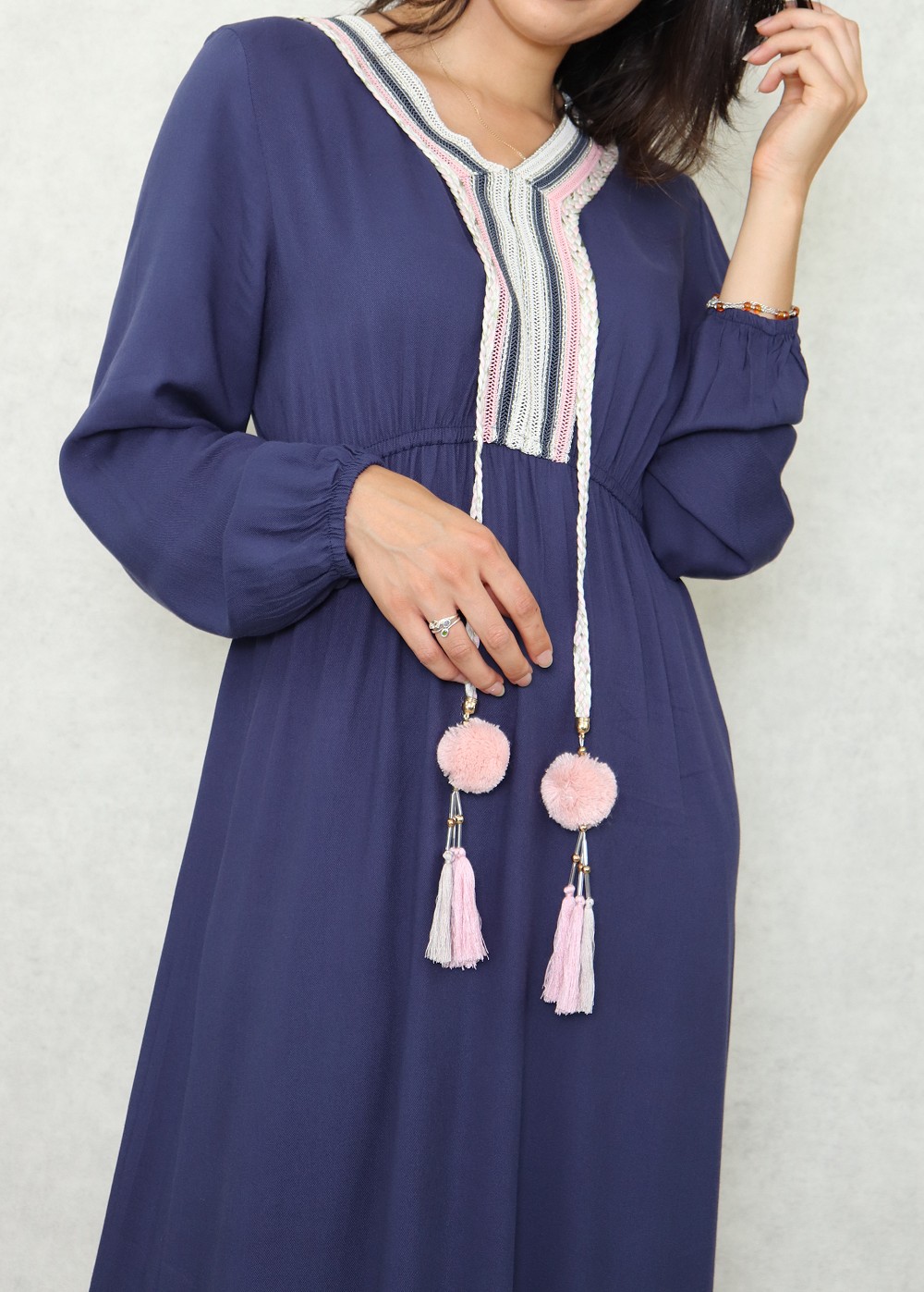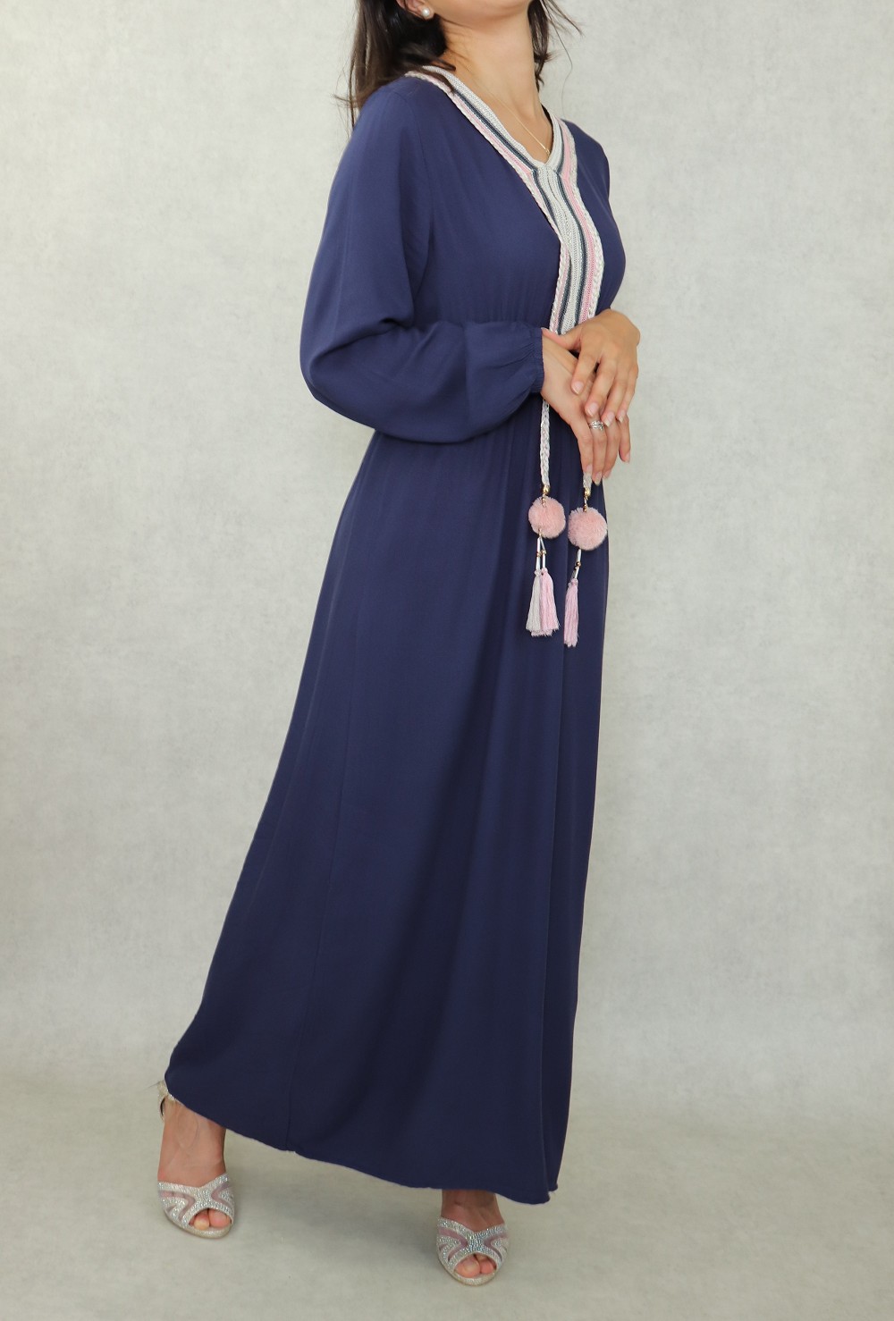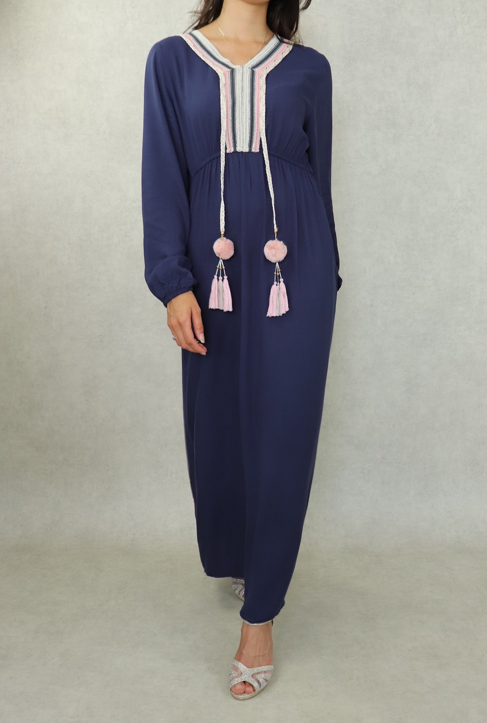 Robe longue décorée de pompons pour femme - Couleur Bleu marine Vetement & Accessoire