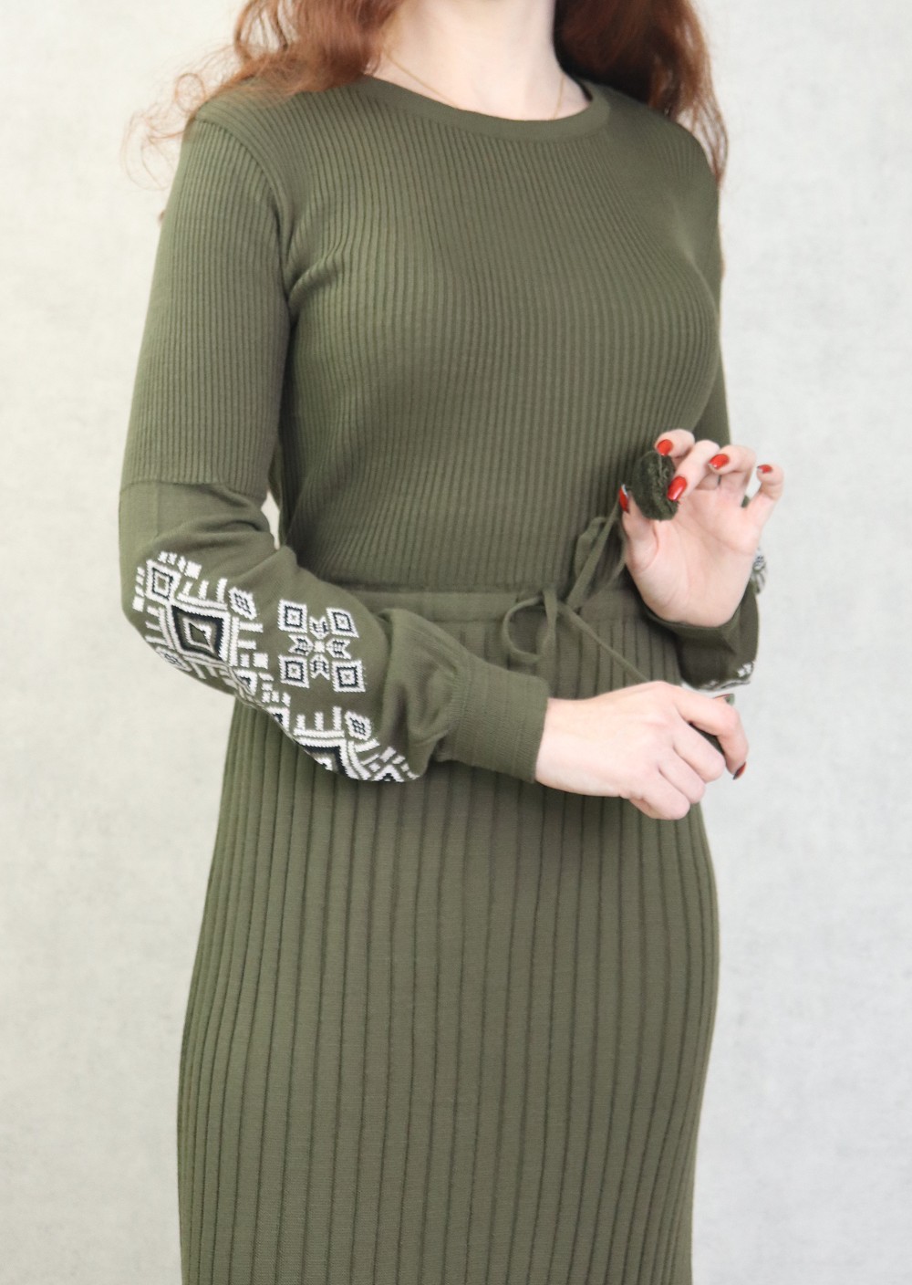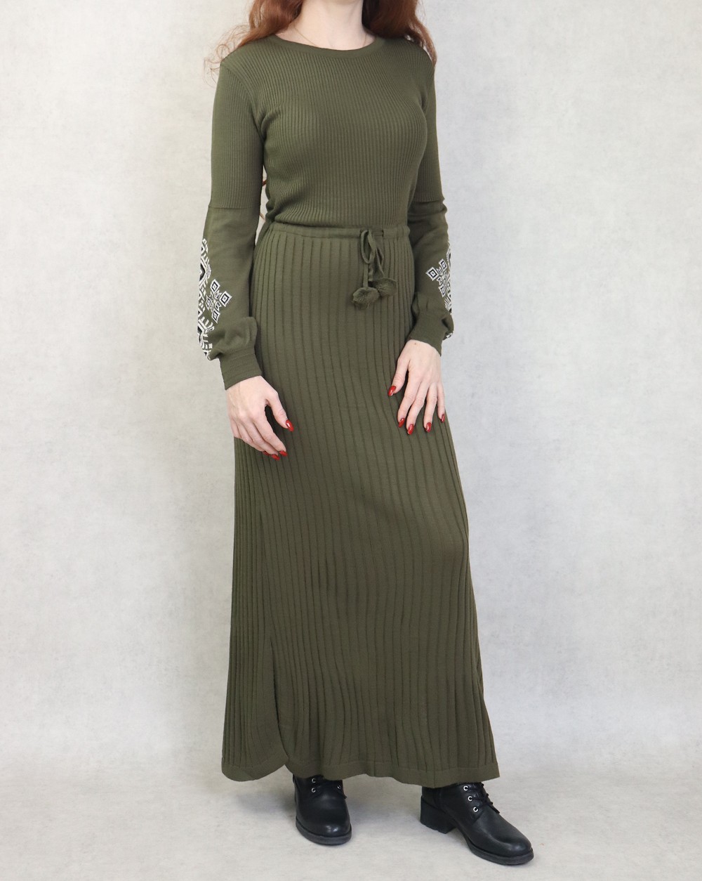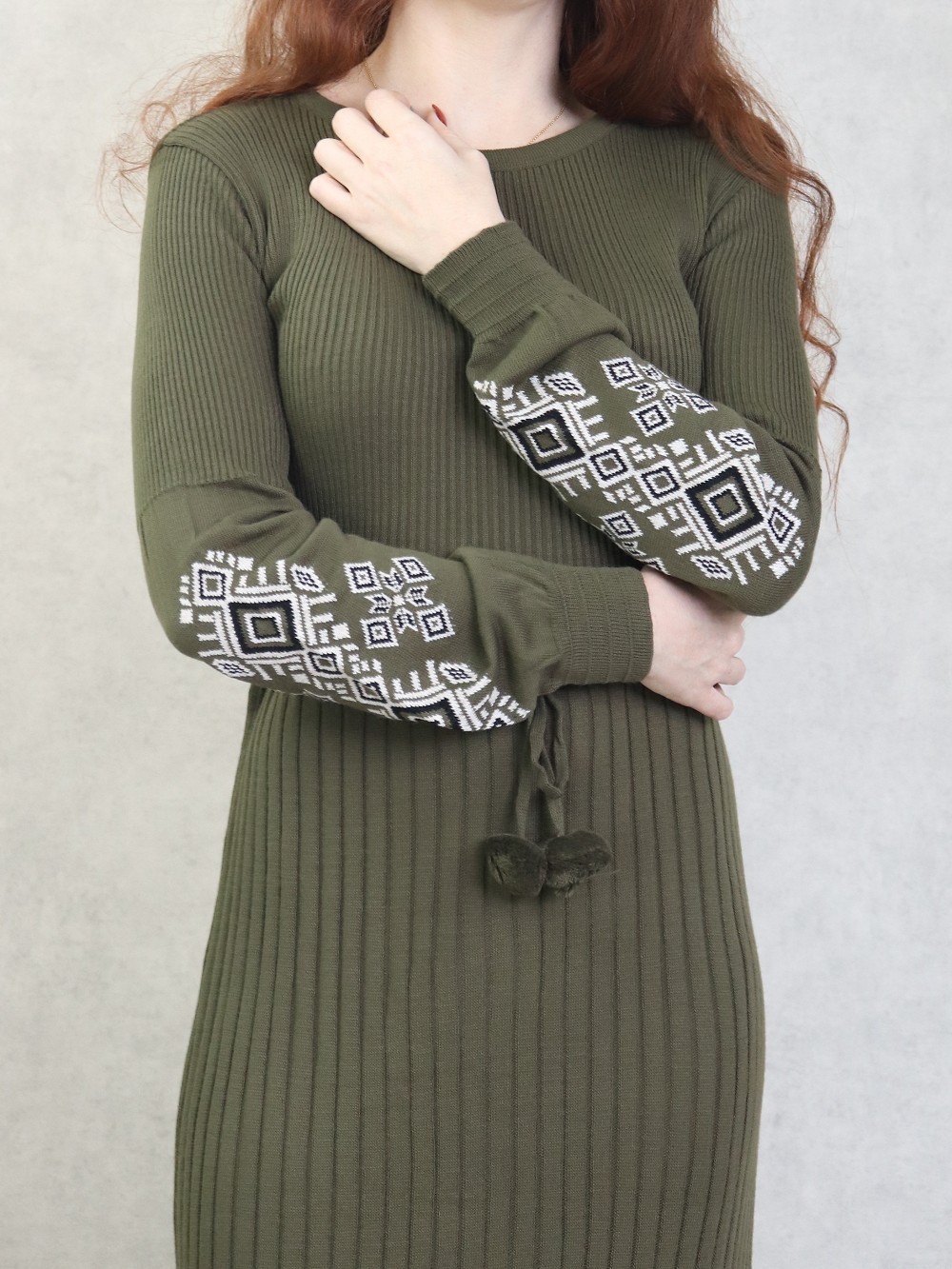 Robe originale, elle mettra en valeur votre côté chic et féminin. Encolure rond. Manches longues avec motif brodé sur l'avant bras. Découpe taille avec un lien de serrage. Facile à vivre, douce sur la peau et bien souple, la robe pull en côtes.