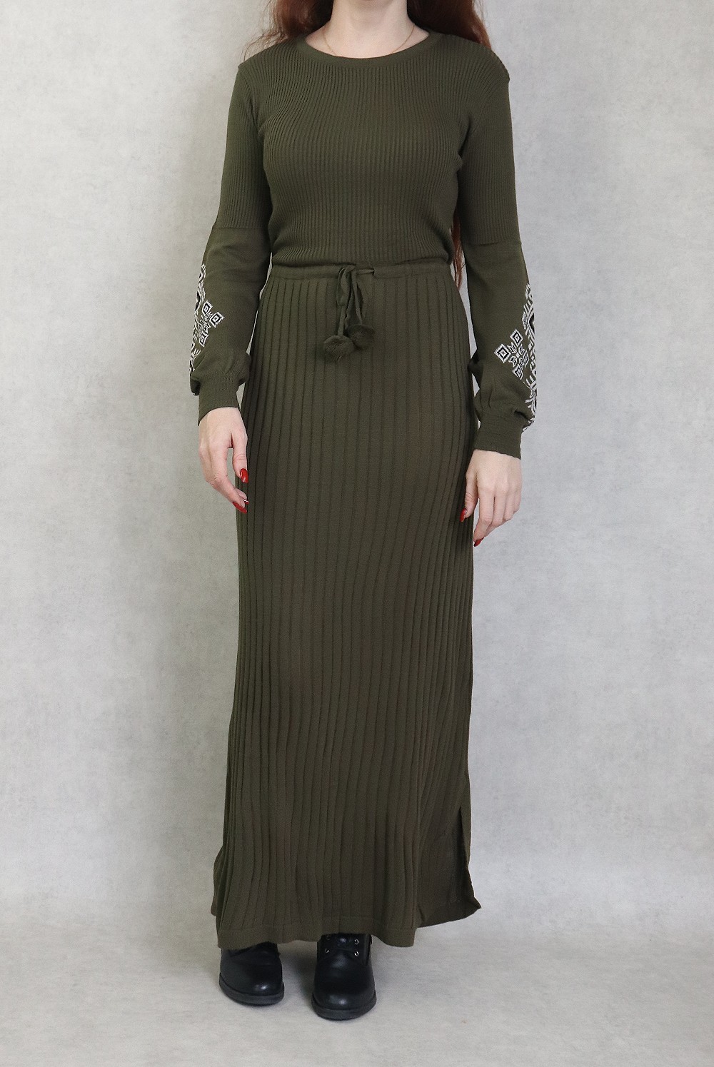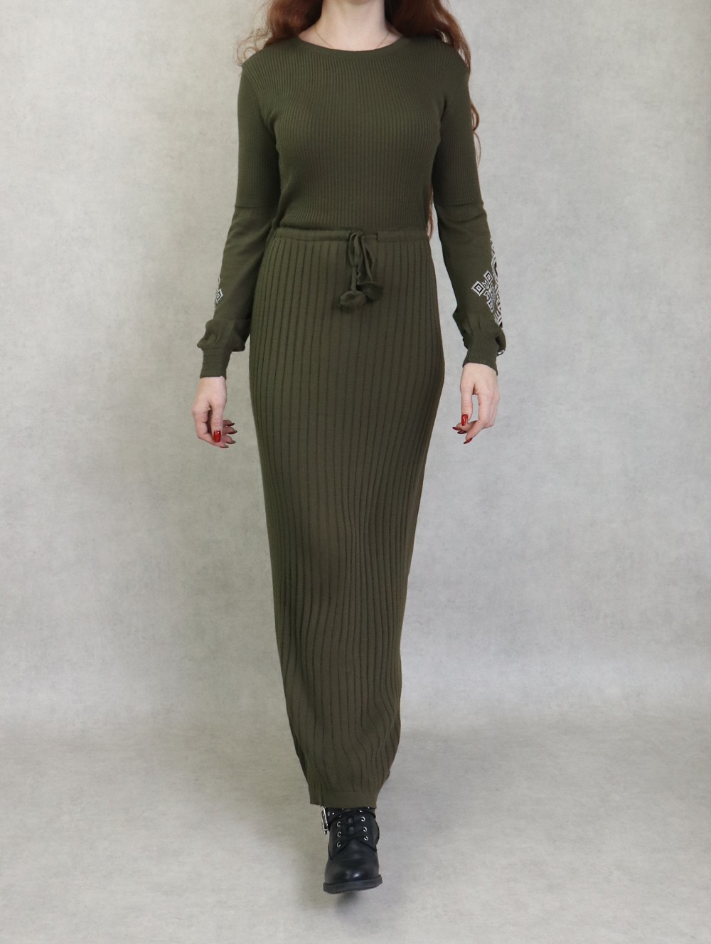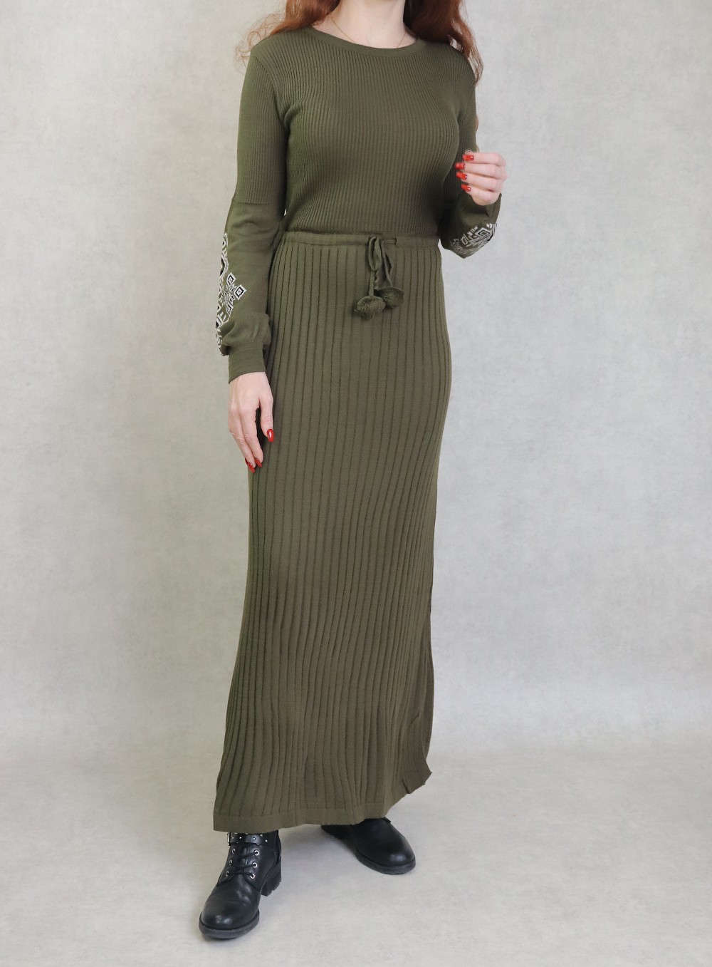 Robe originale, elle mettra en valeur votre côté chic et féminin. Encolure rond. Manches longues avec motif brodé sur l'avant bras. Découpe taille avec un lien de serrage. Facile à vivre, douce sur la peau et bien souple, la robe pull en côtes.