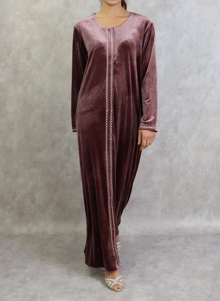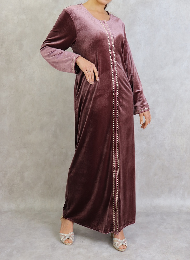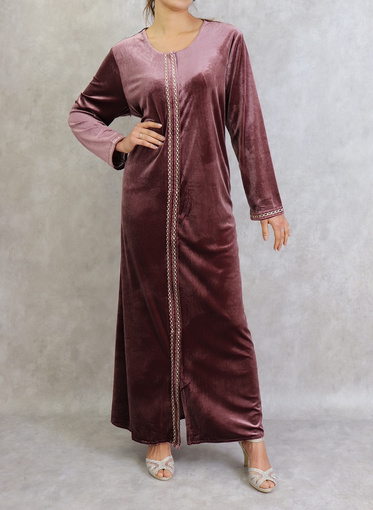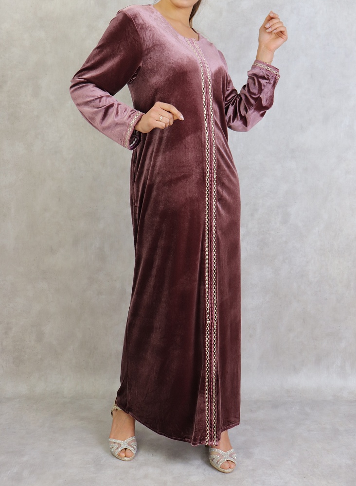 Confectionnée dans un style chic et classique, cette robe longue en velours saura vous satisfaire avec ses broderies fines.