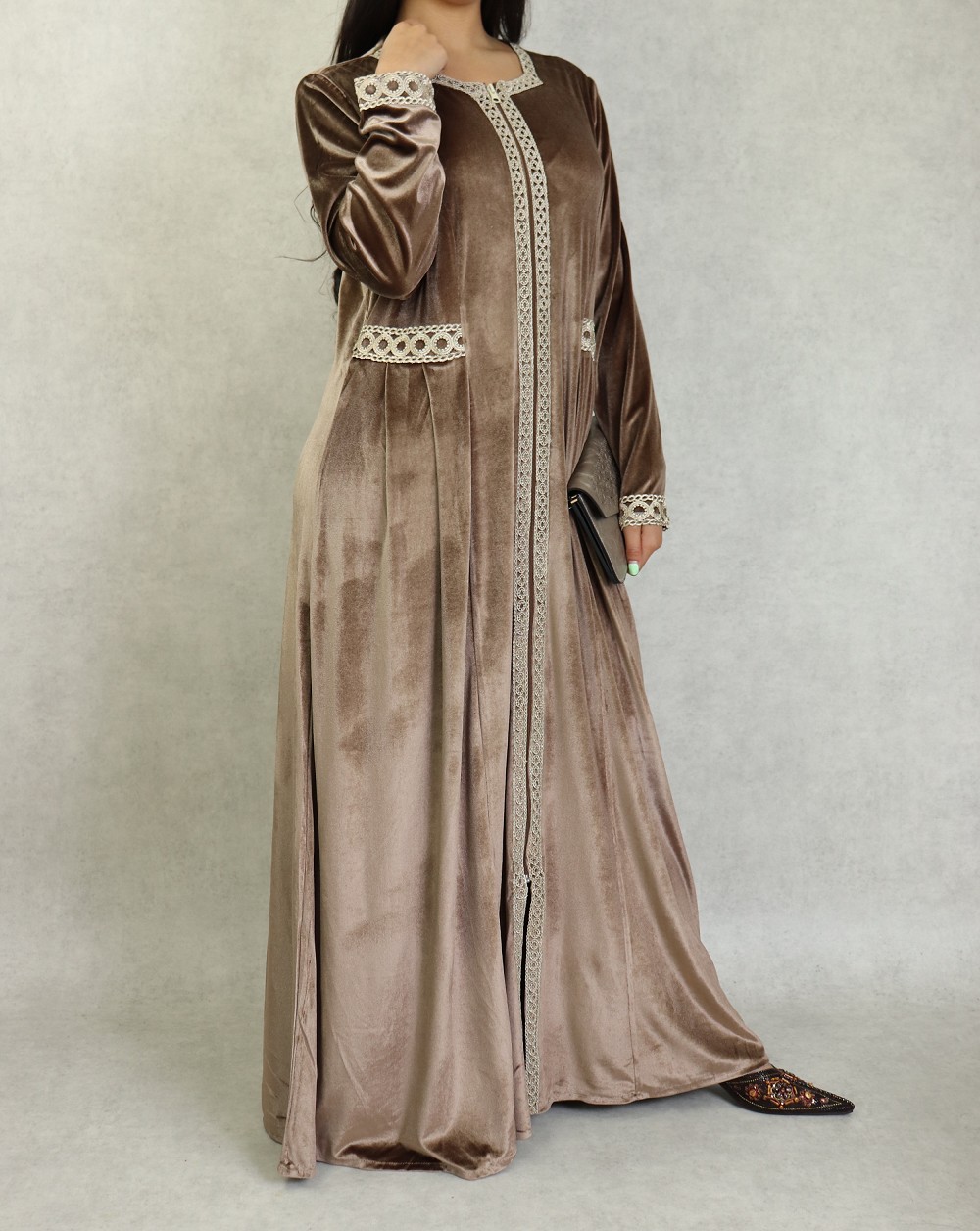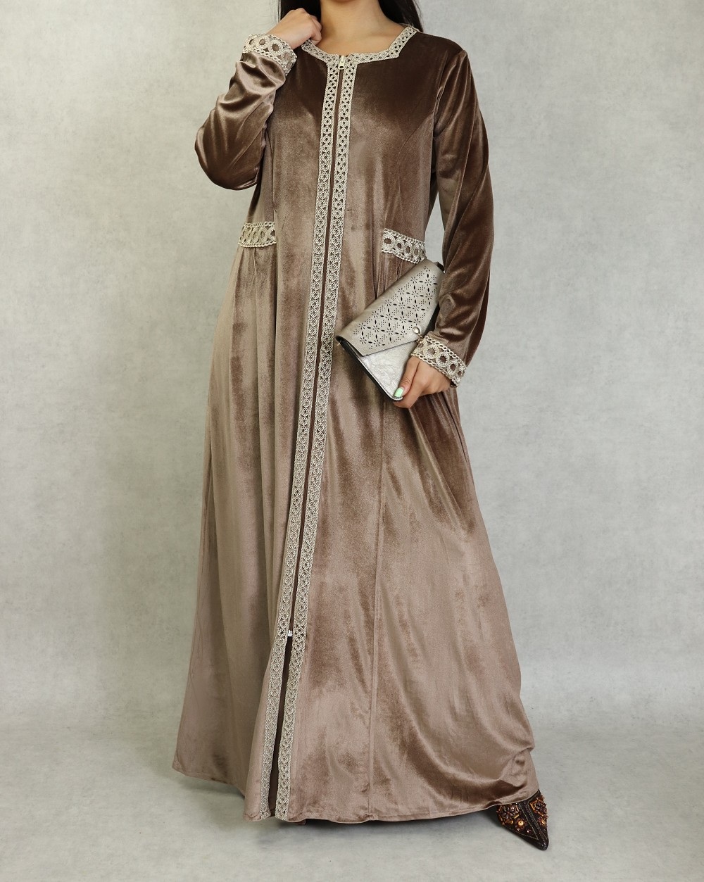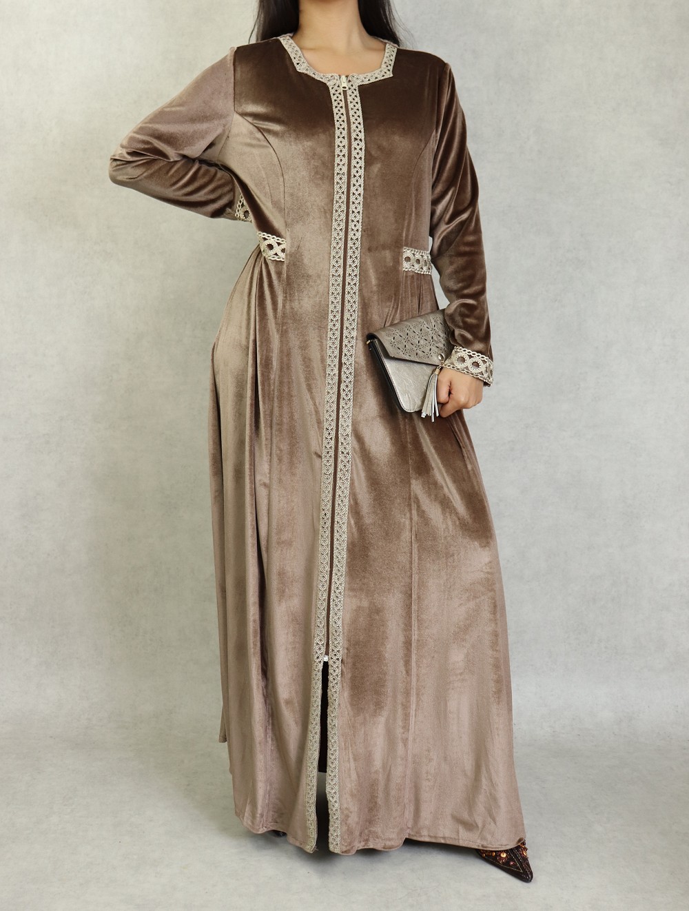 Confectionnée dans un style chic et classique, cette robe longue en velours saura vous satisfaire avec ses broderies fines.
