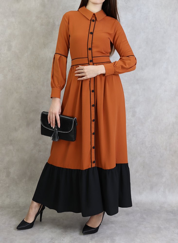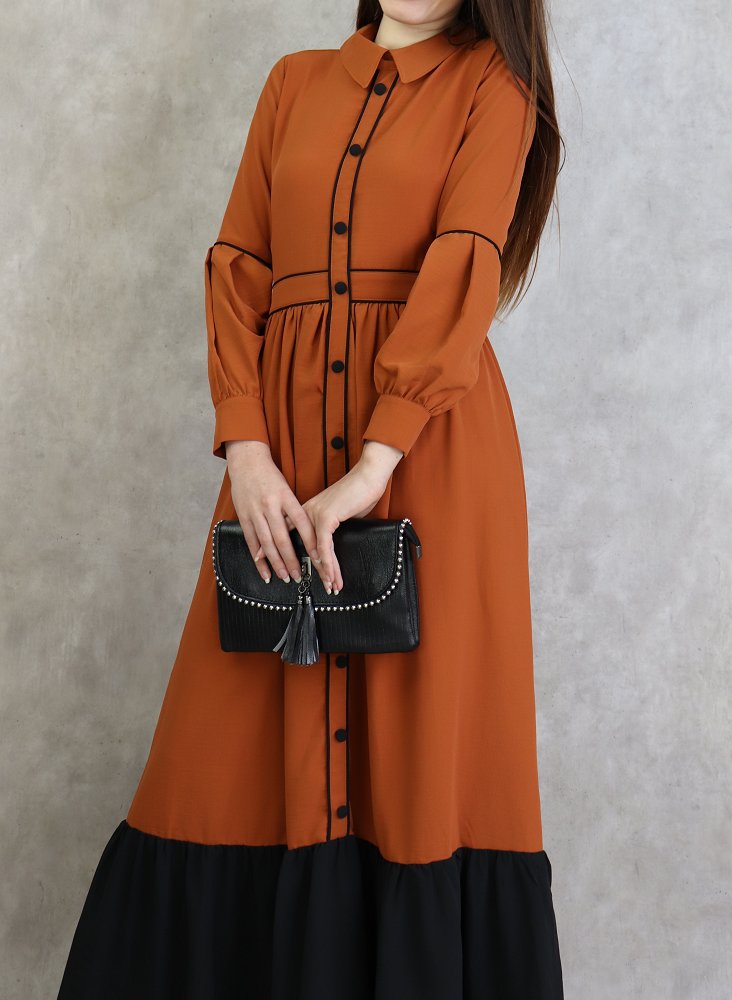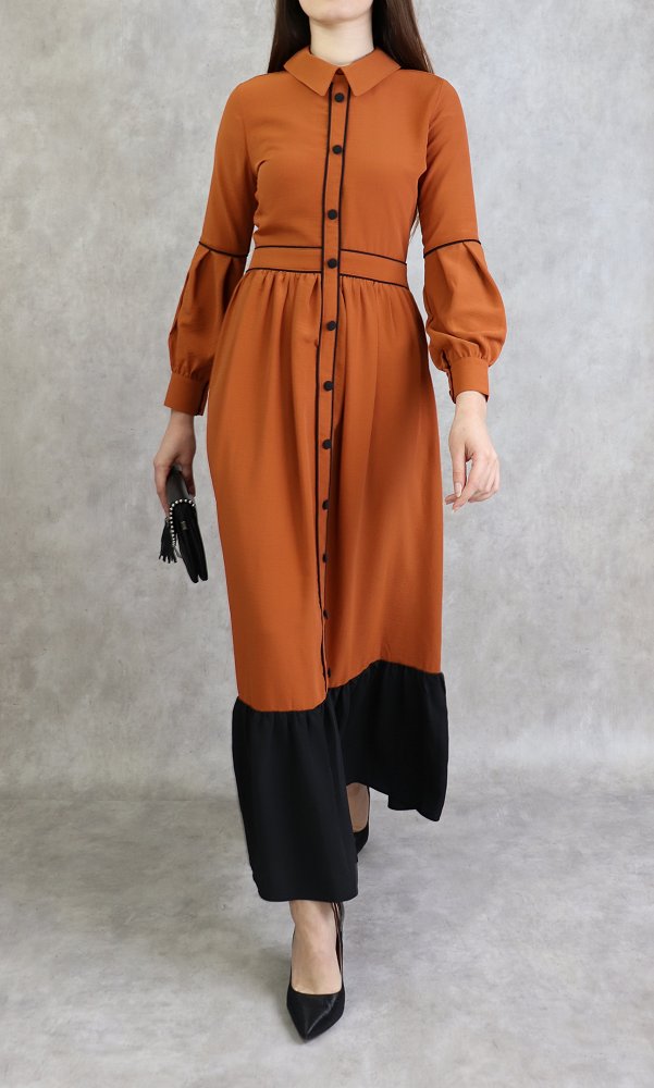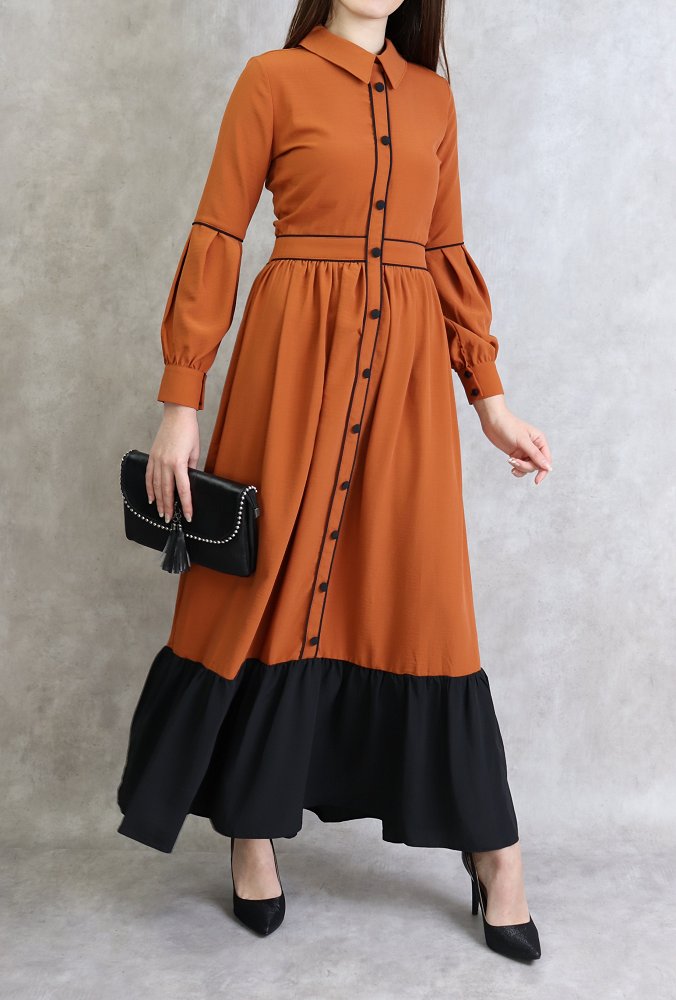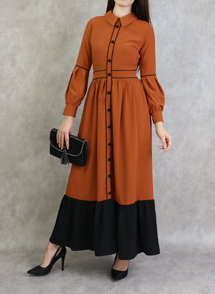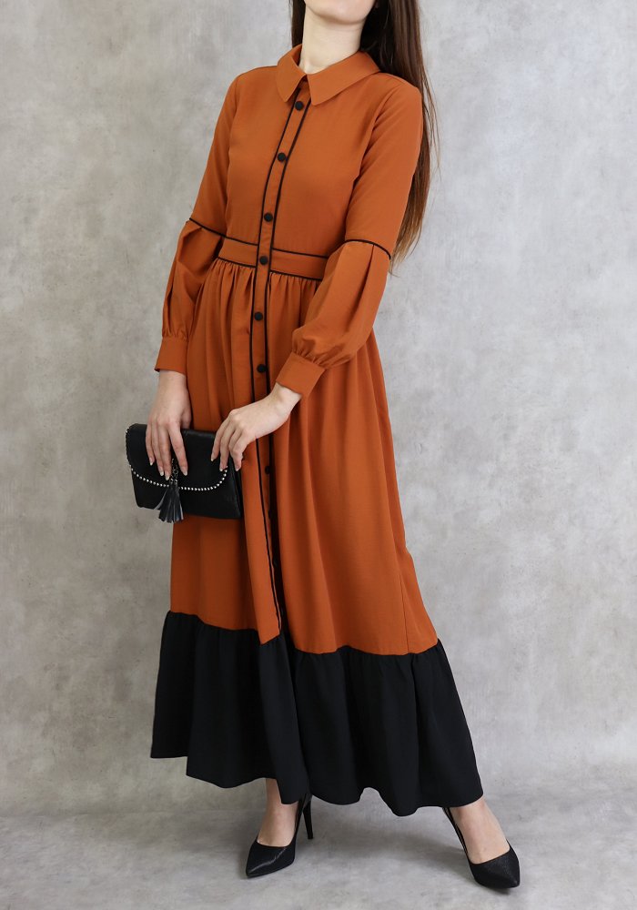 Robe longue évasée bicolore - Couleur rouille Vetement & Accessoire