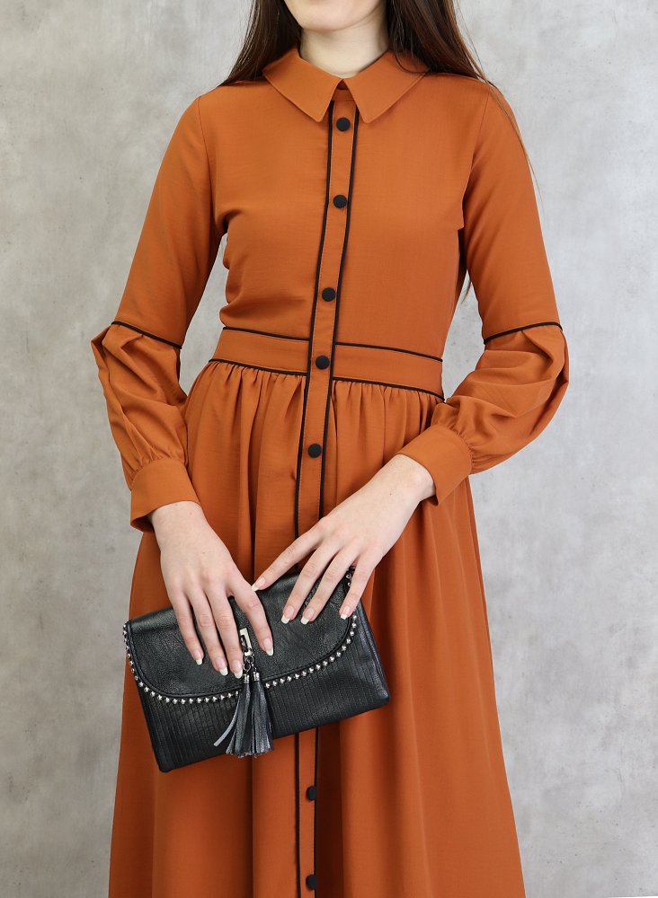 Robe tissu polaire avec ceinture (Tenue Hijab Chaud pour l'Hiver) - Couleur brique - REF. 35700 (26.90 €)