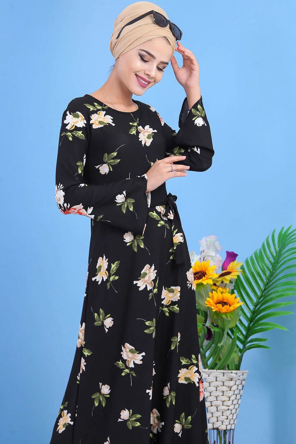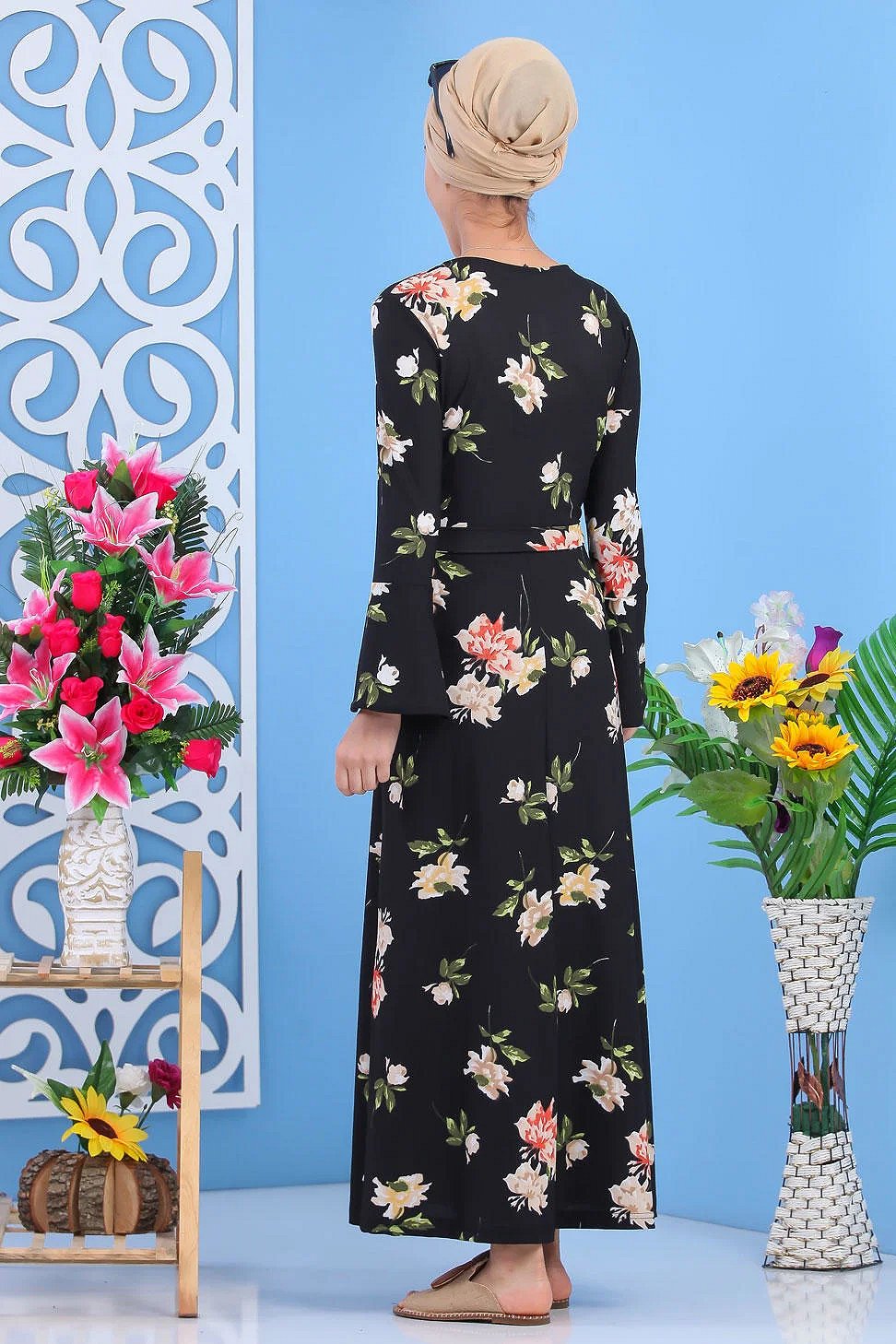 Halima Fashion Dubai : Robe orientale zébrée avec des motifs fleurs manches courtes pour femme - REF. 20200 (20.00 €)