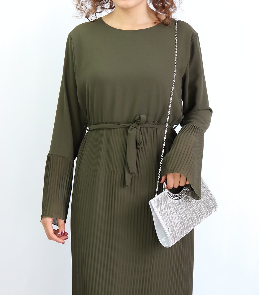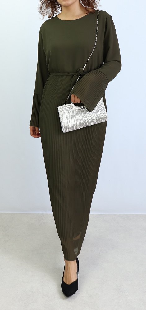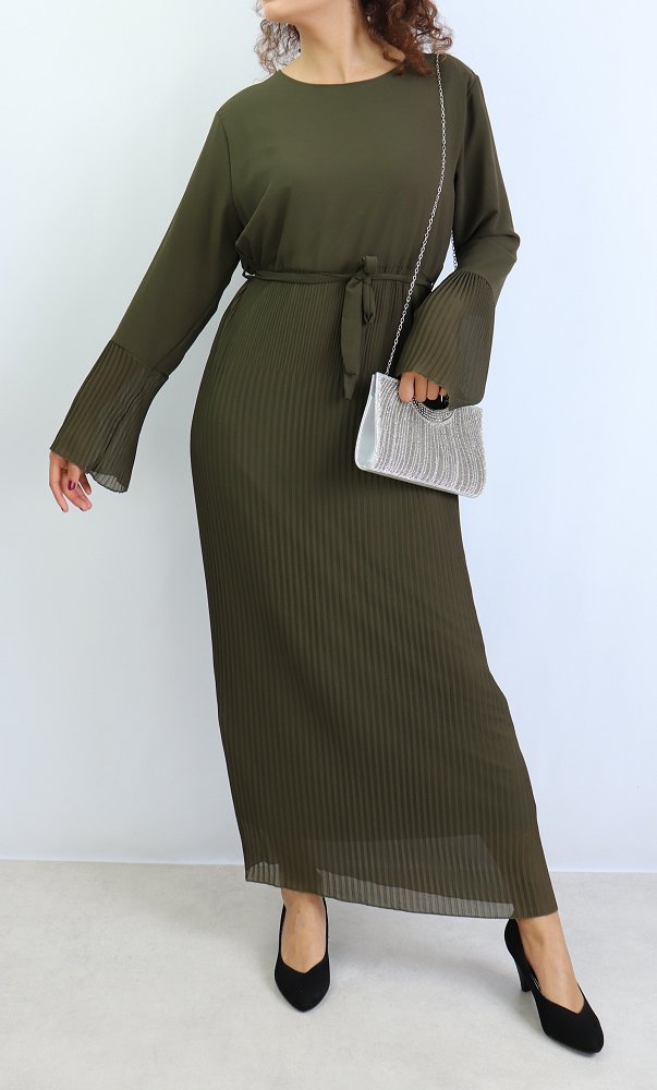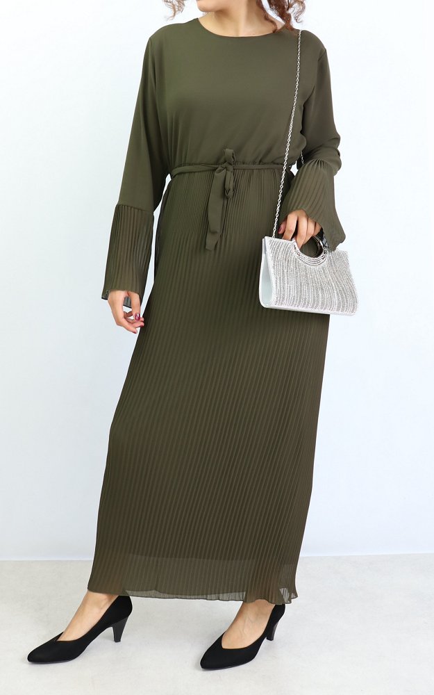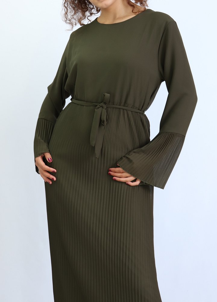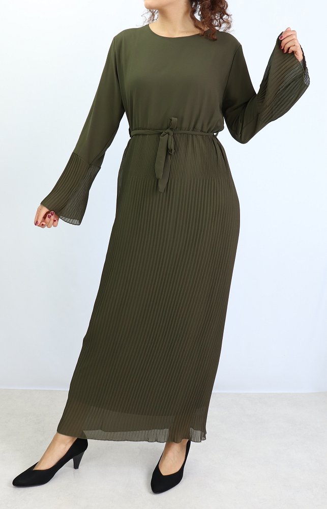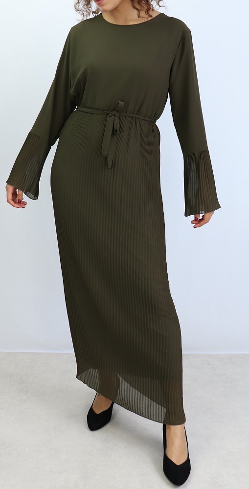Robe longue fluide bas plissé pour femme - Couleur Vert Kaki Vetement & Accessoire