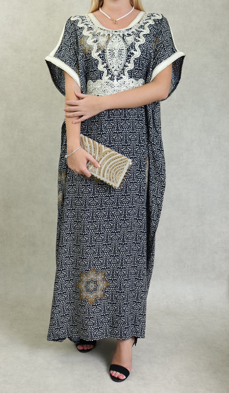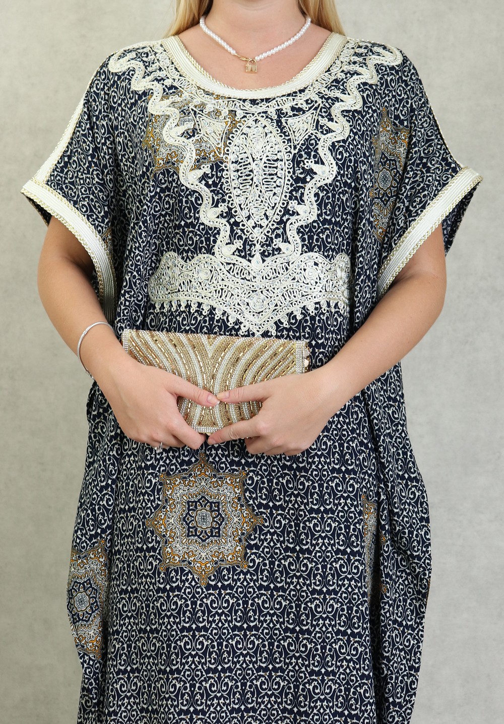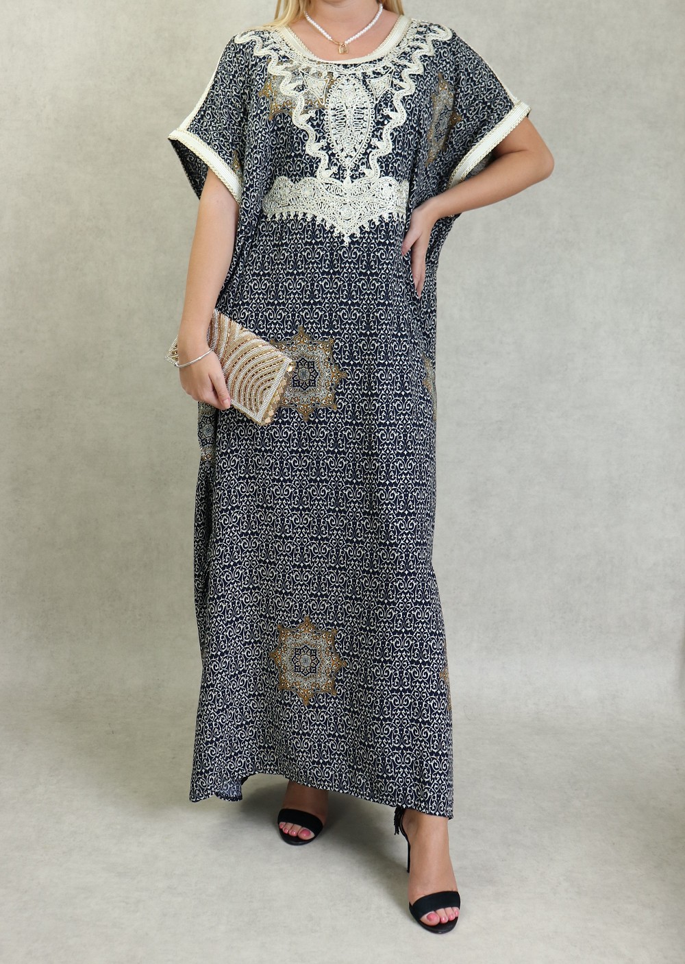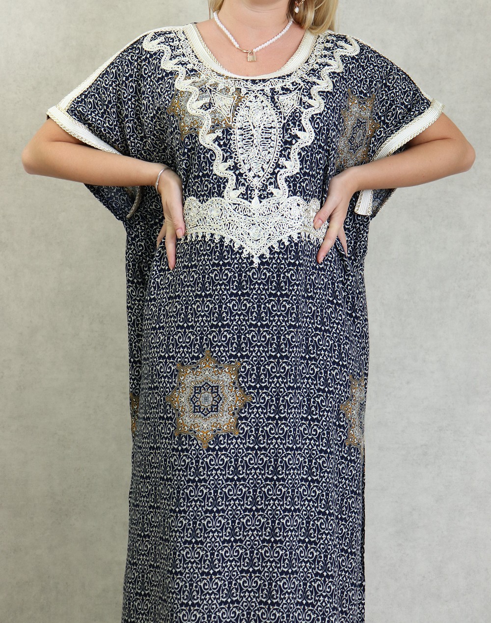 Robe tunisienne manches courtes avec broderies - Couleur Bleu Marine - REF. 32384 (26.00 €)