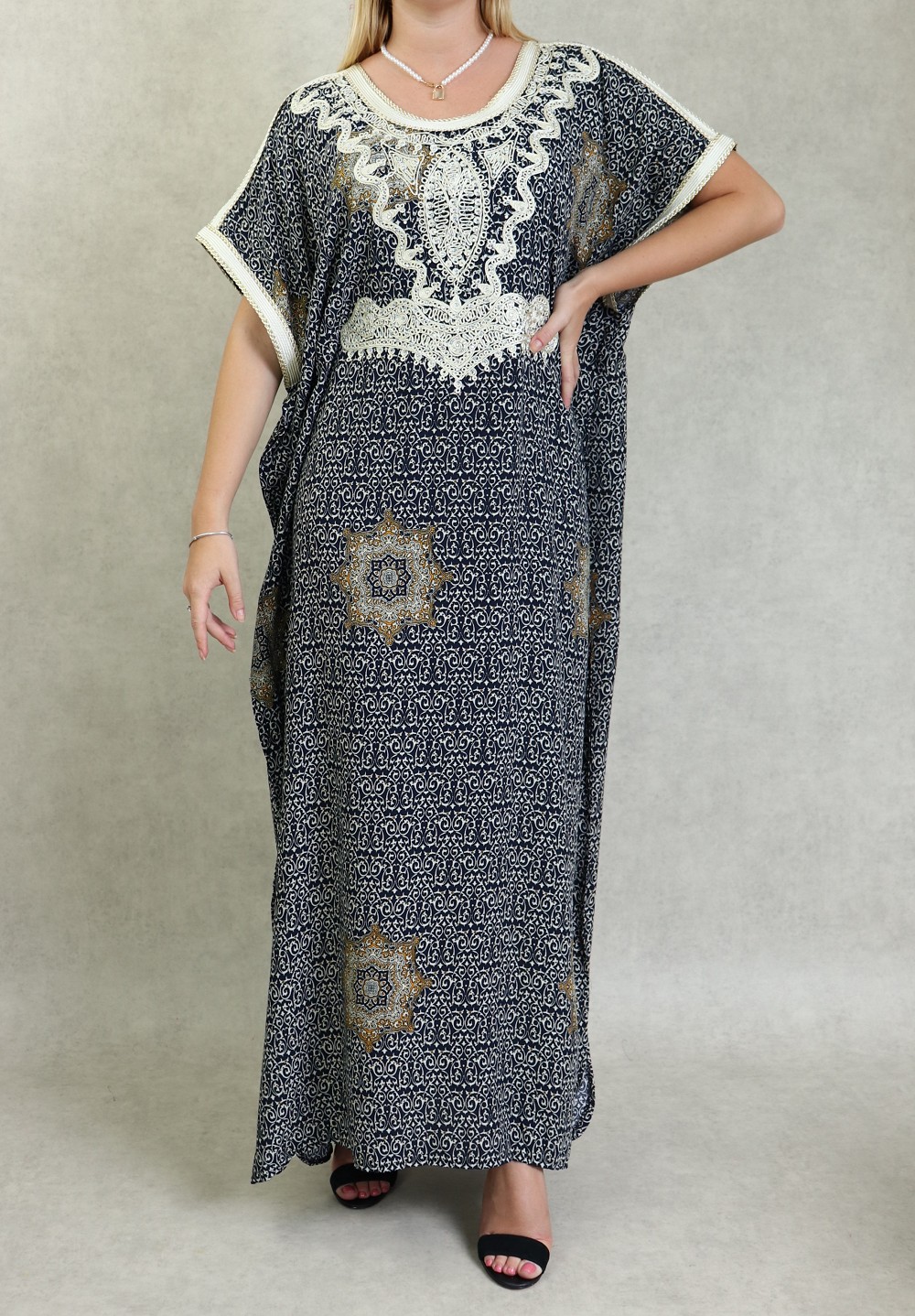 Robe style oriental pour la maison et l'été (Robes extra-large et grande taille pour femme) - Couleur Motifs Noir - REF. 36087 (14.90 €)