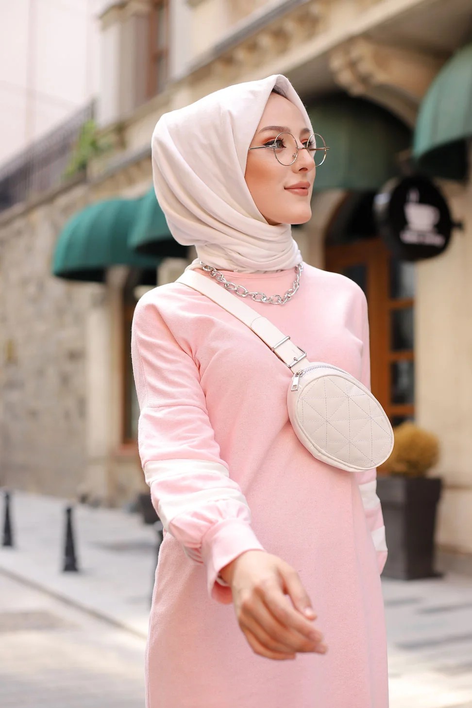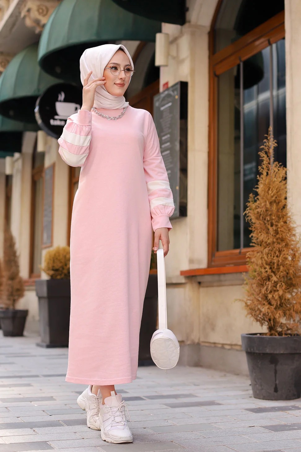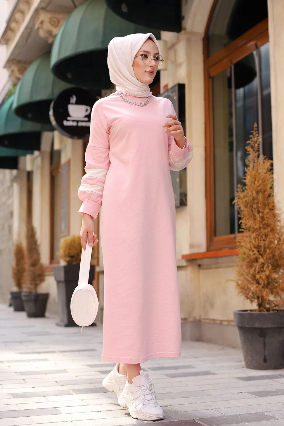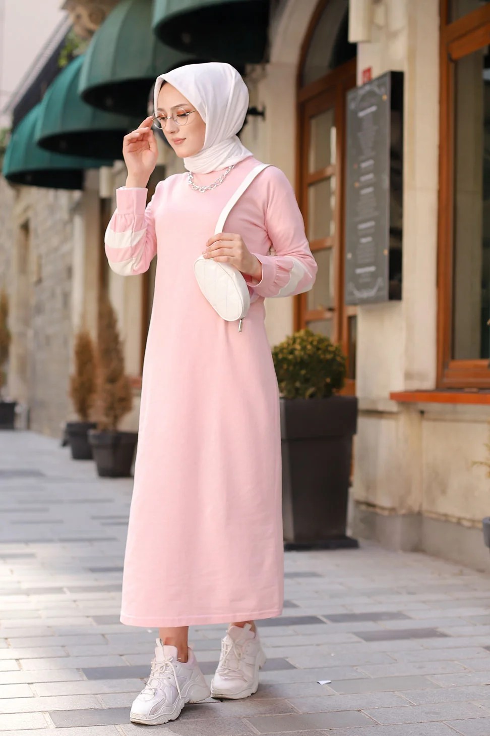 Robe longue look decontracte pour femme musulmane (Vetement hijeb pas cher) - Couleur rose clair