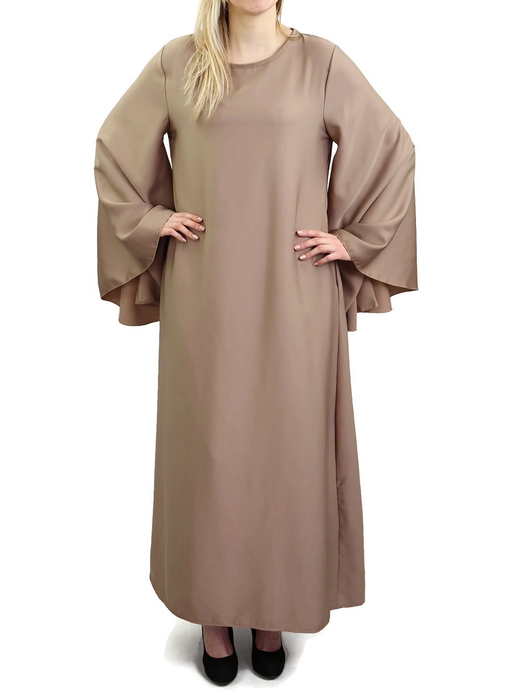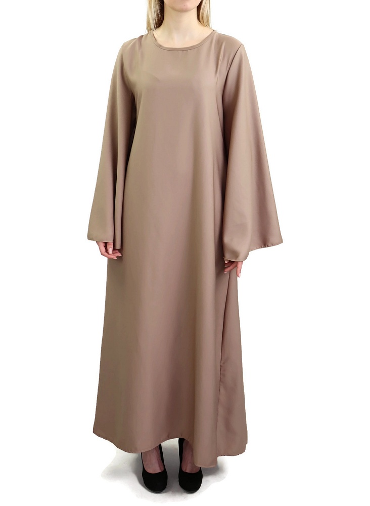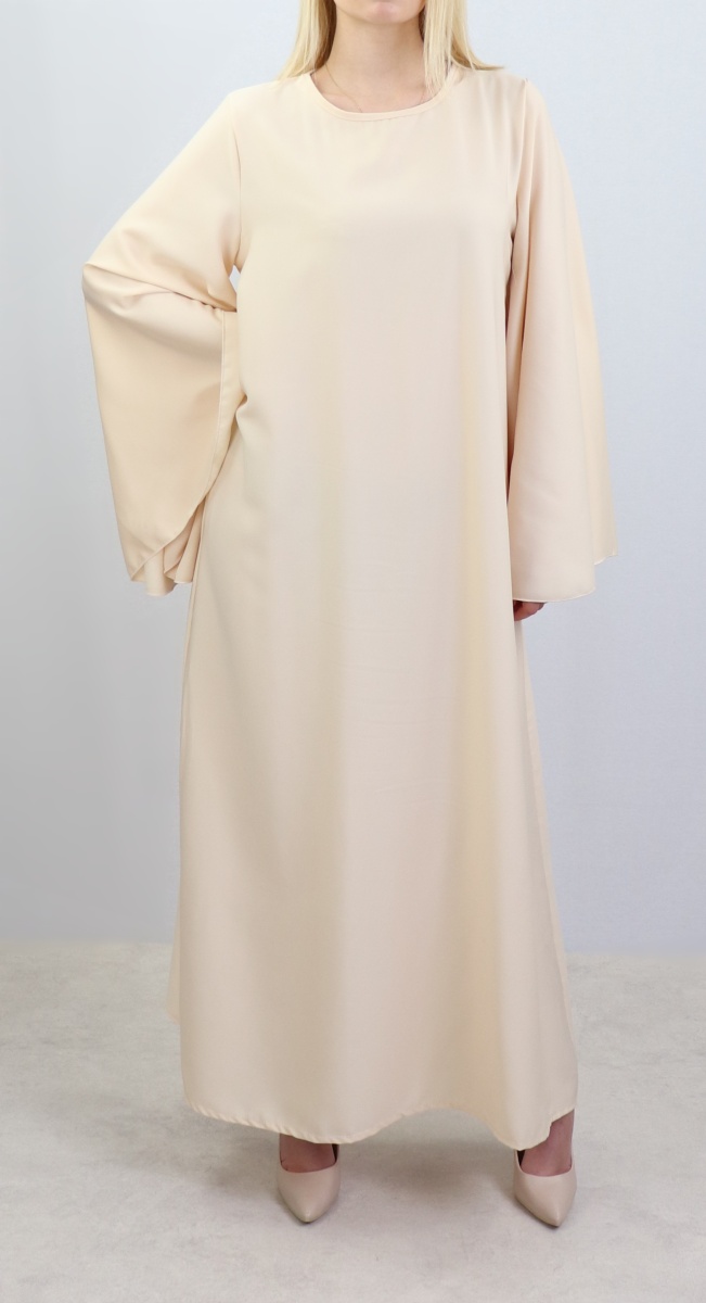 Robe longue perlée chic et classe (Vêtement habillé pour femme voilée) - Couleur beige - REF. 35988 (36.00 €)