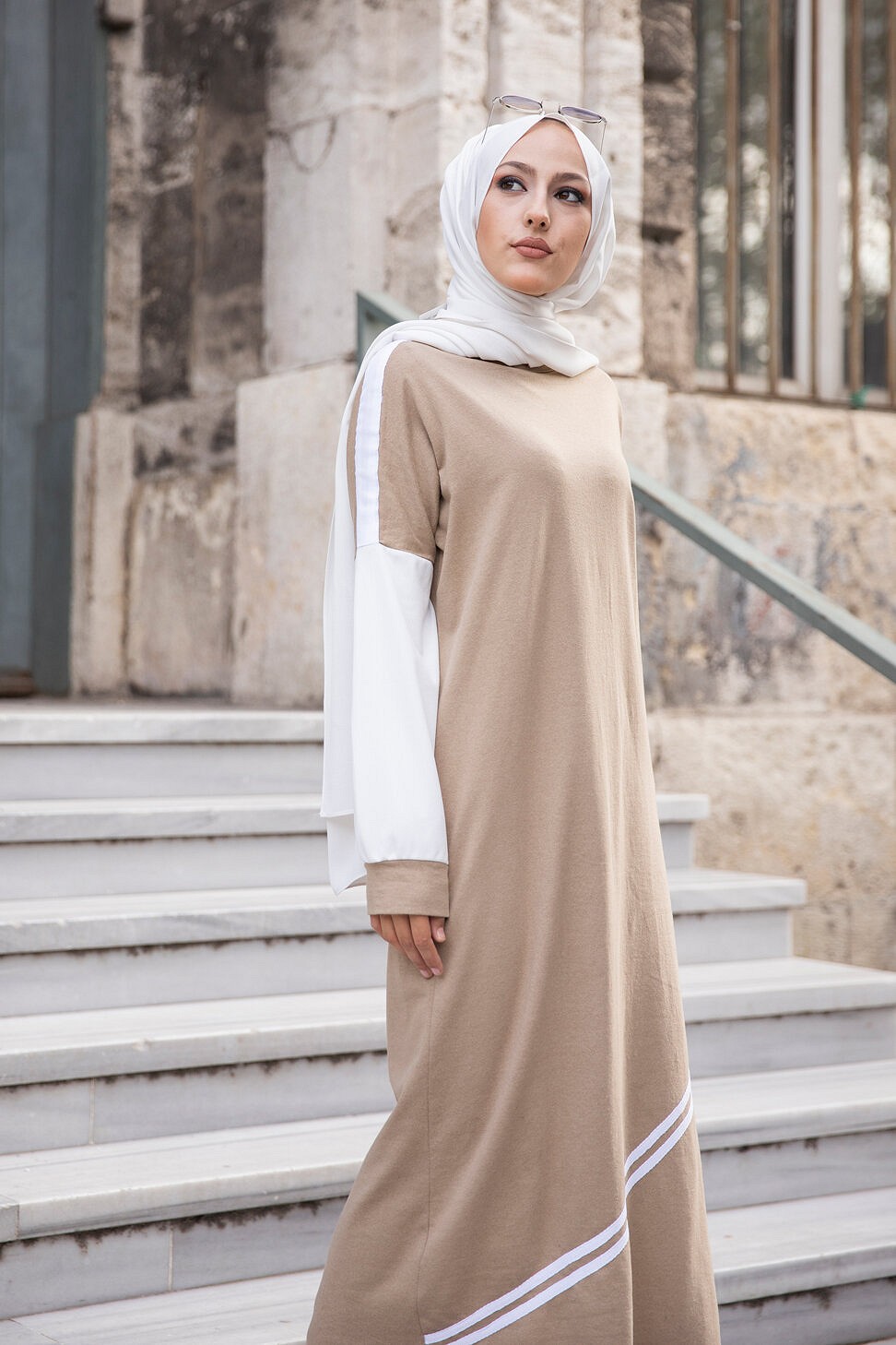 Robe longue moderne (Boutique vêtement islamique et hijab pour femme voilée) - Couleur beige Vetement & Accessoire