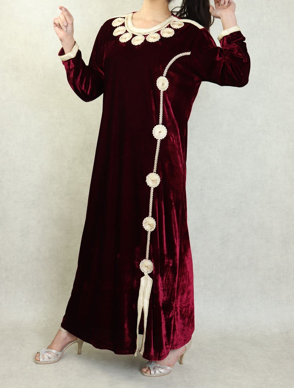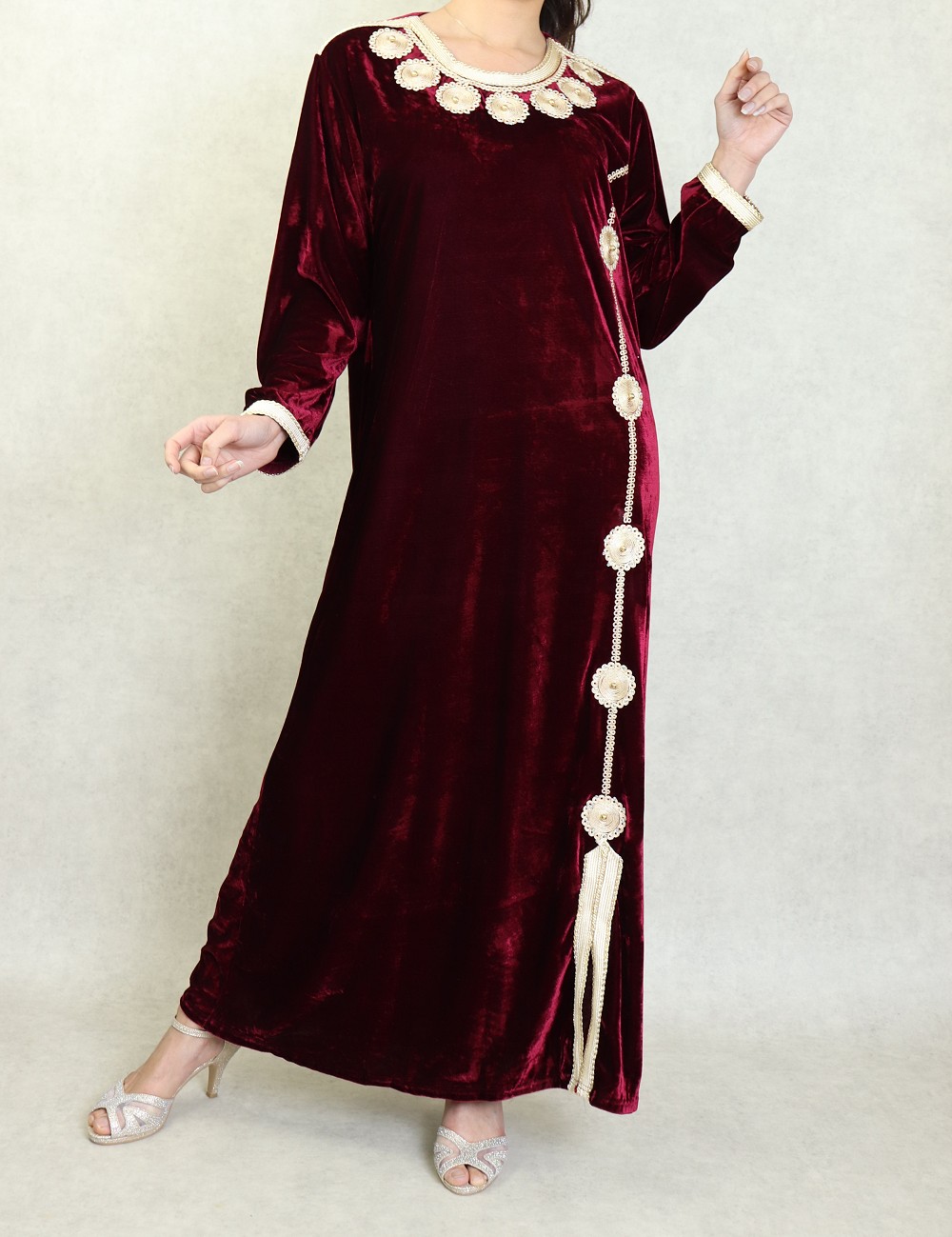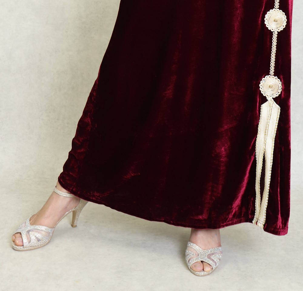 Robe longue orientale algérienne en velours brodée et perlée pour femme - Couleur Bordeaux Vetement & Accessoire