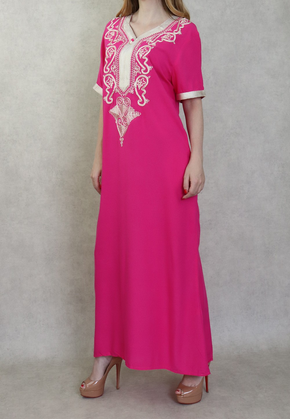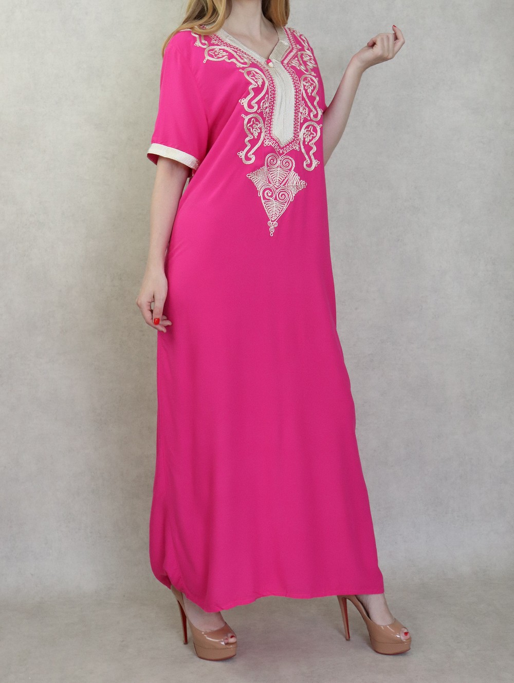Robe longue orientale avec borderies en coton pour femme - Couleur fuchsia Vetement & Accessoire