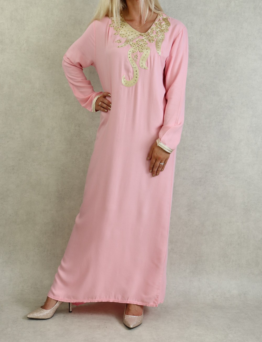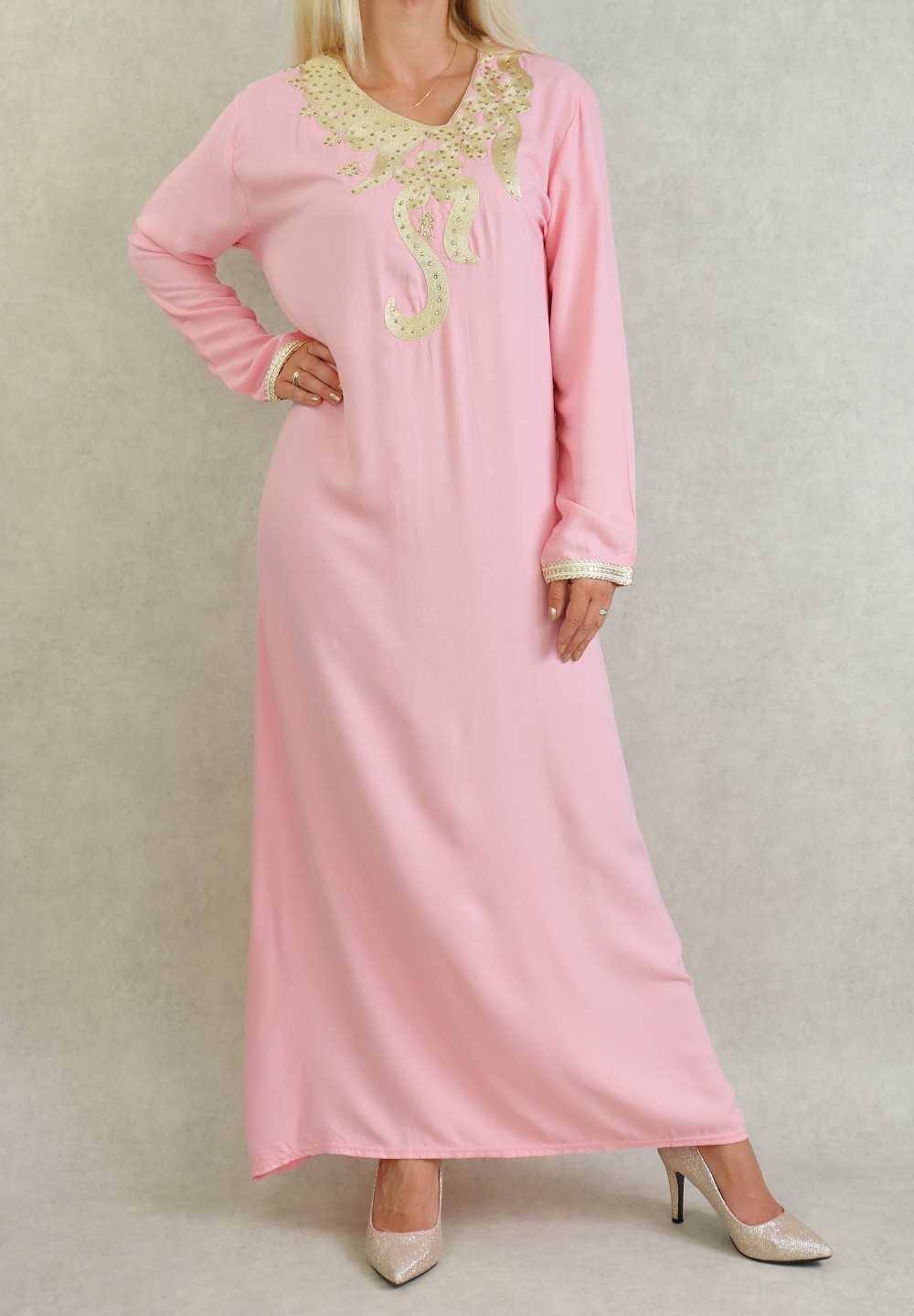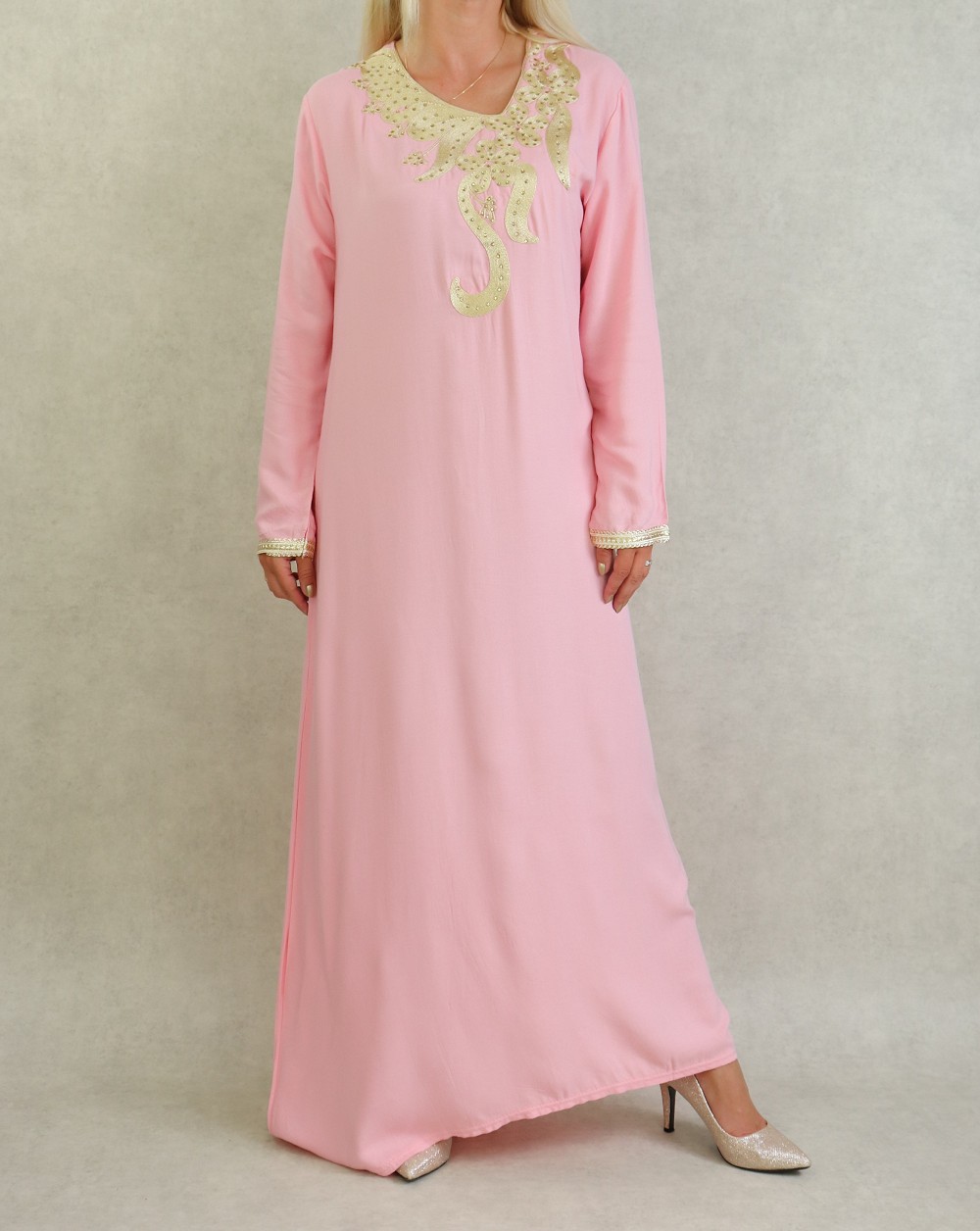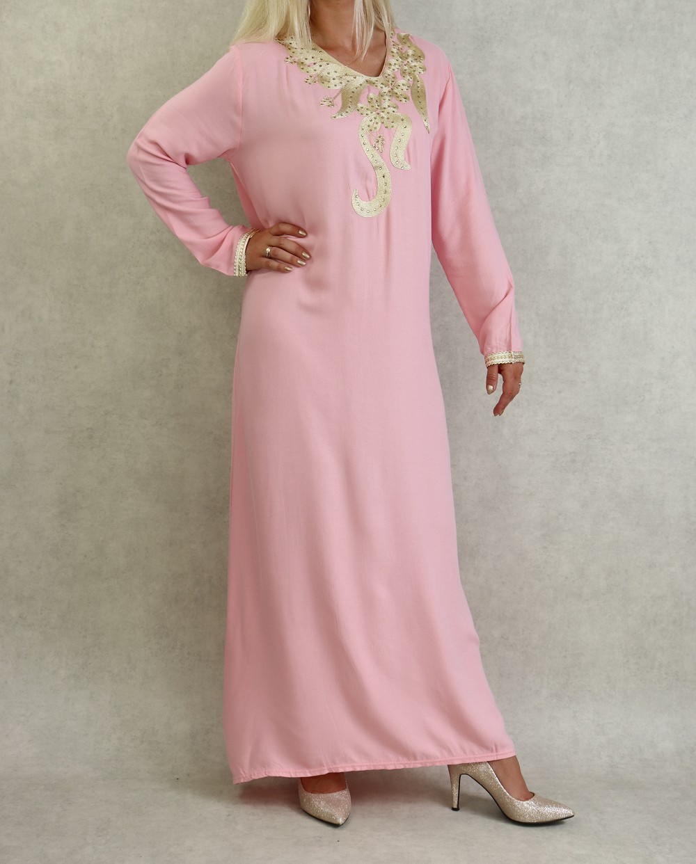 Robe longue orientale pour femme avec broderies et strass dorés - Couleur rose clair Vetement & Accessoire