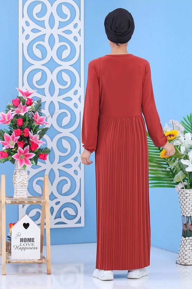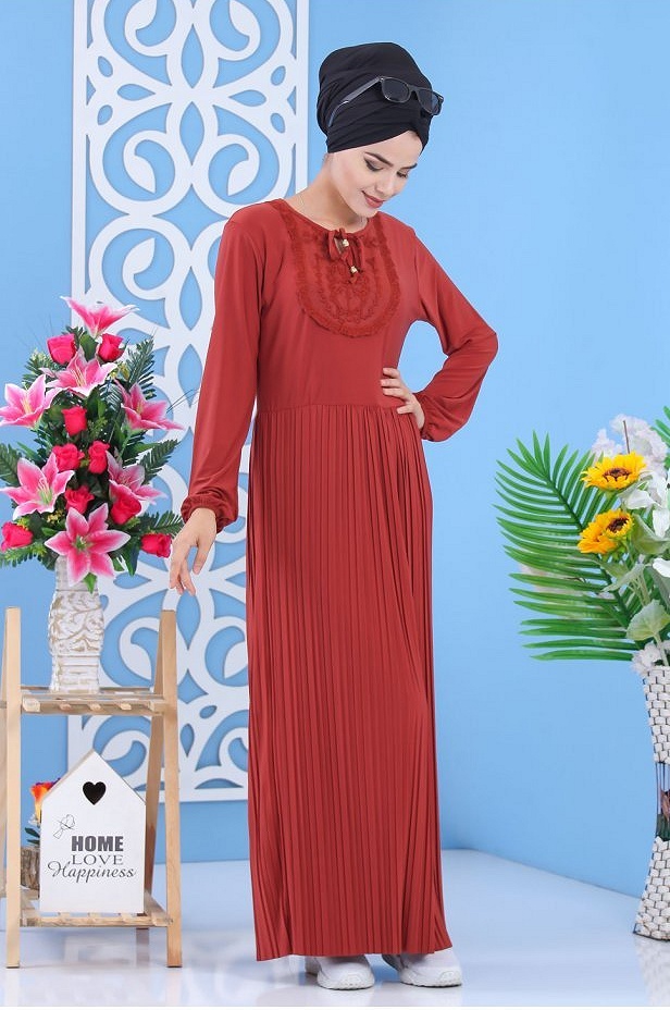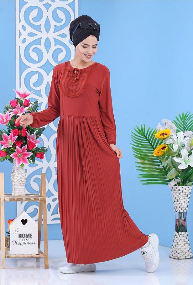 Robe longue style sport pour femme voilée (Robes hijab moderne pas cher) - Couleur Brique - REF. 34610 (19.90 €)