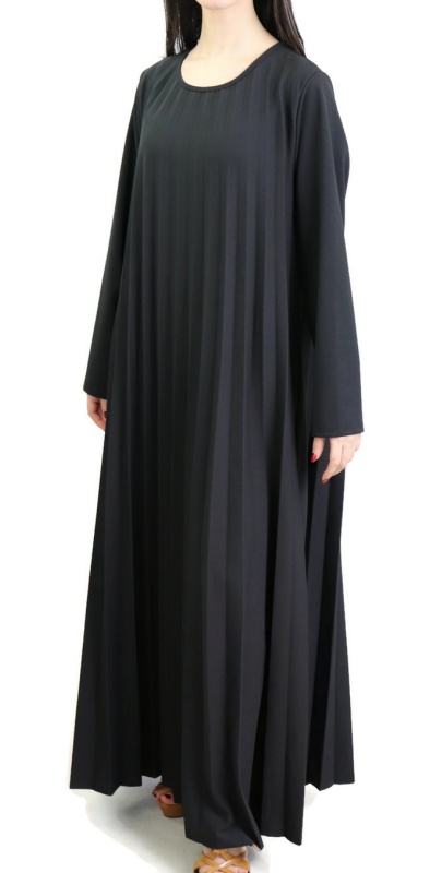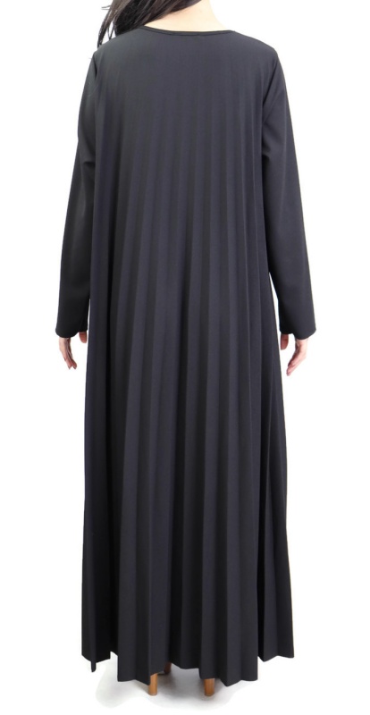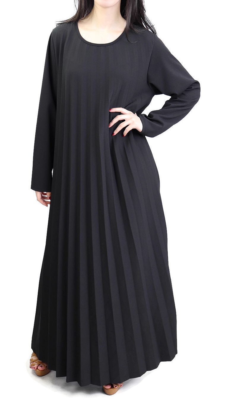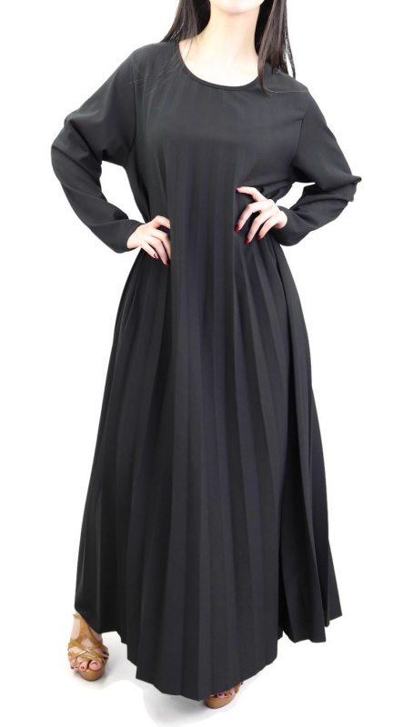 Robe longue plissee et evasee - Taille Standard pour femme - Couleur noire
