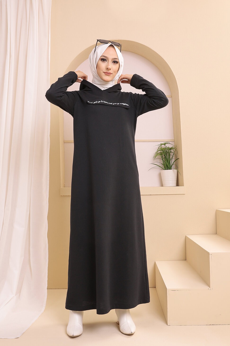 Robe longue style moderne avec capuche (Vetement hijab pour musulmane) - Couleur noir
