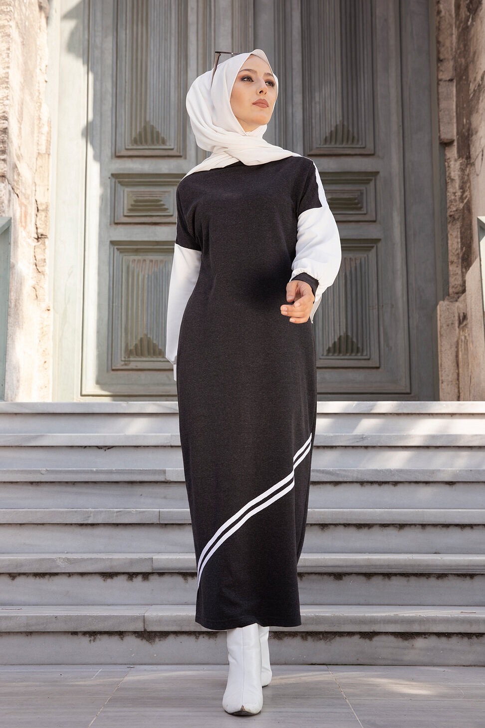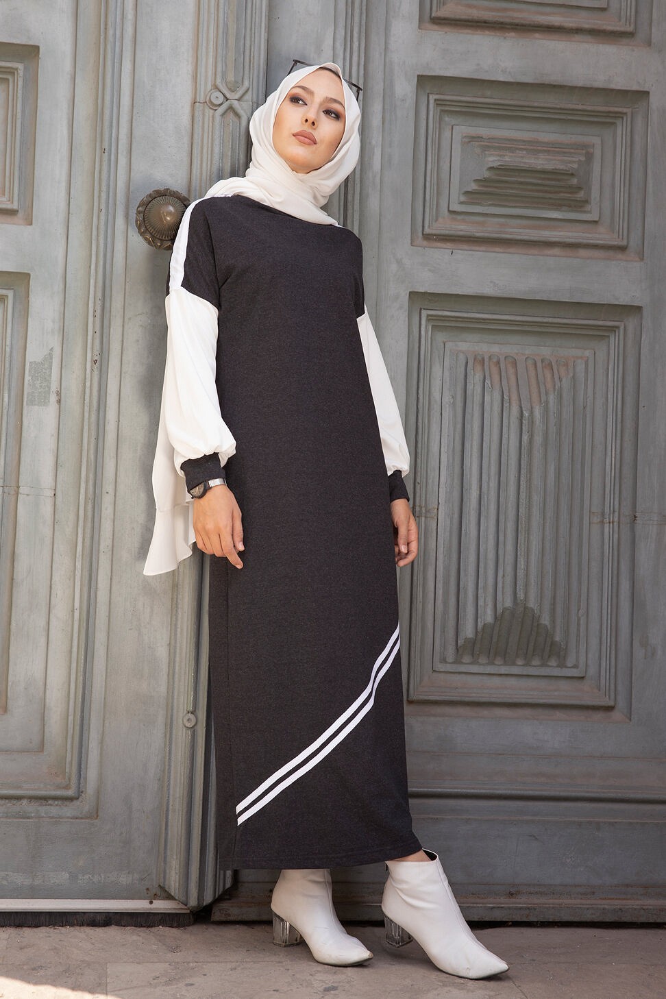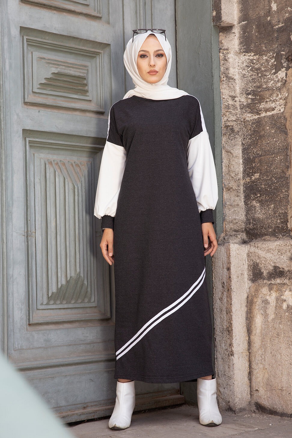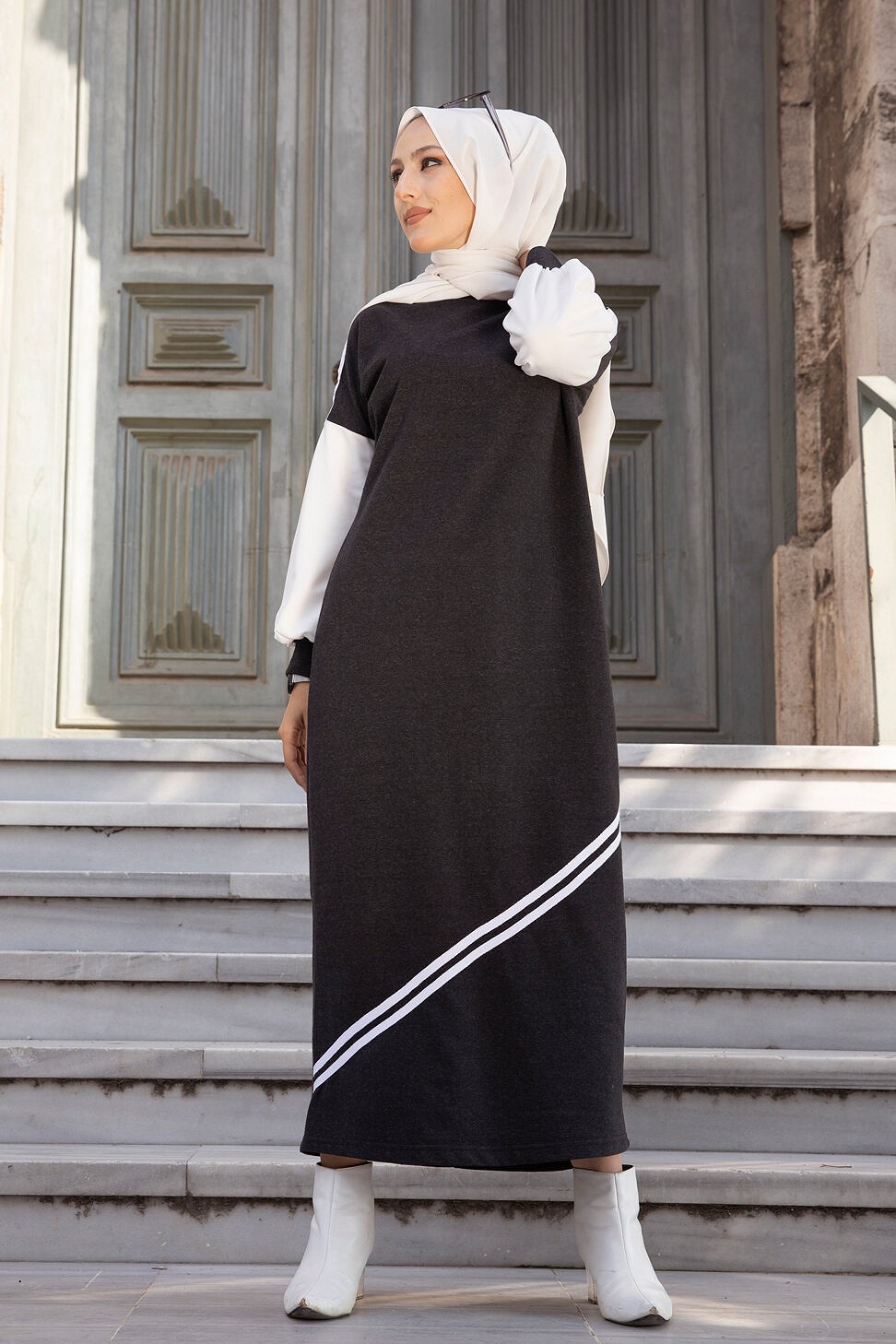Robe longue style moderne et décontracté (Boutique de vêtements pour femmes voilées) - Couleur anthracite Vetement & Accessoire
