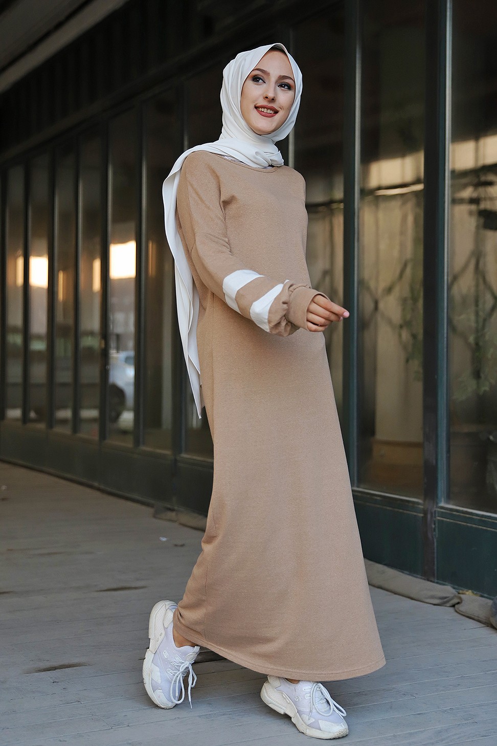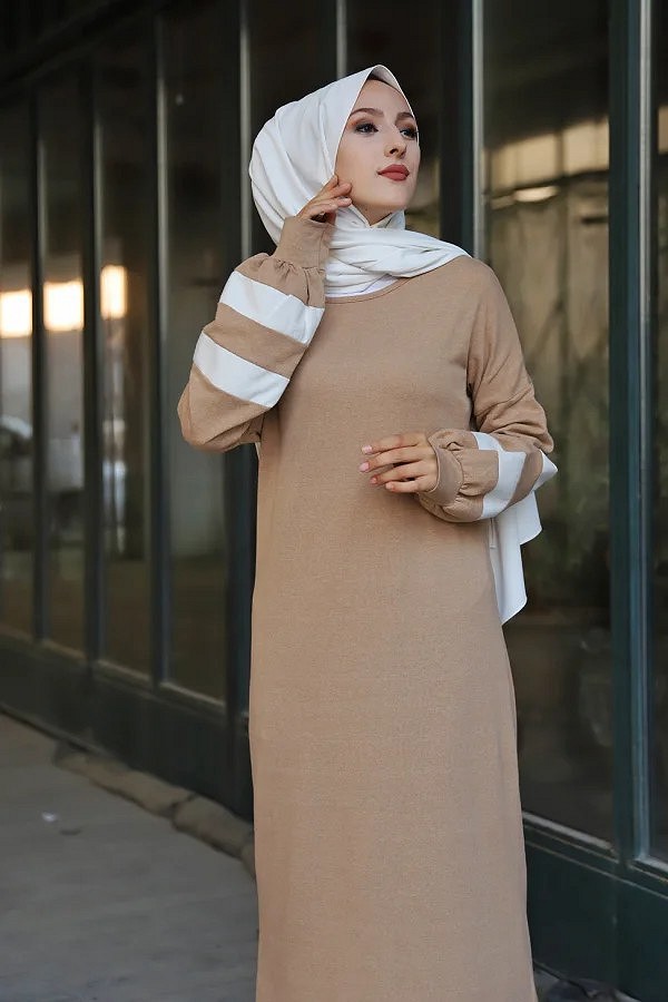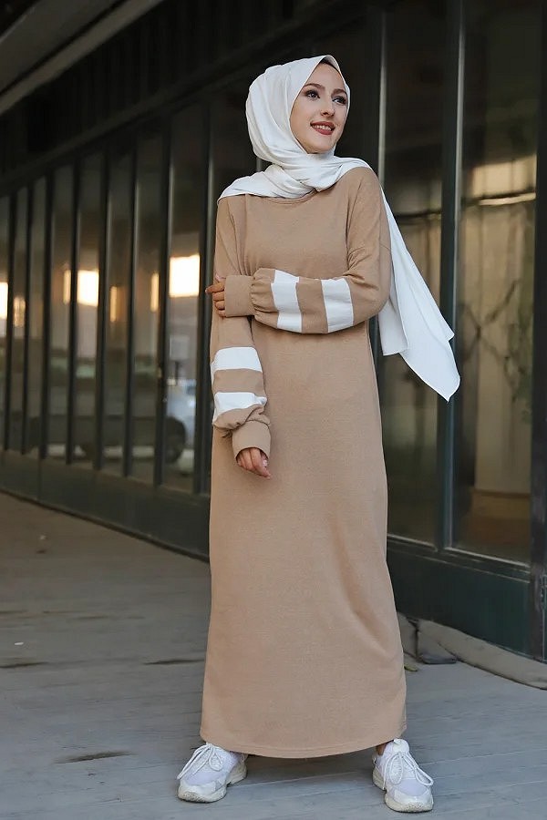 Robe longue style sport pour femme voilée (Robes hijab pas cher pour femmes) - Couleur Beige foncé Vetement & Accessoire