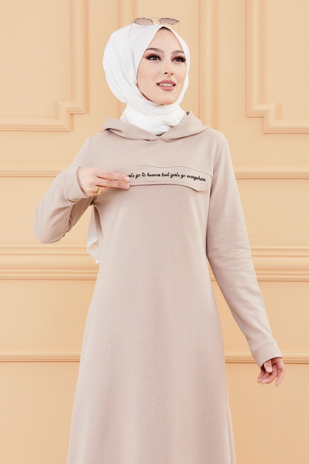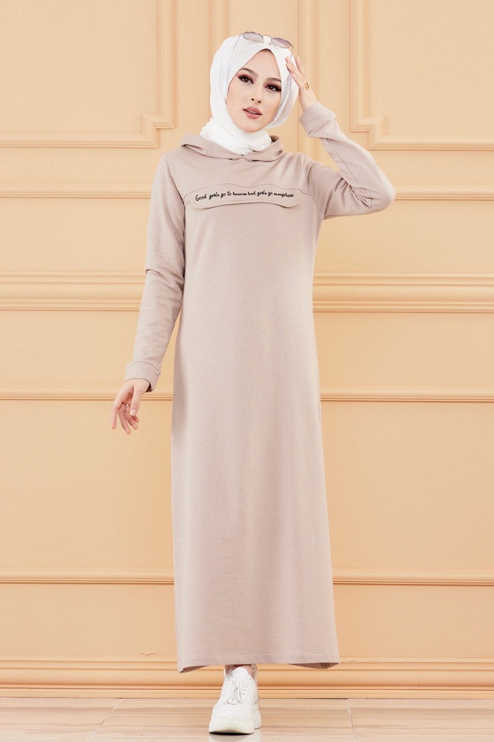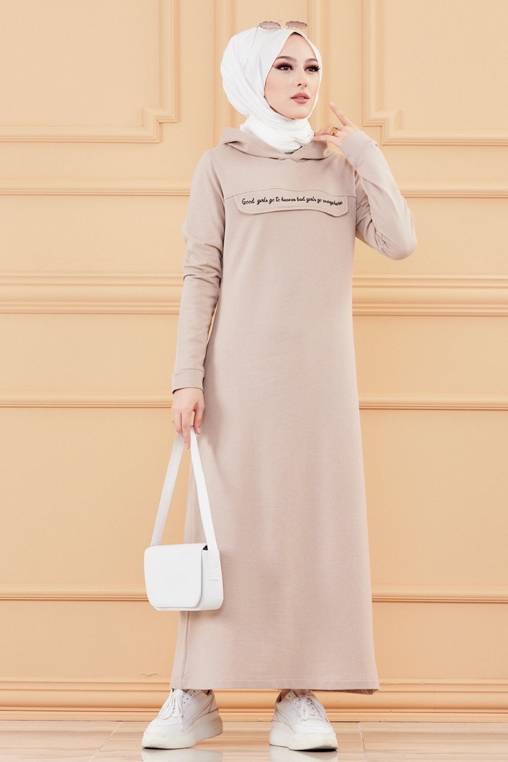 Robe longue style sweat avec capuche (Tenue pour musulmane sportive) - Couleur beige Vetement & Accessoire