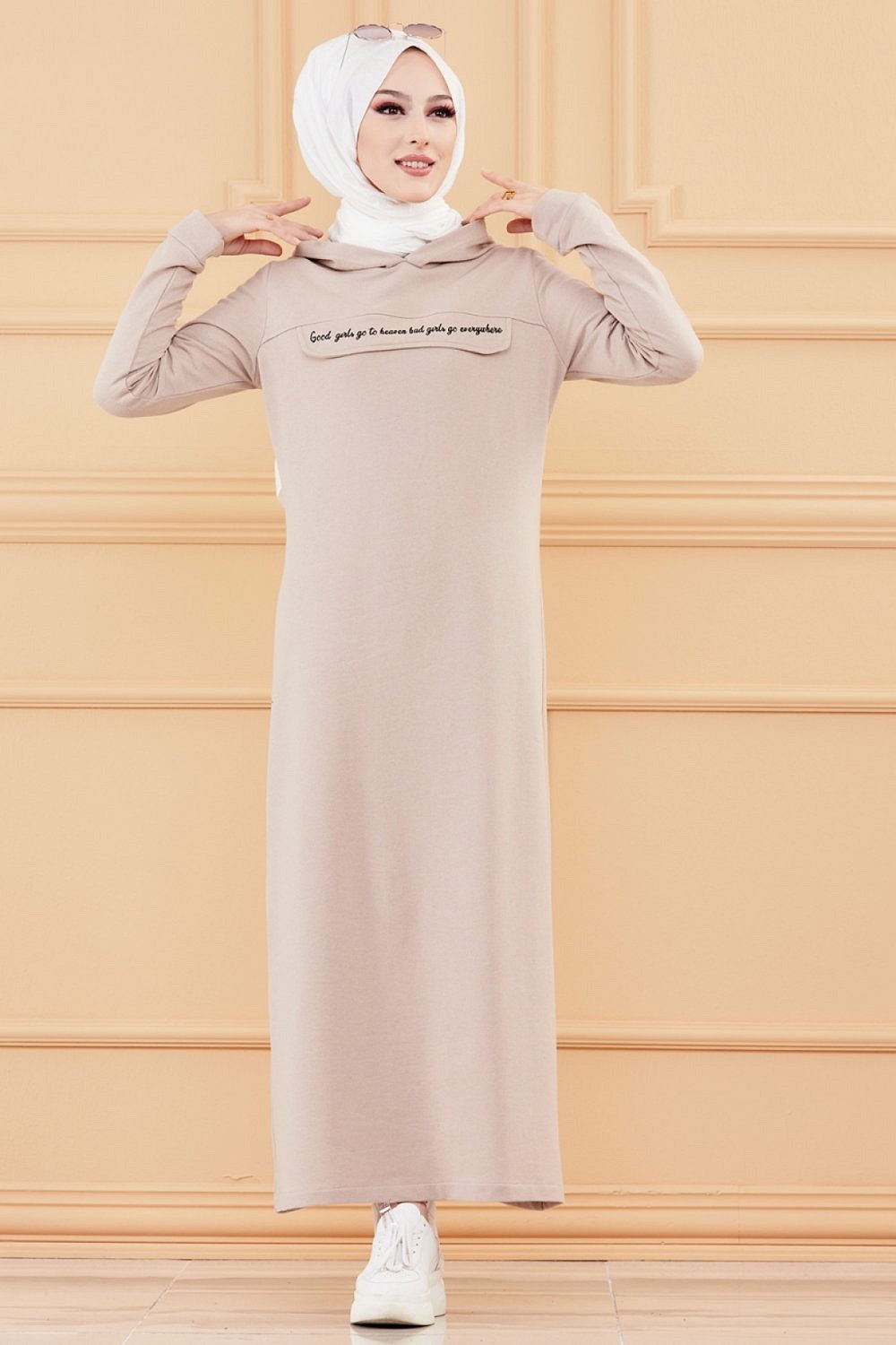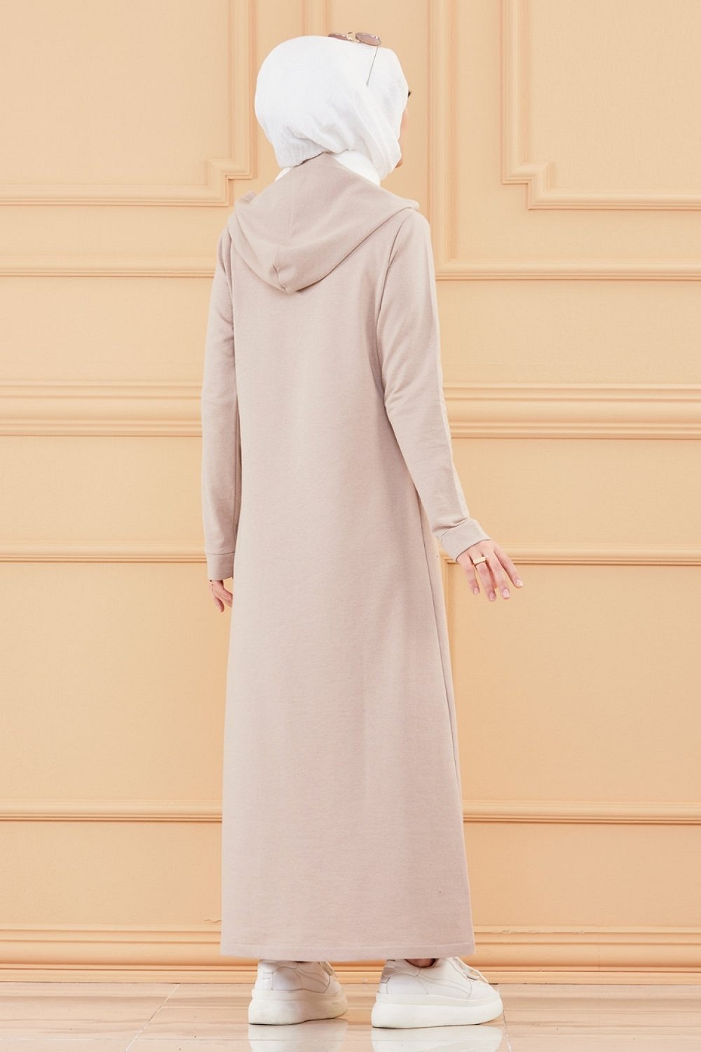 Robe longue style sweat avec capuche (Tenue pour musulmane sportive) - Couleur beige