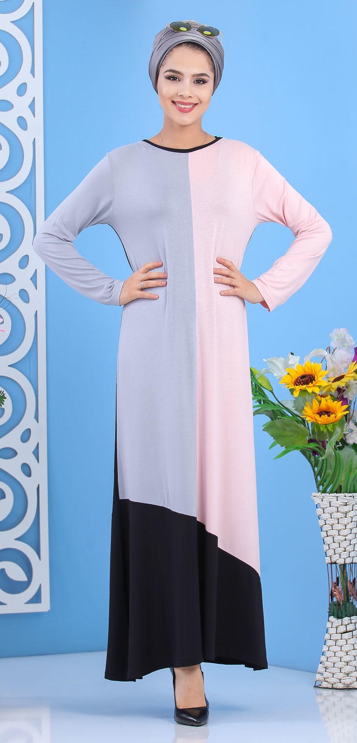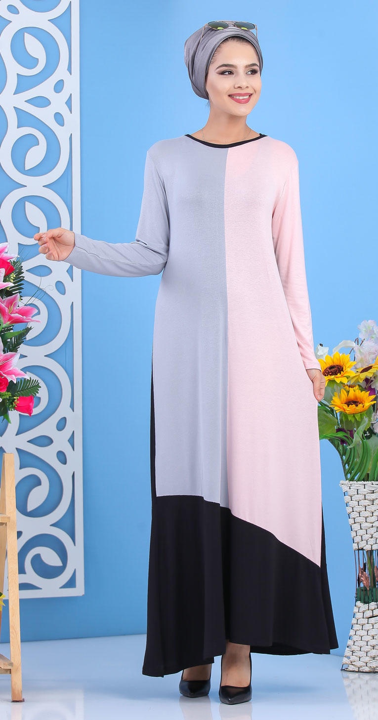 Robe longue tricolore pour femme (noir, gris et rose) Vetement & Accessoire