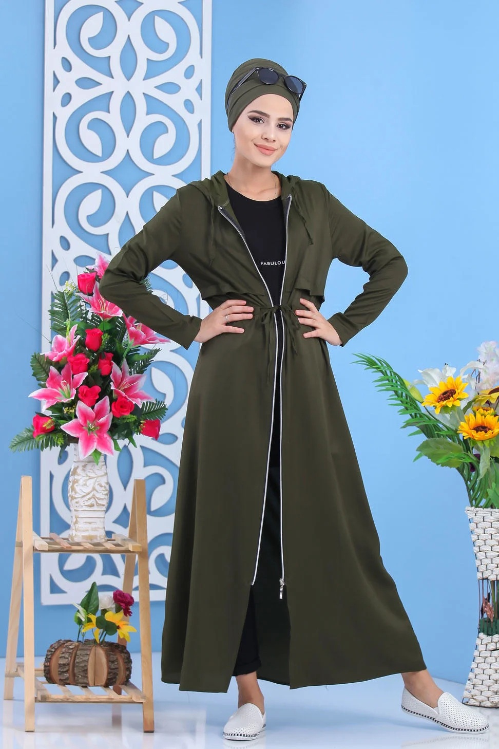 Robe mi longue style Trench (Vêtement hijab) pour femme voilée) - Couleur kaki - REF. 33202 (32.00 €) - En Promotion à 24.90 €