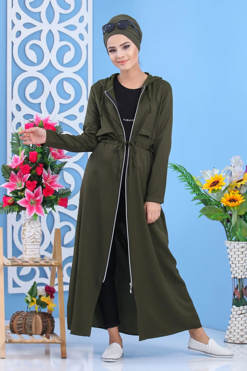 Imperméable à capuche pour femme (Vêtement Hiver Tendance pour Hijab Saisons Automne Hiver) - Couleur kaki - REF. 35347 (34.90 €) - En Promotion à 25.90 €