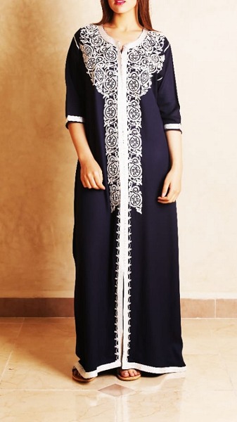 Robe marocaine traditionnelle brodée pour femme - Manches courtes - Couleur Bleu marine Vetement & Accessoire