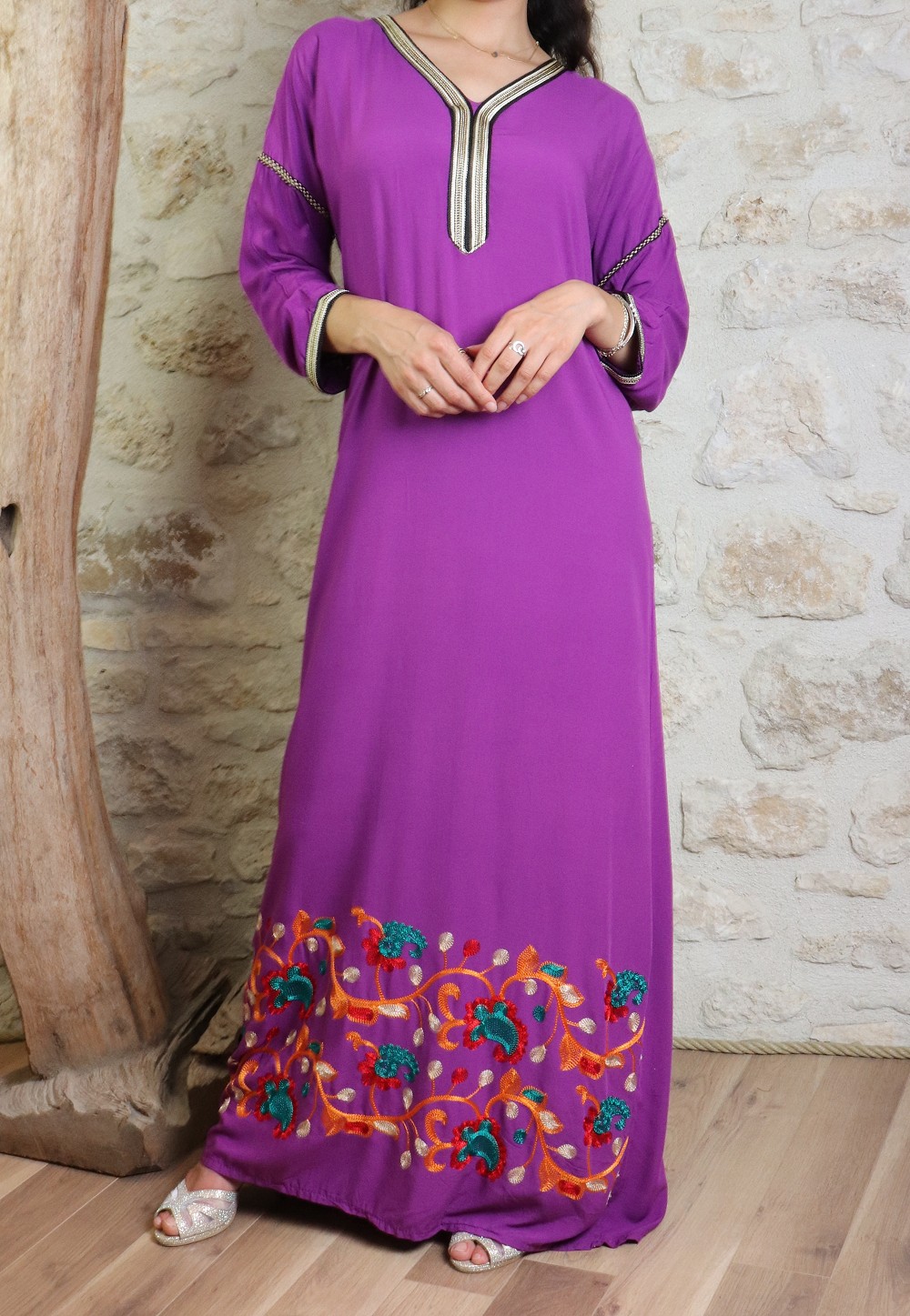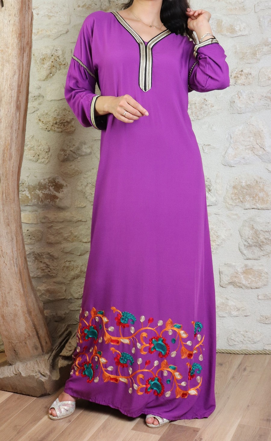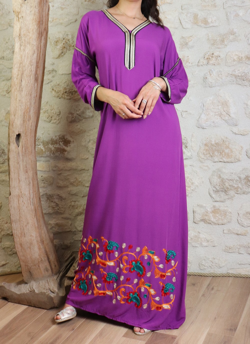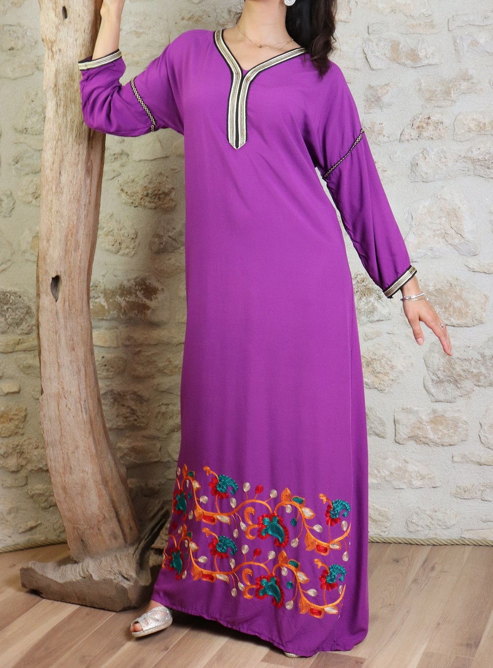 Robe brodée (Vetement classique femme voilée) - Couleur lilas - REF. 37077 (26.90 €)