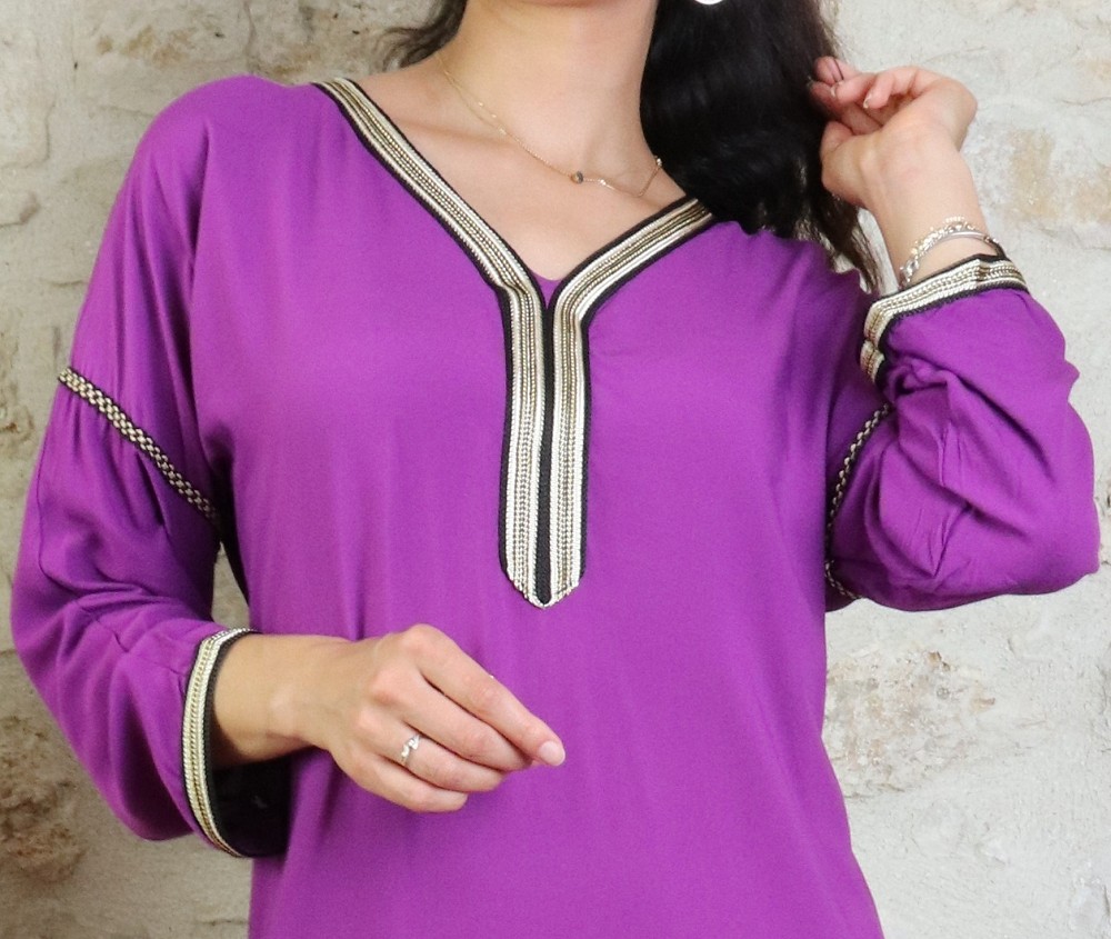 Robe Gandoura Marocaine avec Strass Argentée Couleur Violet - REF. 29773 (25.00 €)
