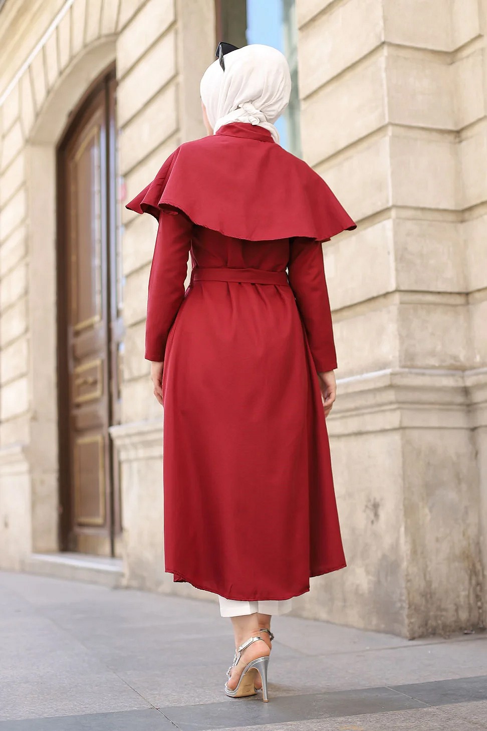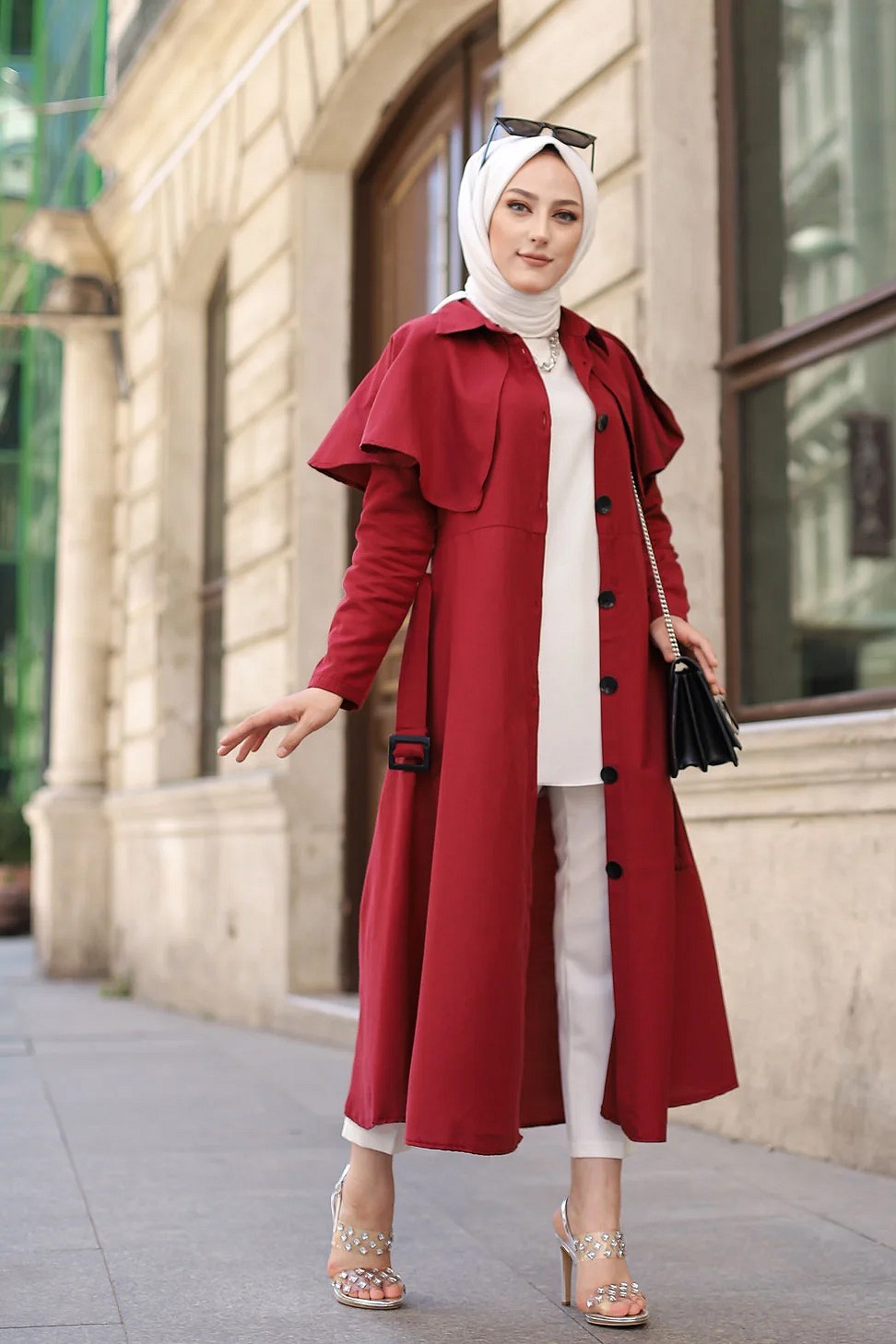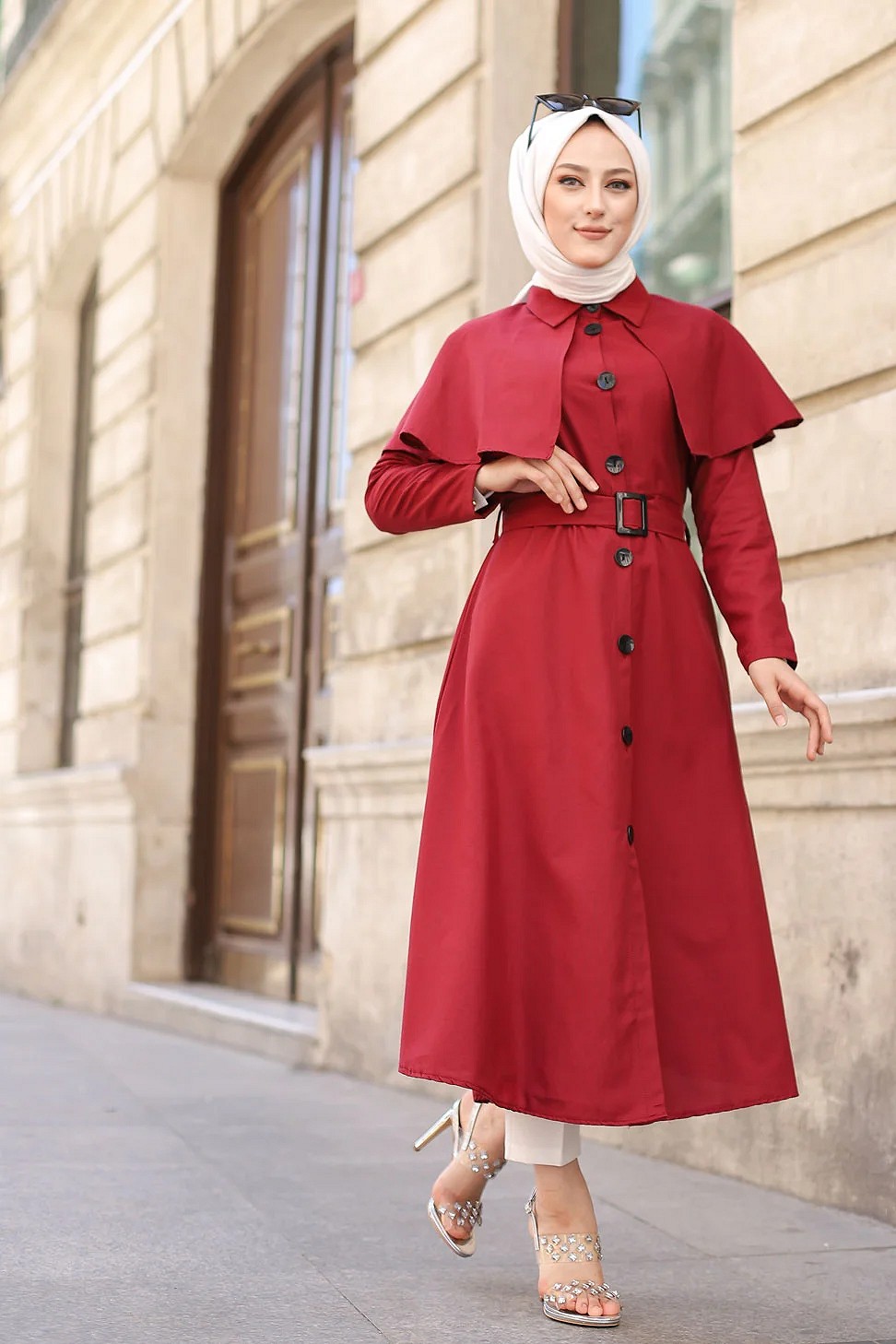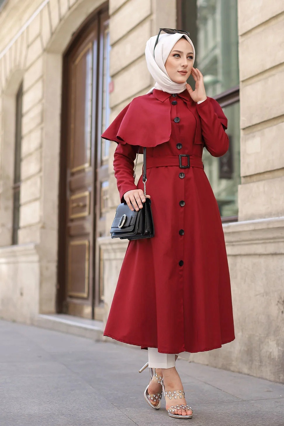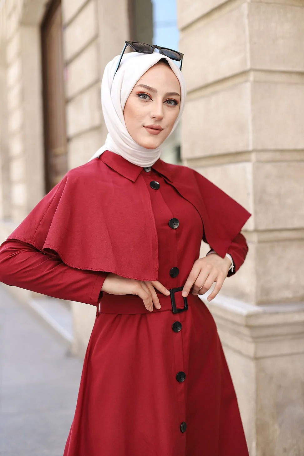 Robe mi longue style Trench (Vêtement hijab) pour femme voilée) - Couleur bordeaux Vetement & Accessoire