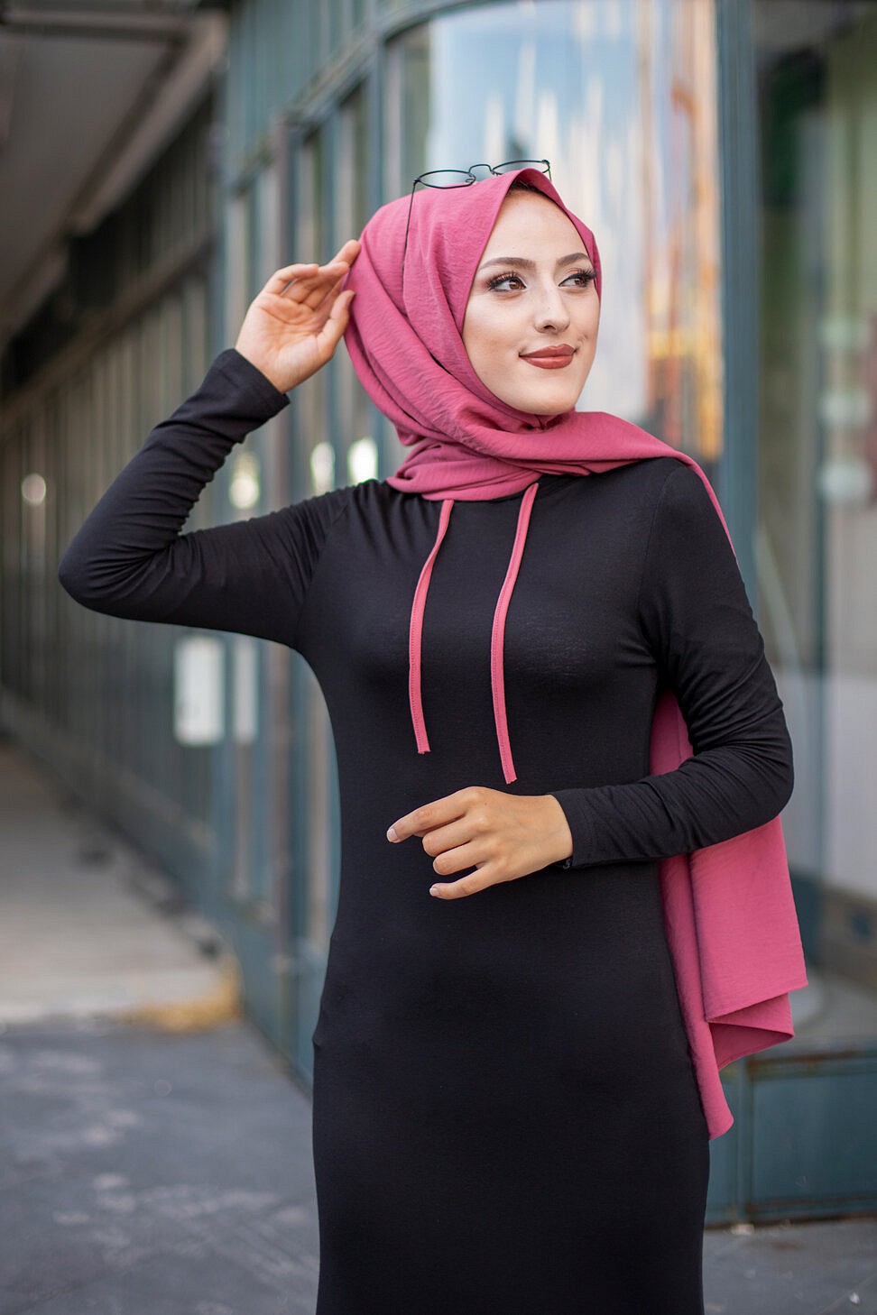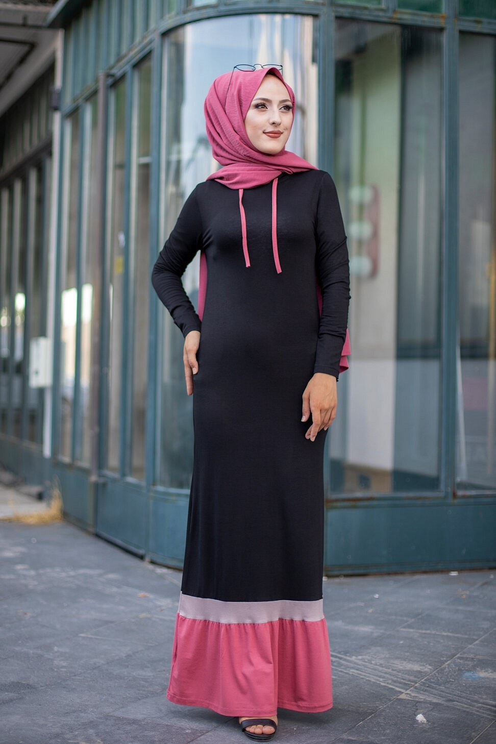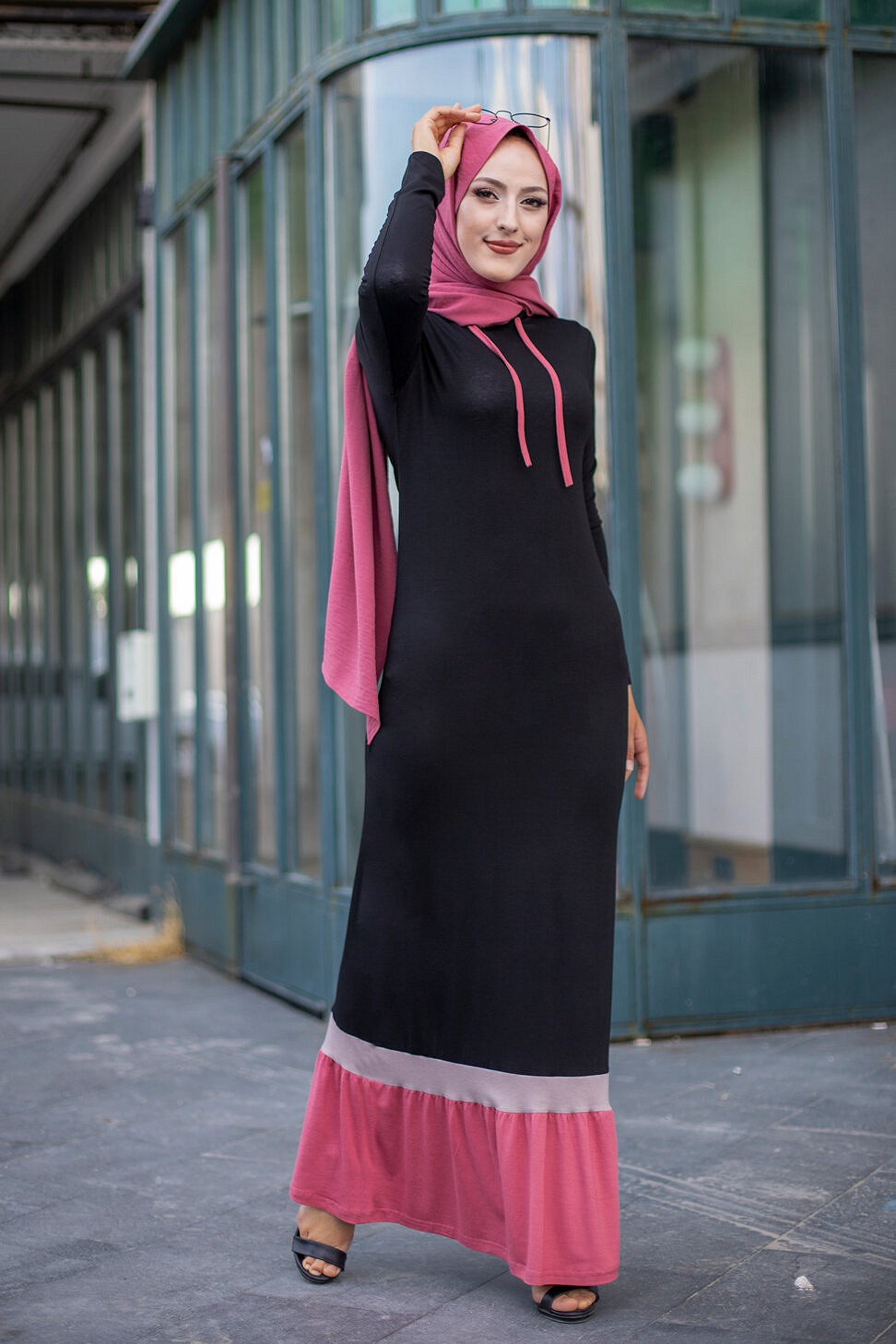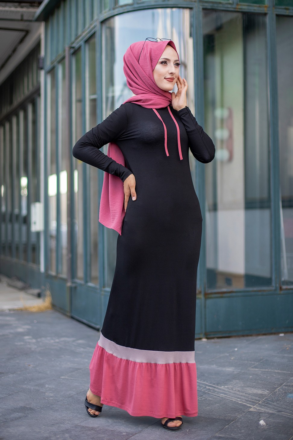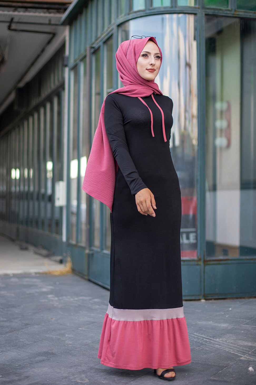 Robe noire et rose avec capuche style moderne pour femme Vetement & Accessoire
