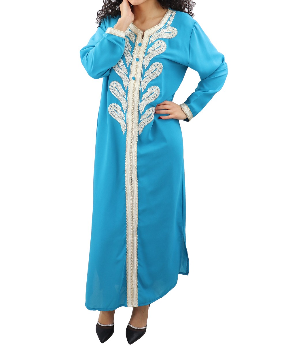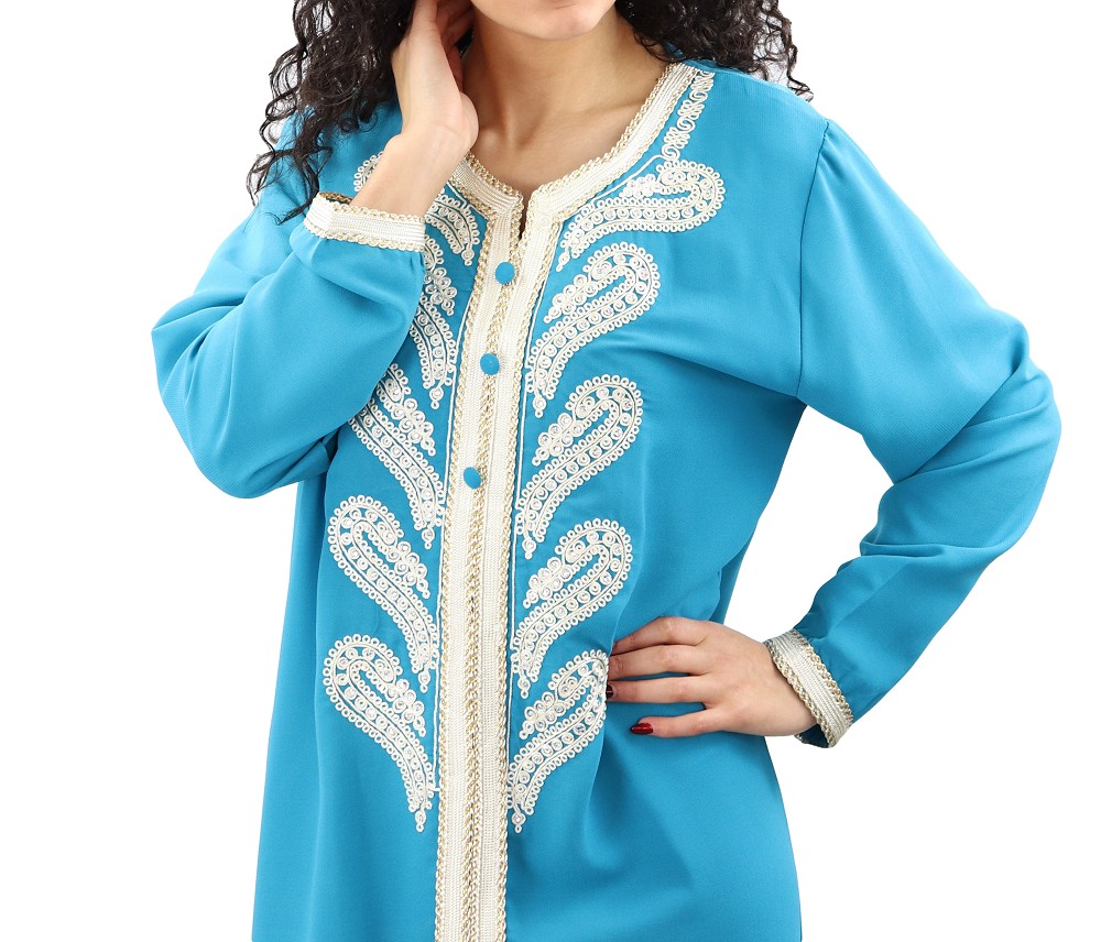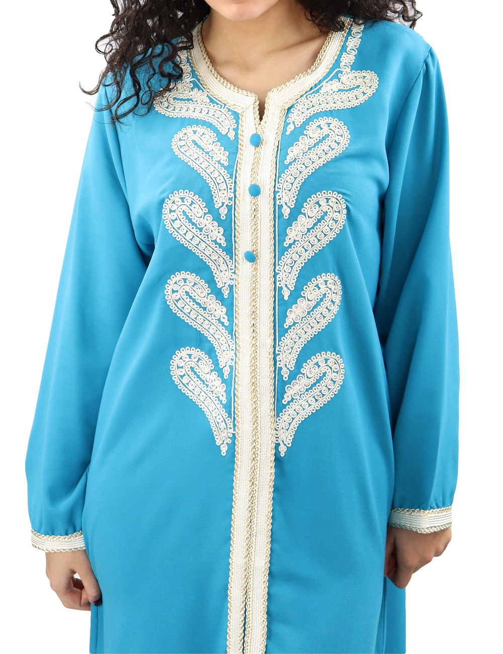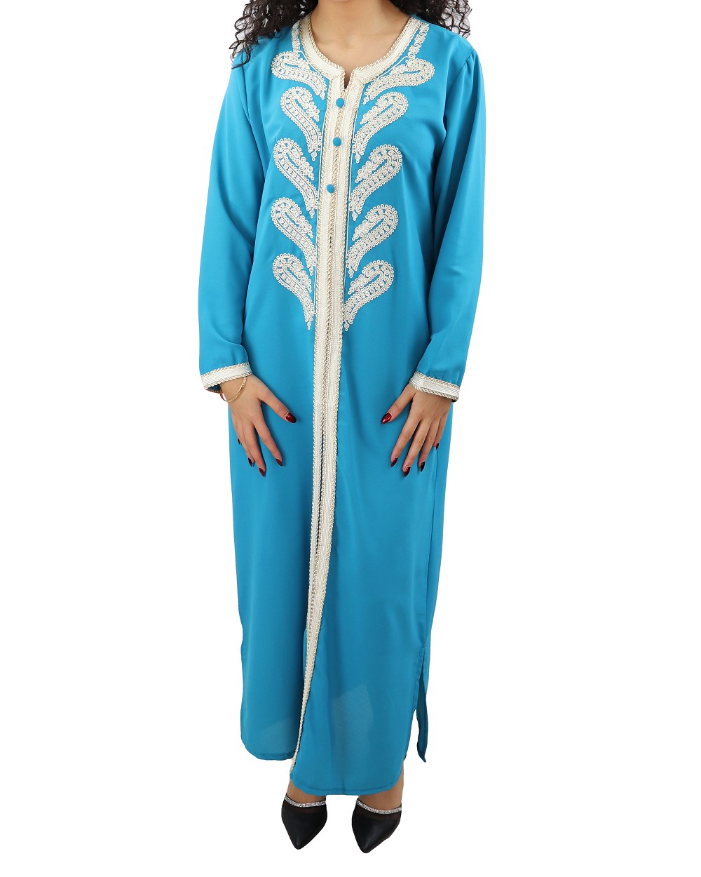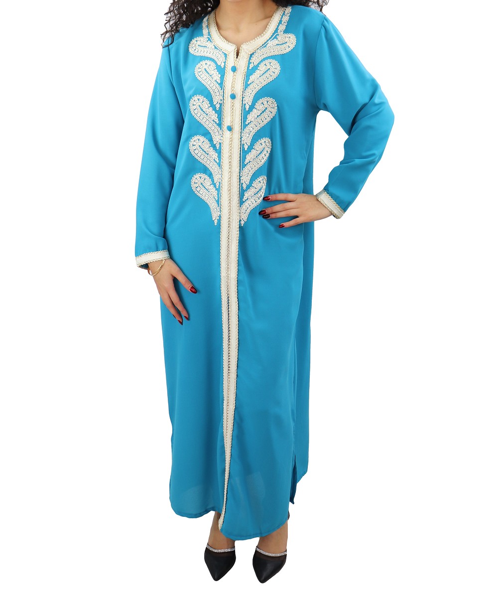 Robe Algérienne avec broderies et strass - Couleur Cyan - REF. 32351 (25.00 €)