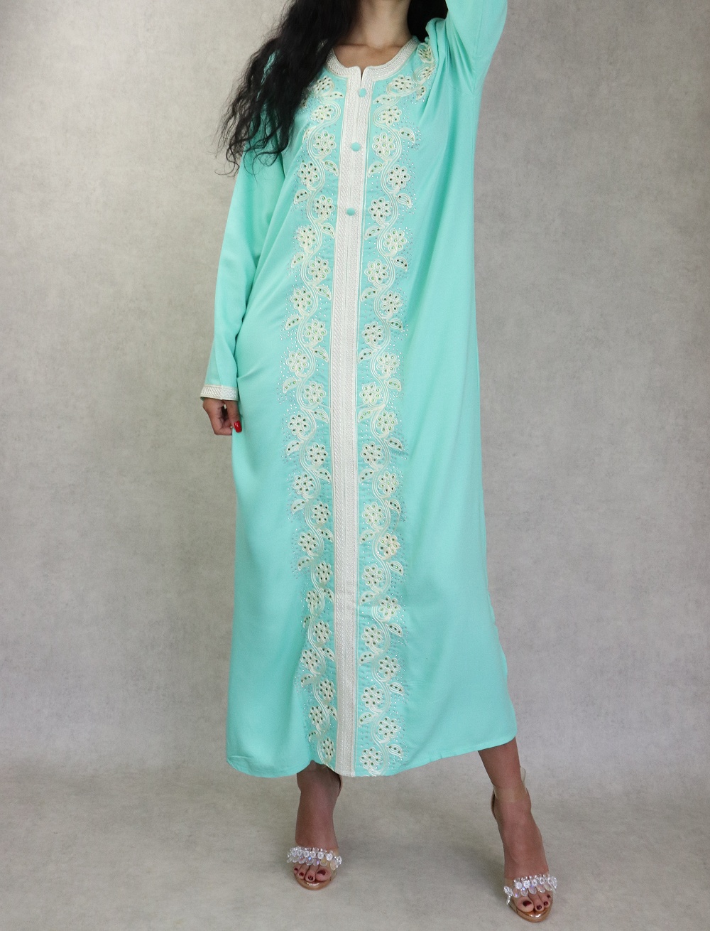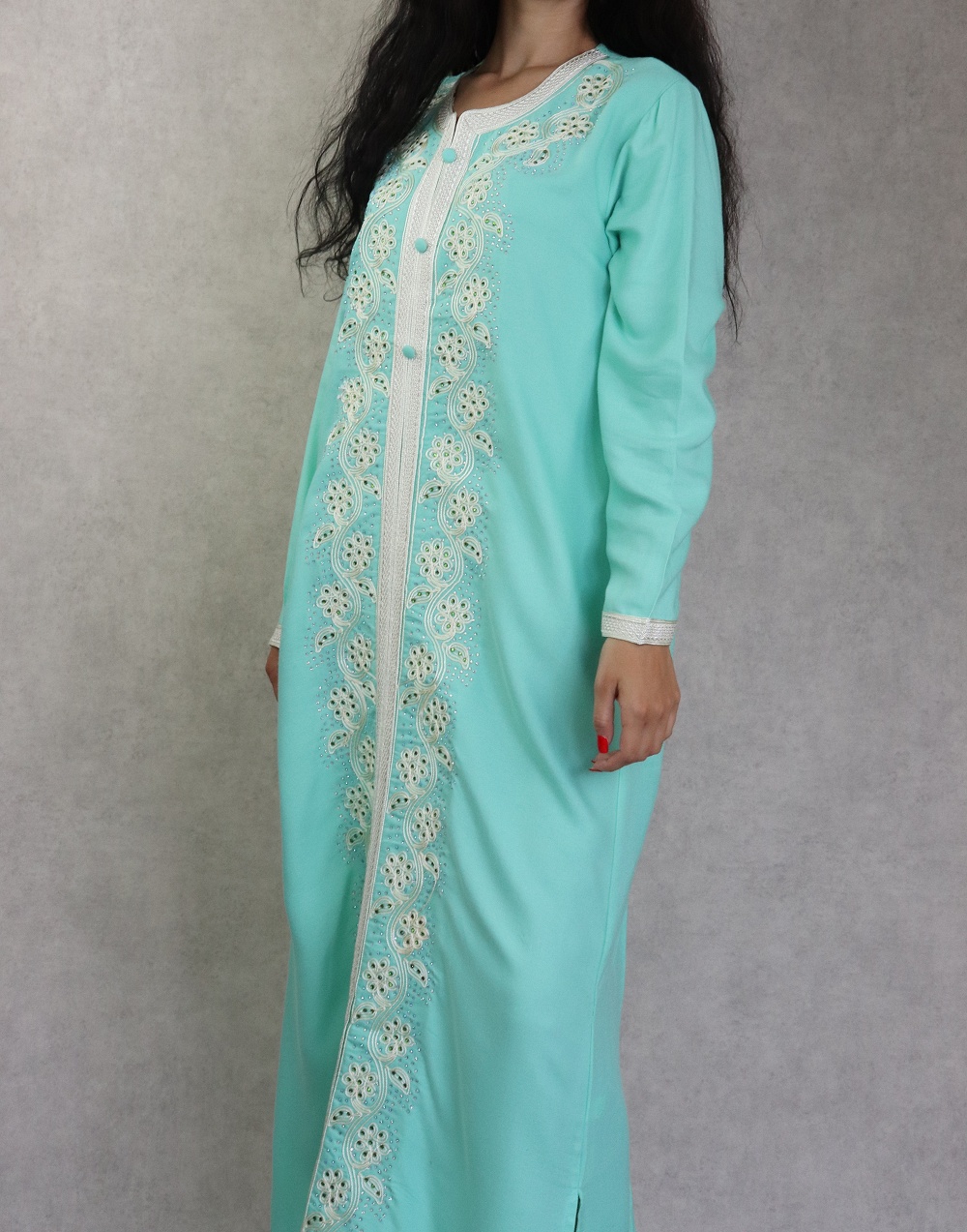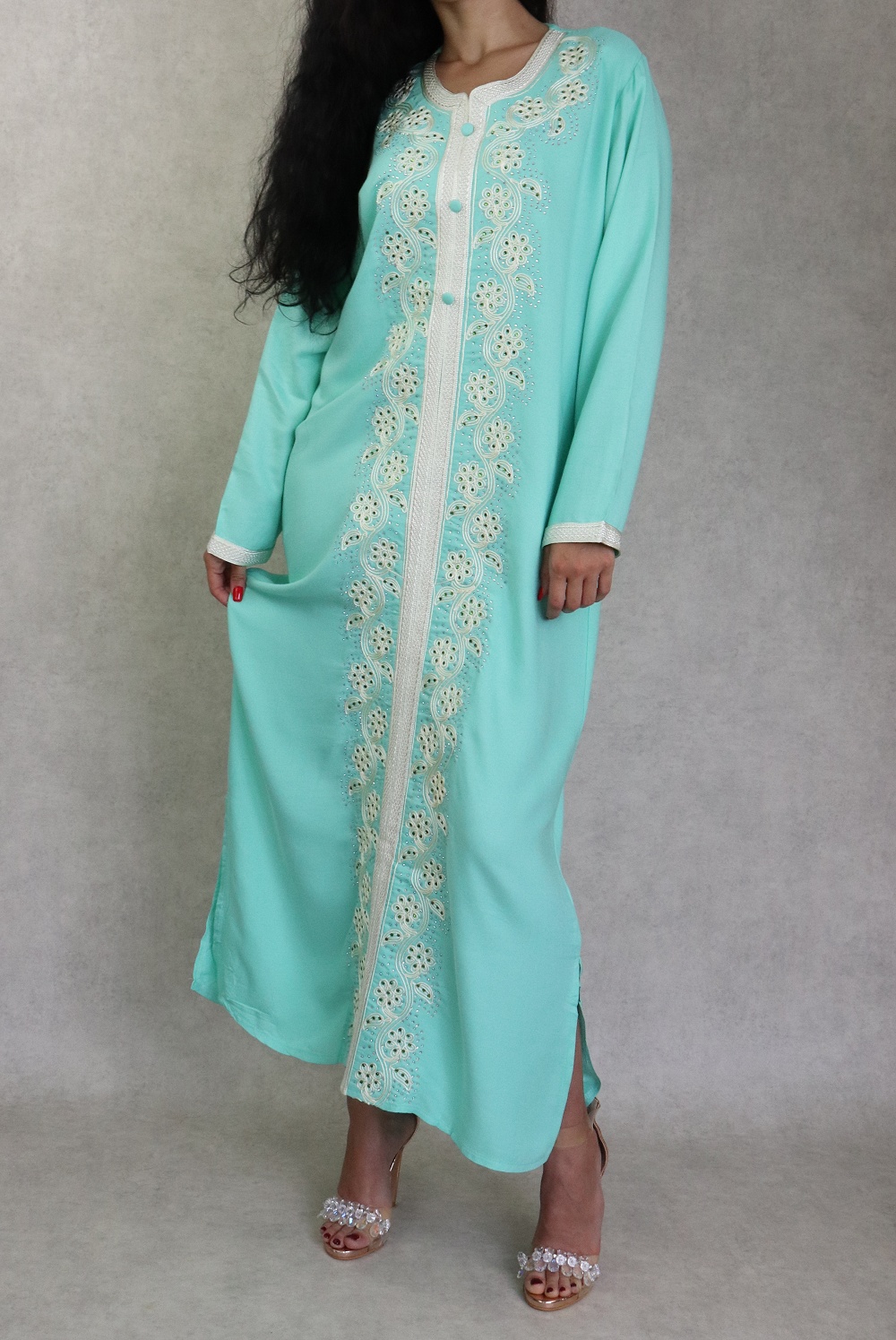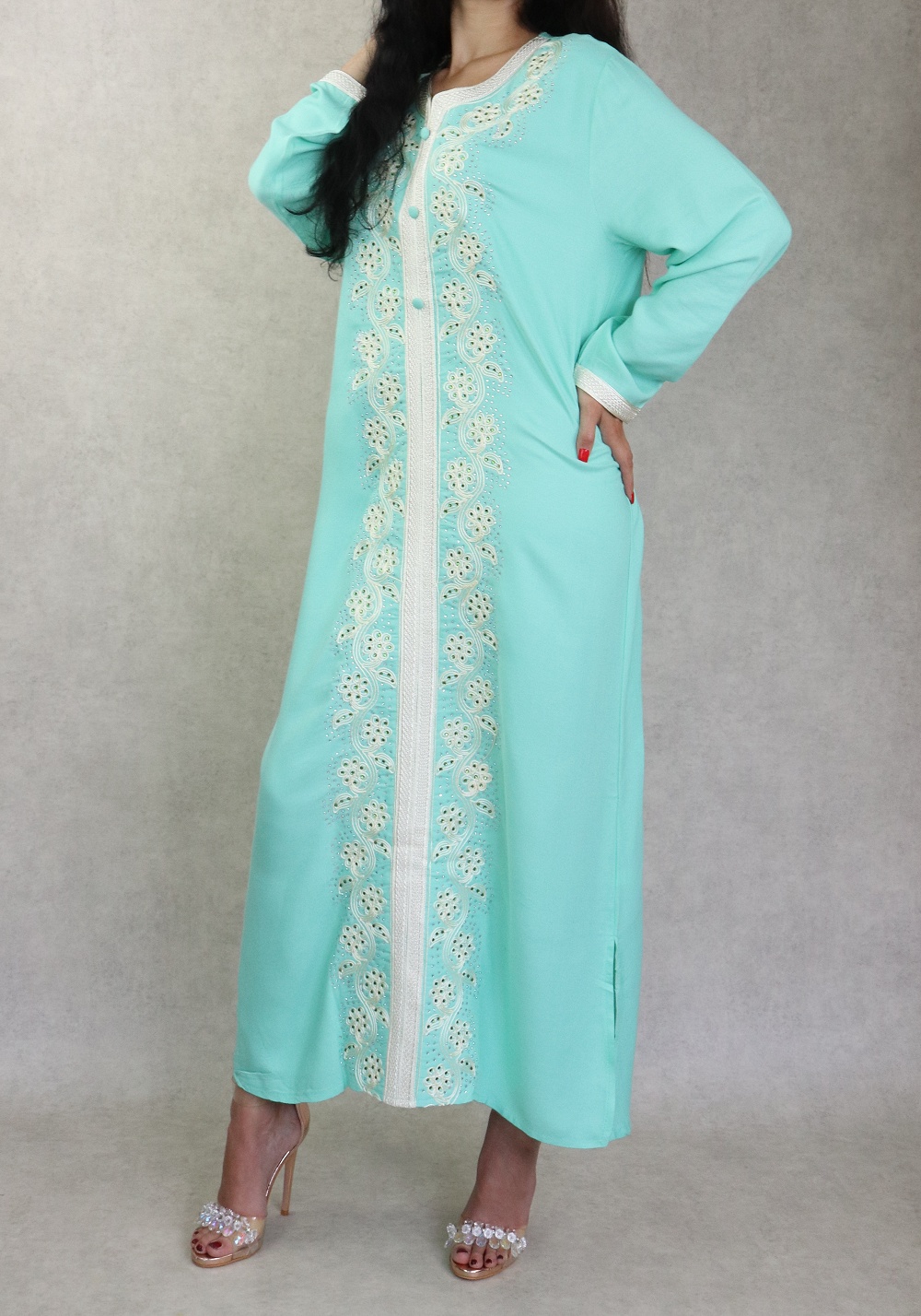 Robe orientale brodée manches longues pour femme - Couleur Vert pastel Vetement & Accessoire