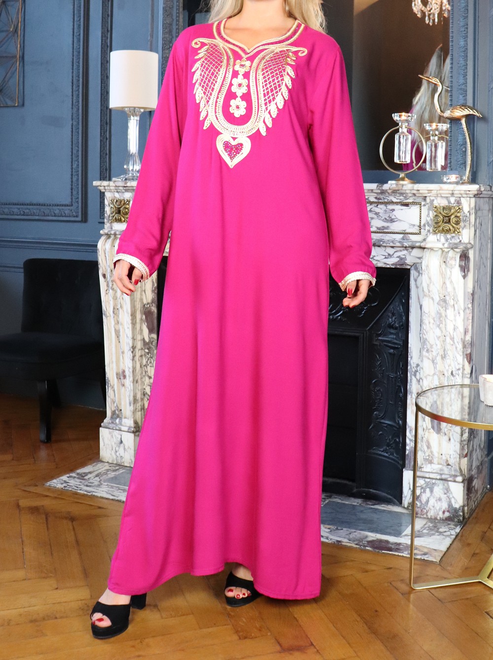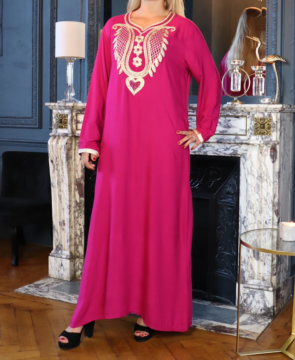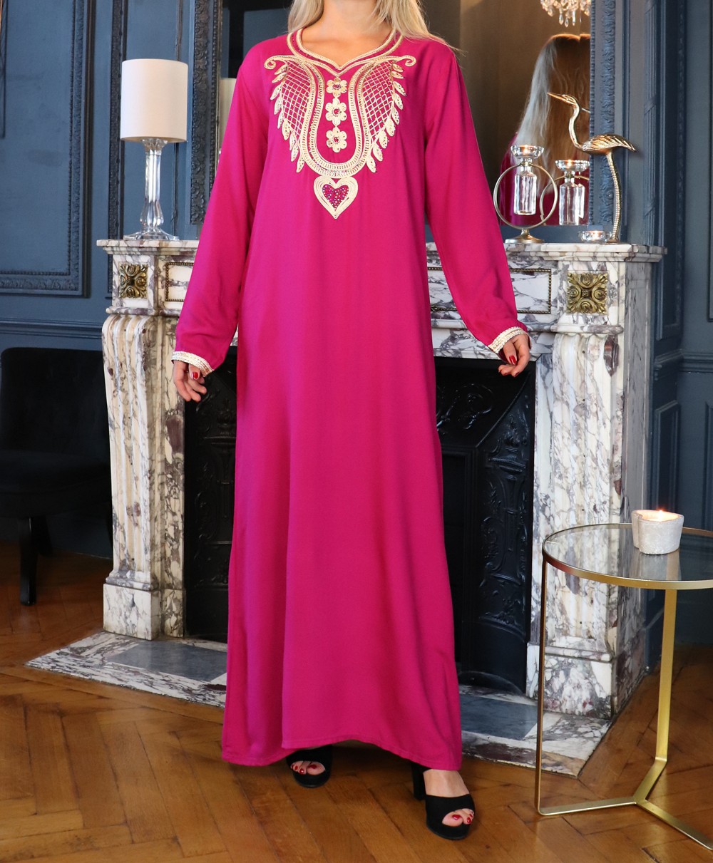 Robe orientale de maison pour femme avec broderie et strass - Couleur Rose Fuchsia Vetement & Accessoire