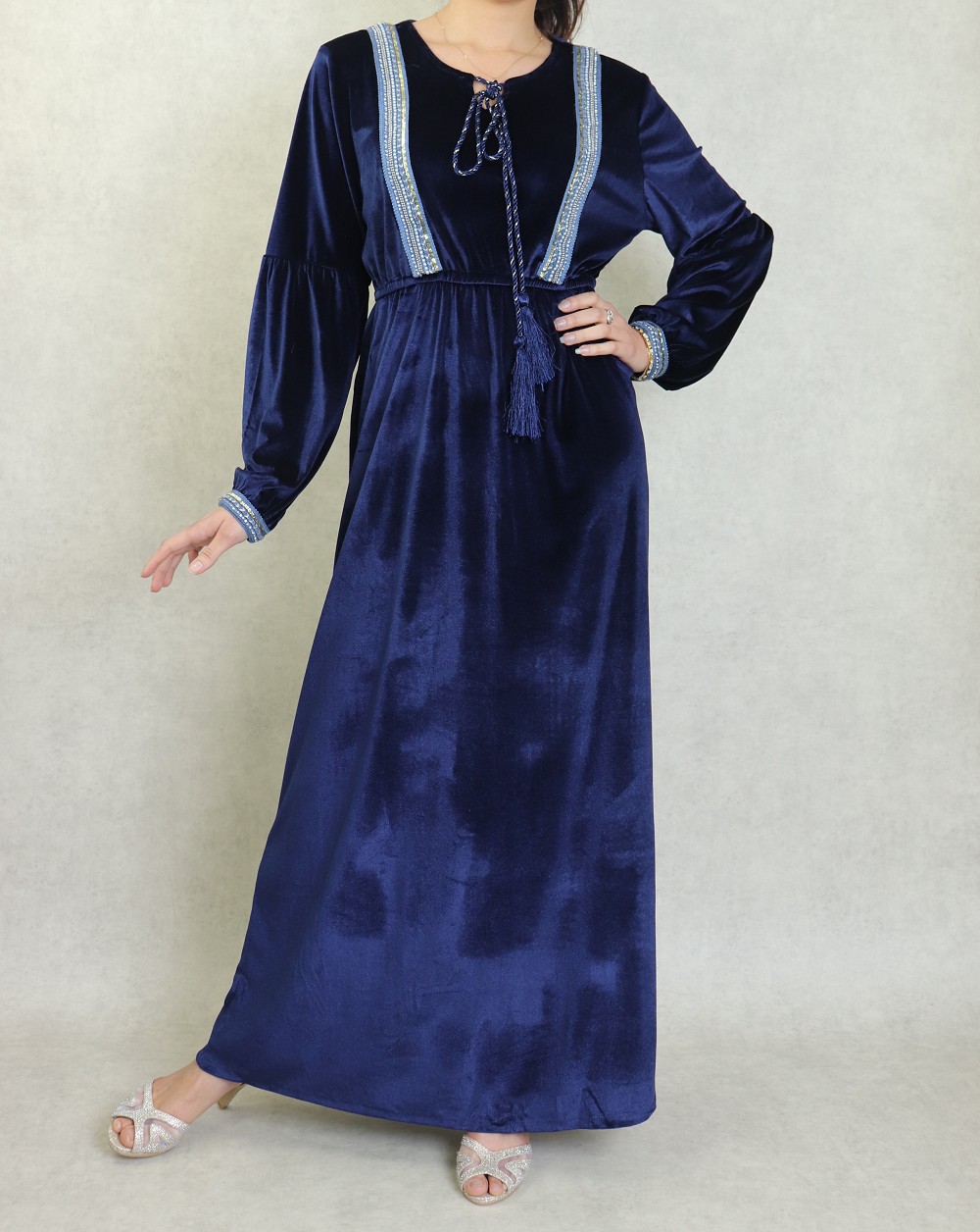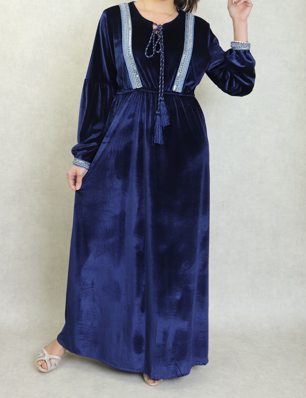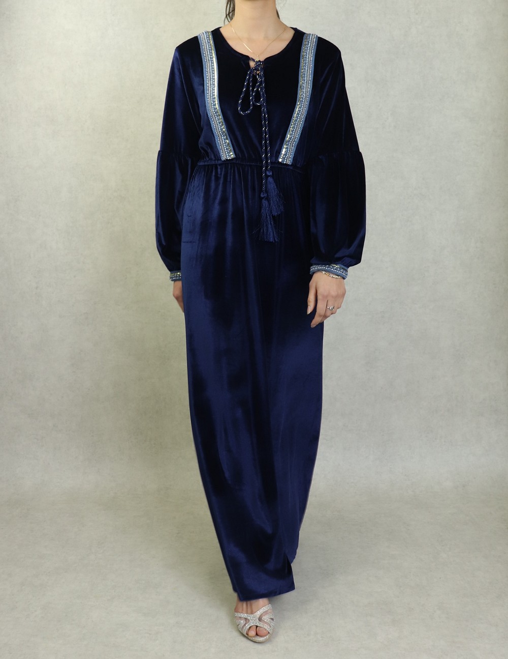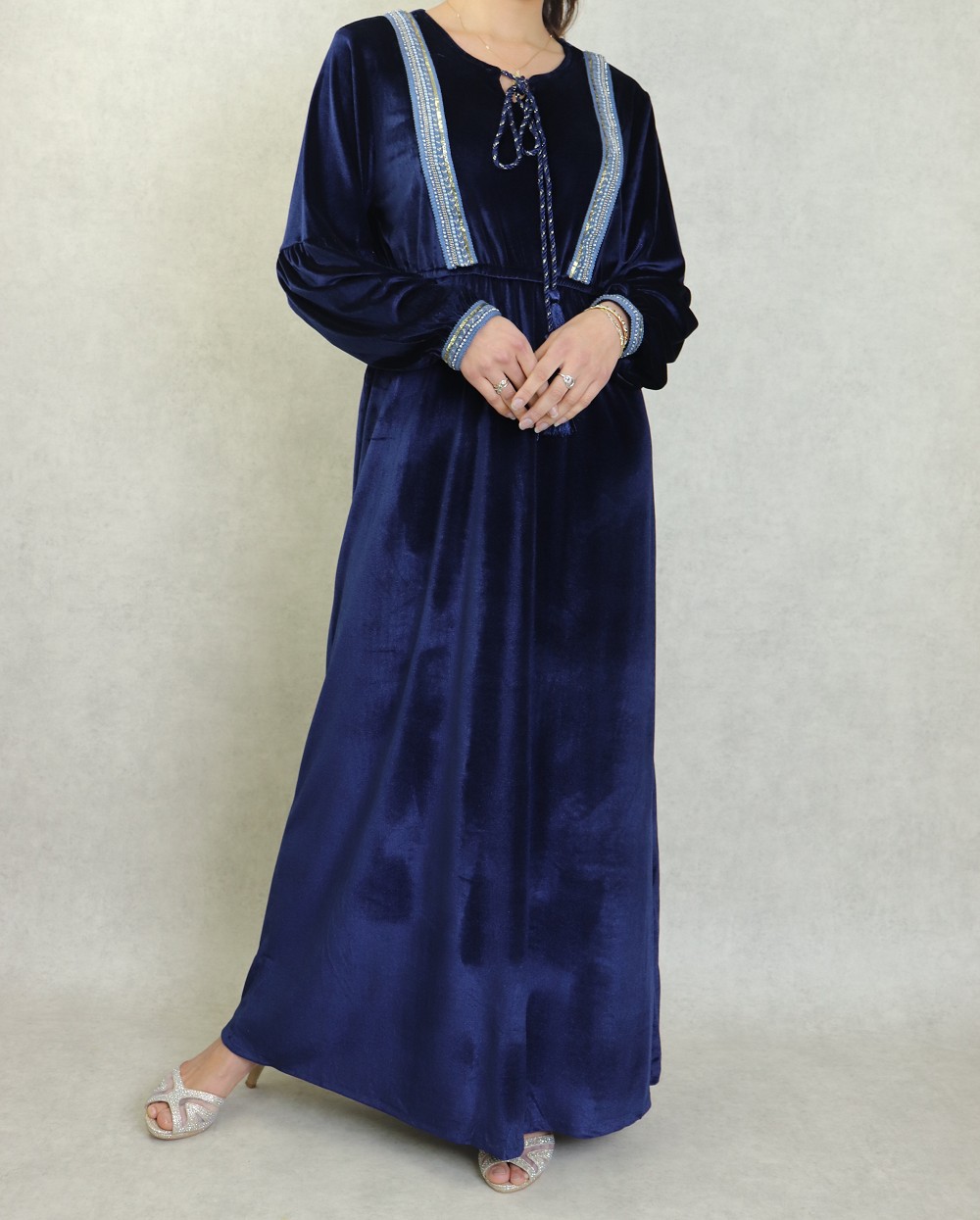 Robe orientale en velours avec broderies perles et strasses pour femme - Couleur Bleu marine Vetement & Accessoire