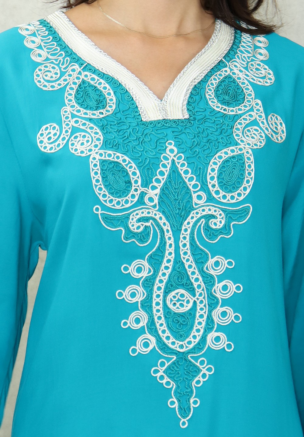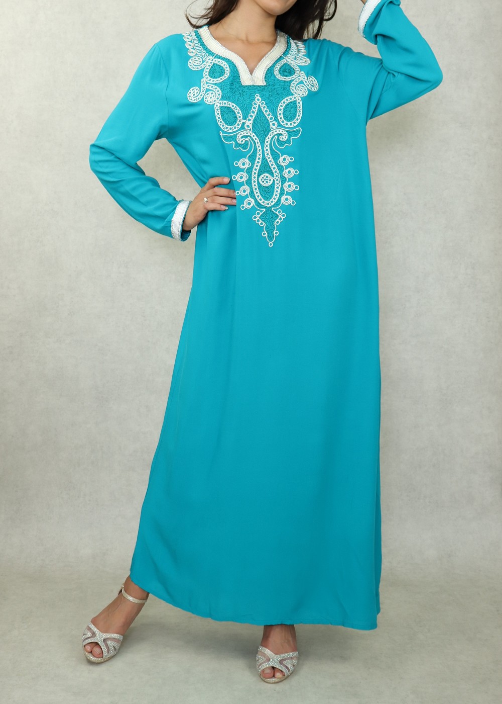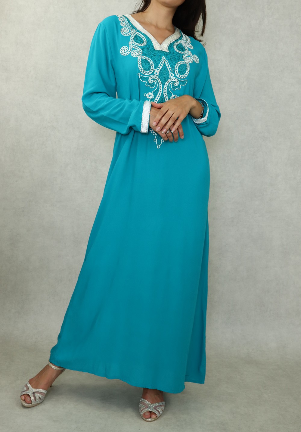 Robe orientale longue avec borderies pour femme - Couleur bleu turquoise - REF. 37668 (19.90 €)