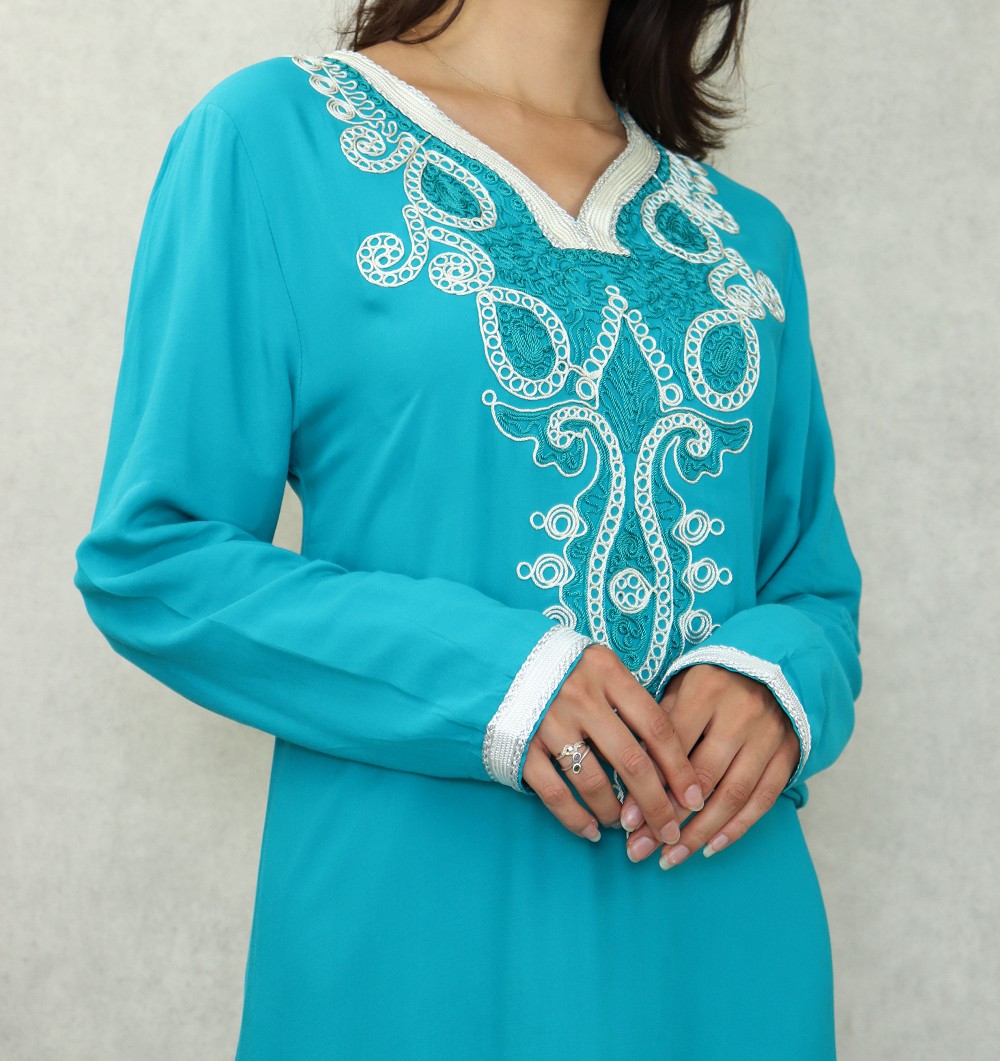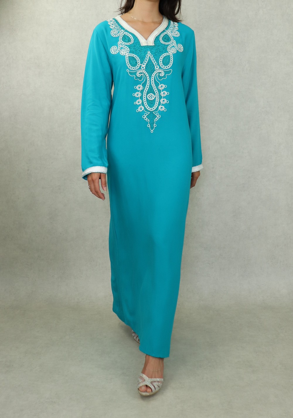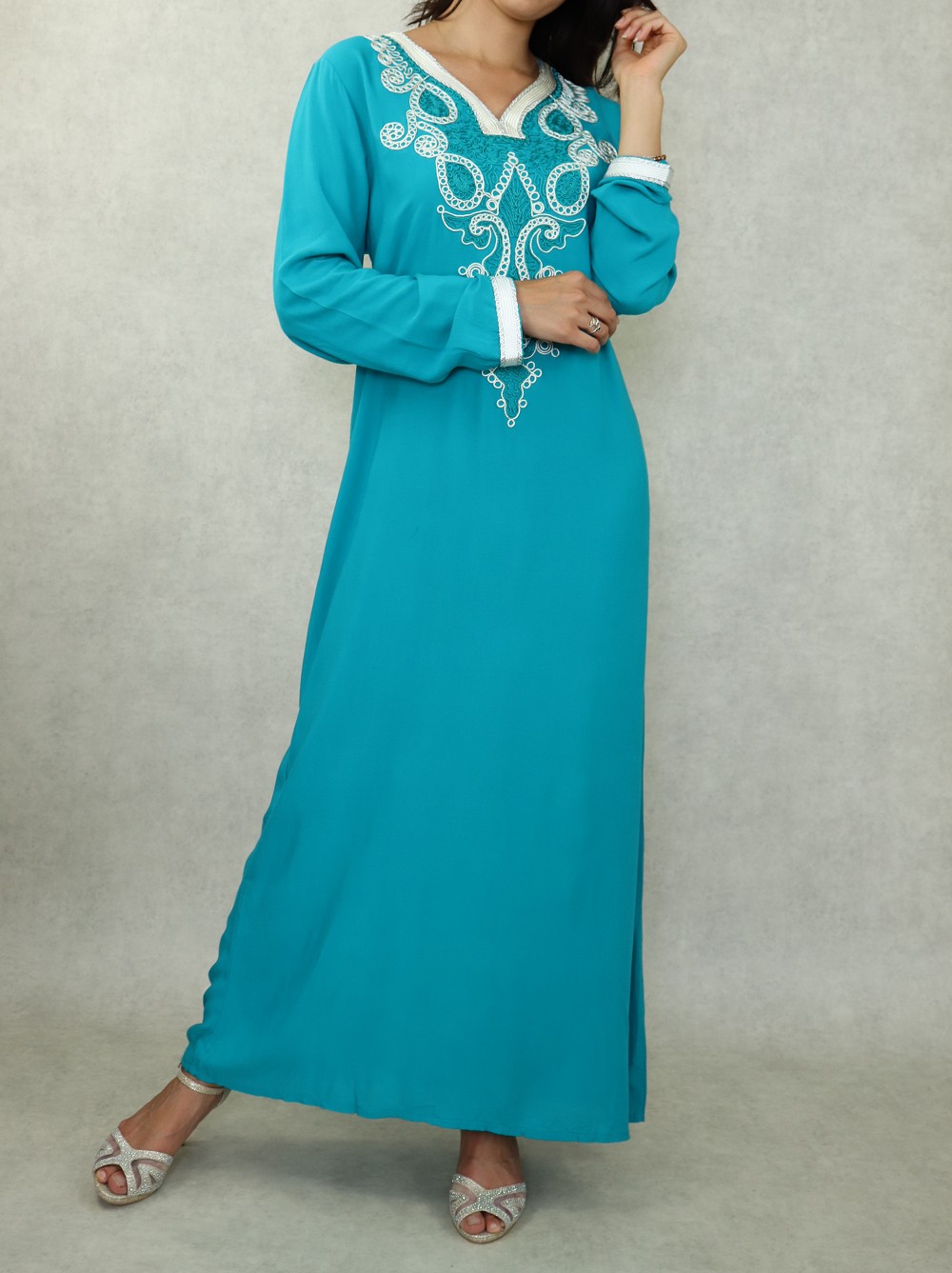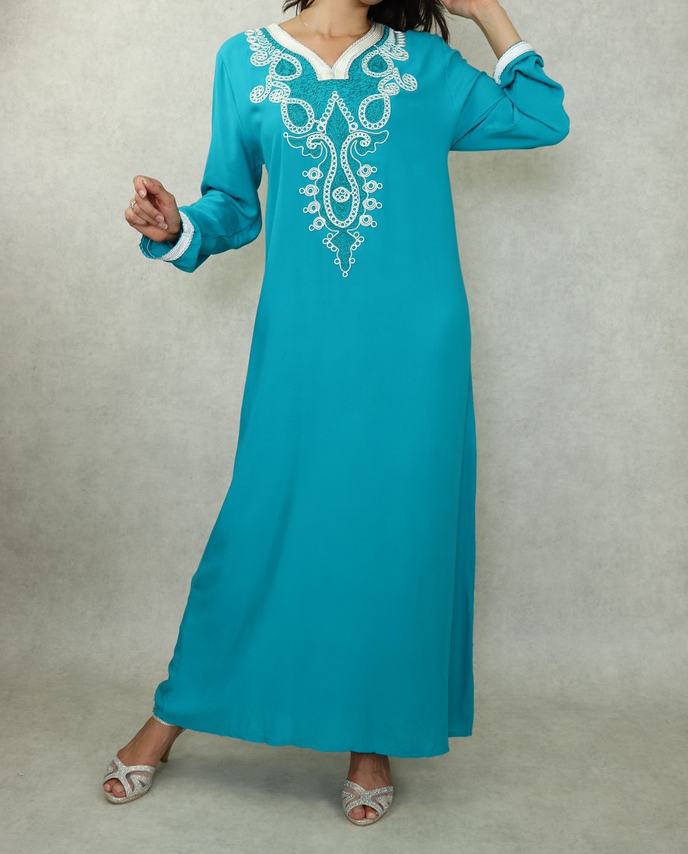 Robe orientale longue avec borderies pour femme - Couleur bleu turquoise - REF. 37668 (19.90 €)