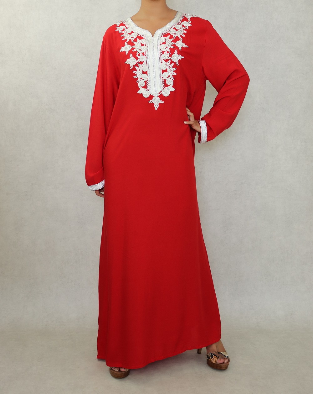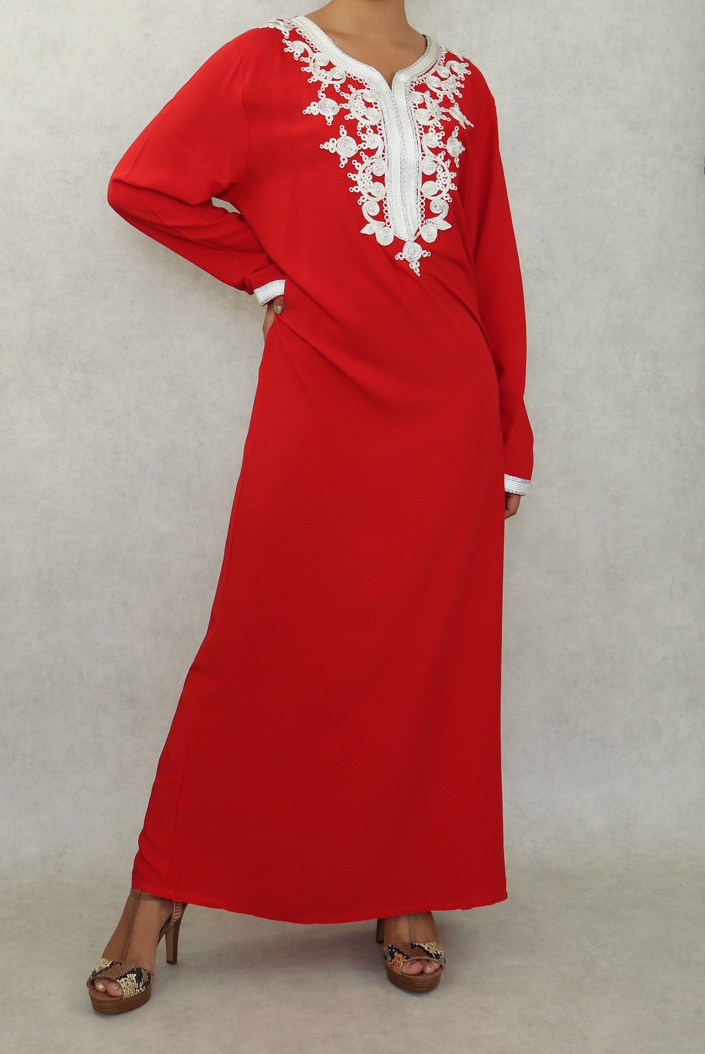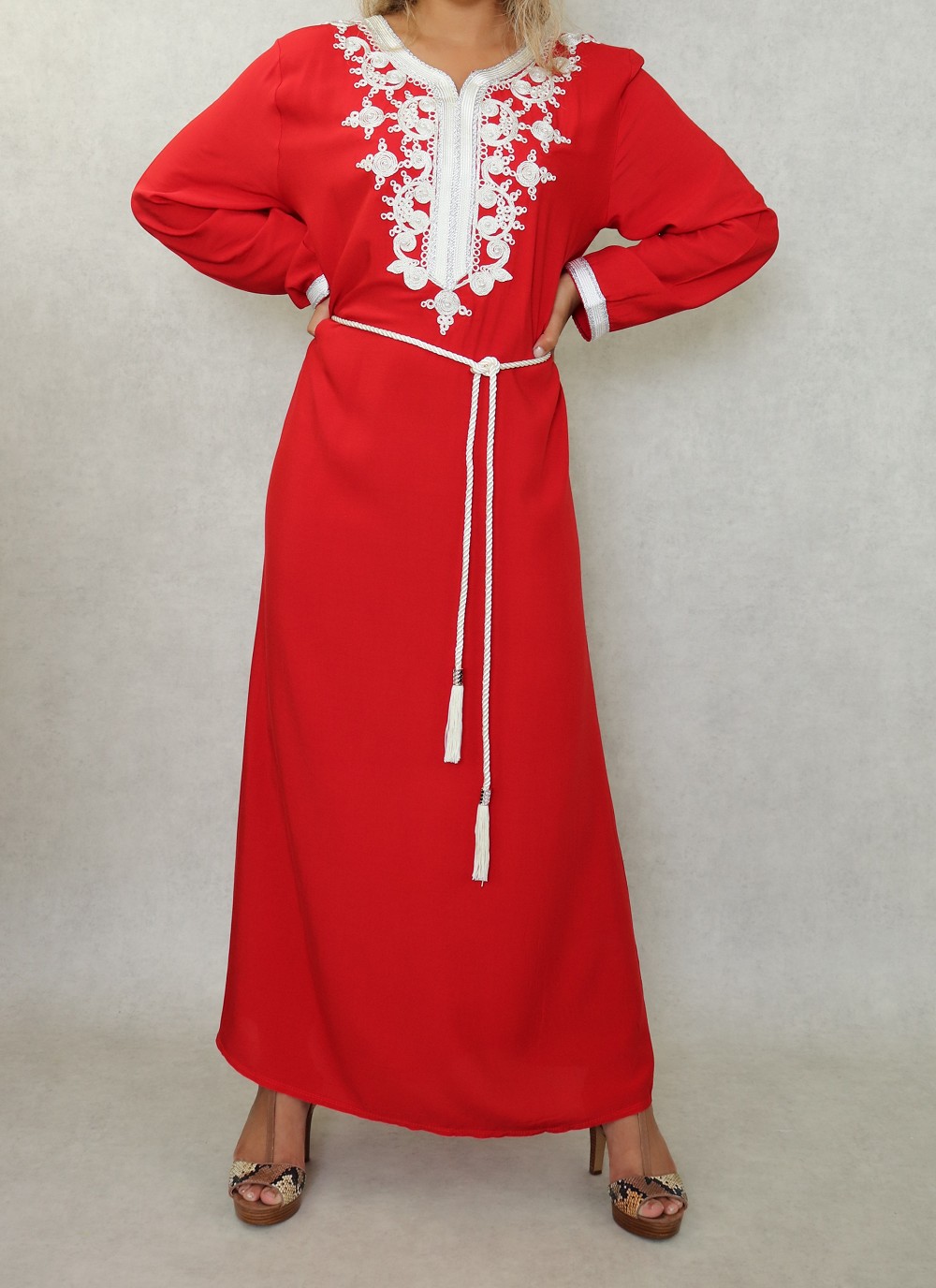 Robe orientale longue pour femme avec perles et broderies 100% coton - Couleur rouge Vetement & Accessoire
