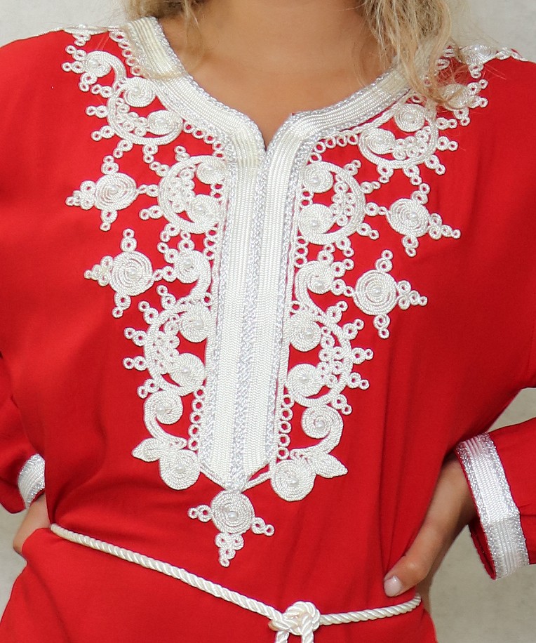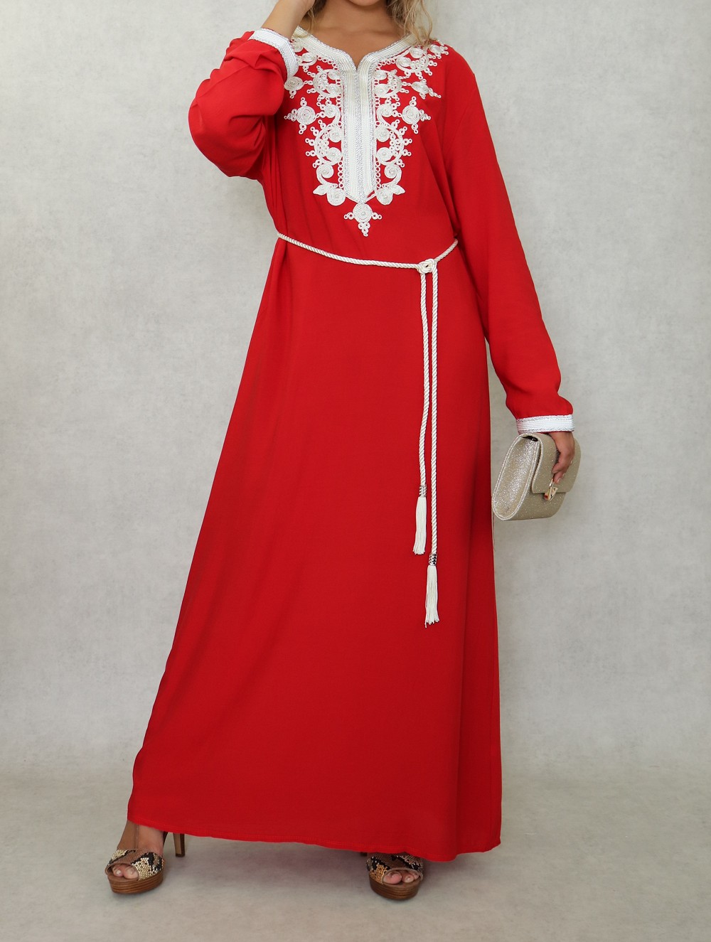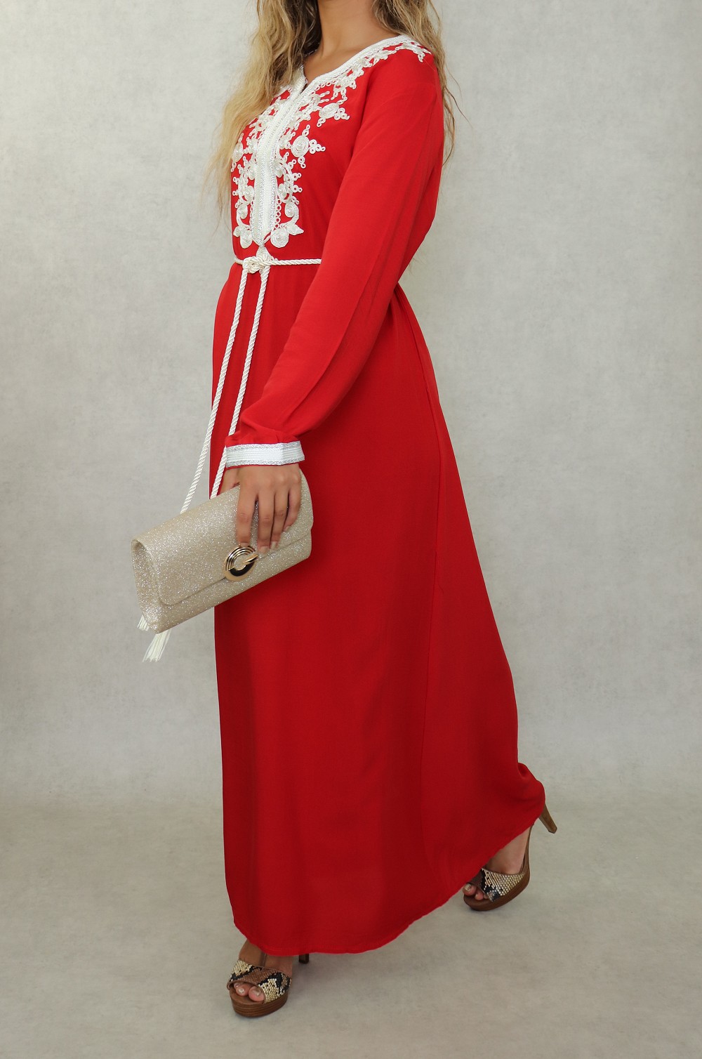 Robe orientale longue pour femme avec perles et broderies 100% coton - Couleur rouge Vetement & Accessoire
