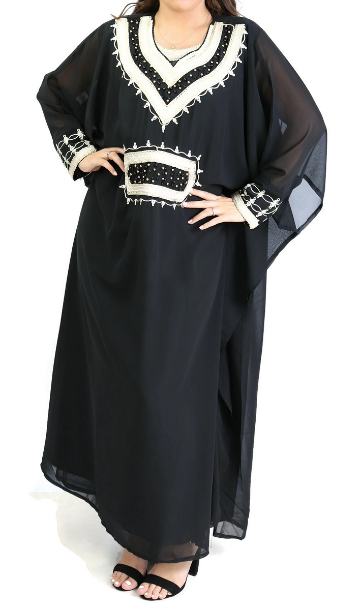 Robe longue habillée et chic avec perles (Vêtement mastour classe pour femme voilée) - Couleur noir - REF. 35989 (36.00 €)